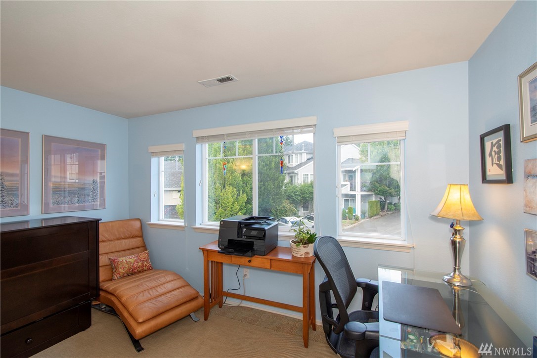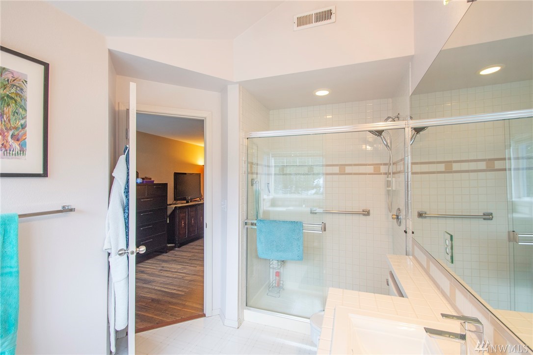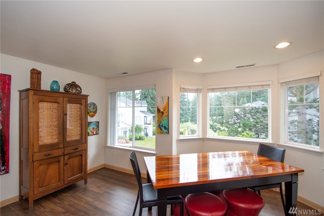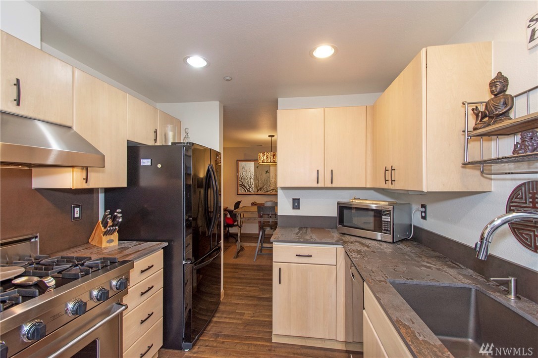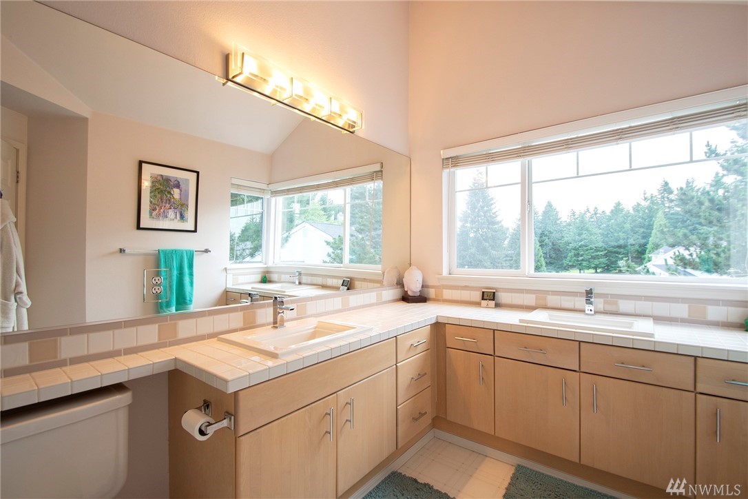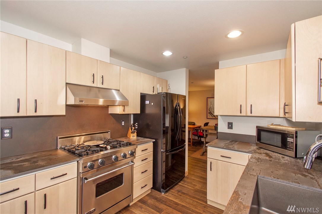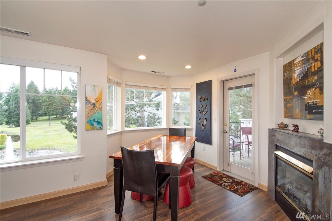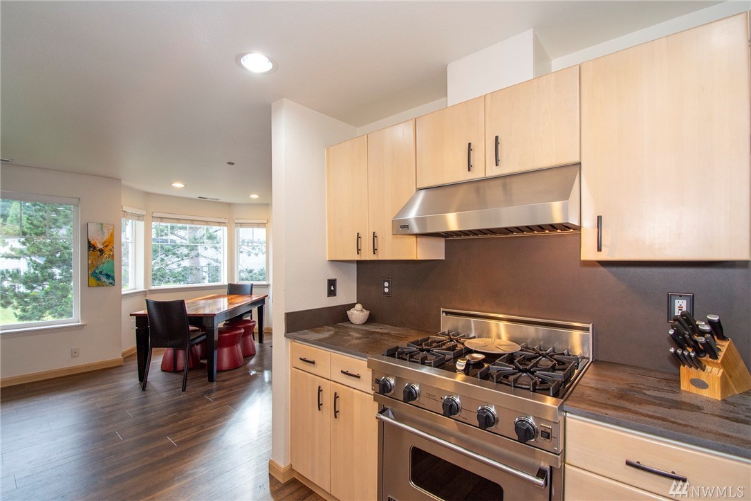 Meticulously upgraded, coveted upper floor corner unit in the picturesque community of the Links! This condo lives large with an open floor plan on the main level & newer flooring throughout. The eat-in kitchen is a cook's dream w/ Viking gas stove, Dekton countertops and newer appliances. Large master suite on the top floor provides the perfect place to retreat at the end of the day. Two bedrooms w/ adjacent bathroom on the second level. Multiple decks highlight the scenery. Two car garage!