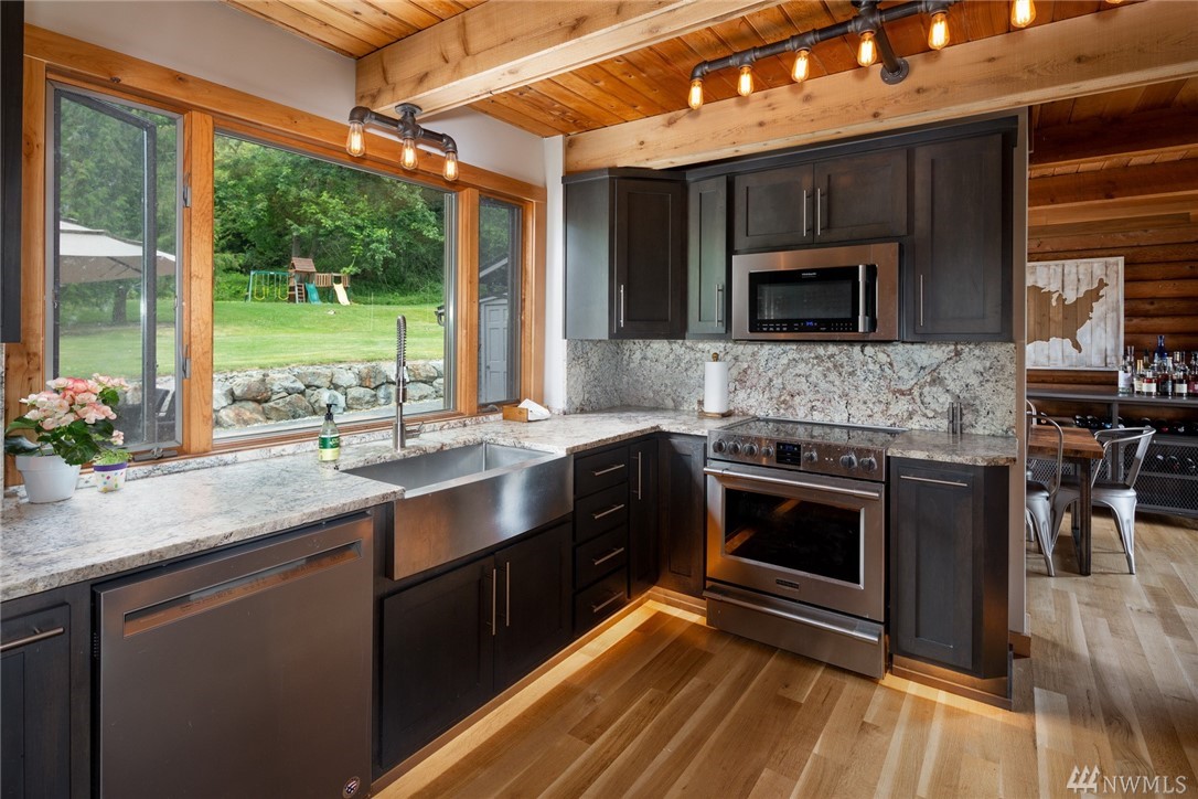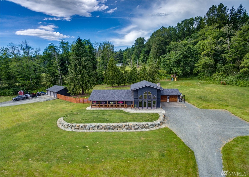 Custom home on 5+ sun filled acres in desirable Victoria Heights! Expansive living room w/ cathedral ceiling + floor to ceiling windows allowing tons of natural light. 2 master suites w/ remodeled bathrooms. Updated kitchen w/ new counters & SS appliances. Grand exterior patio that personifies the properties privacy and tranquility. New roof, 2 car garage + 28X34 shop for all of your toys & hobbies. Fantastic location just minutes from horse/biking trails, The Pilchuck Tree Farm & I-5.