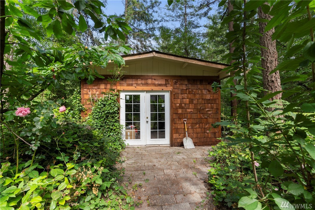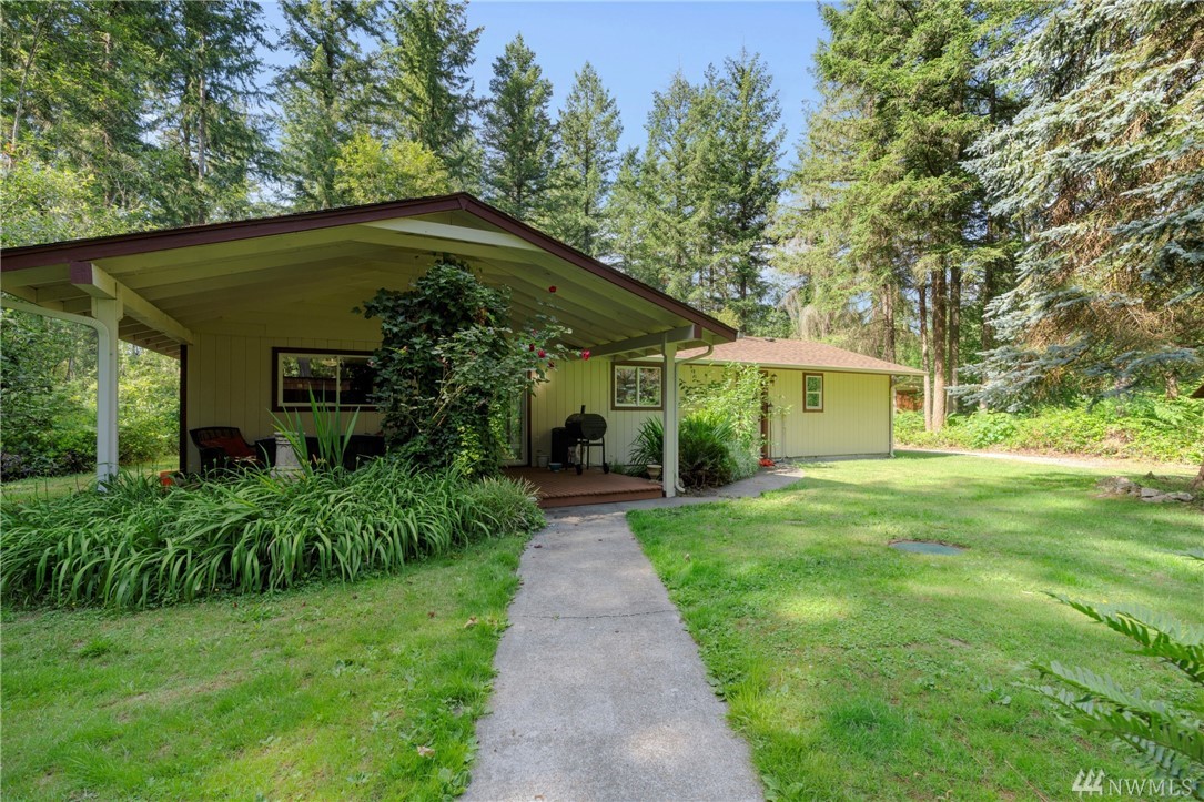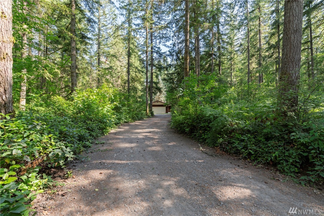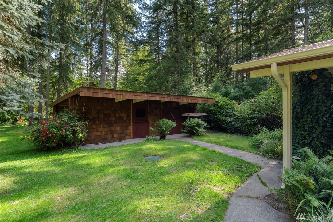 Must see to appreciate. This is a true park-like setting! On almost 5 acres, the 1710 sq ft home has three bedrooms, a fourth room, SS appliances, and 2 fireplaces. Don't forget the separate studio building/yoga room/workshop and ALSO the charismatic storage building with an adorable dutch door. Not only does this come with a two car garage, but this property has a HUGE shop. A car-lover and bike/ATV rider's paradise. Head out back and enjoy the mature trees in the trailed forest! Too fun!