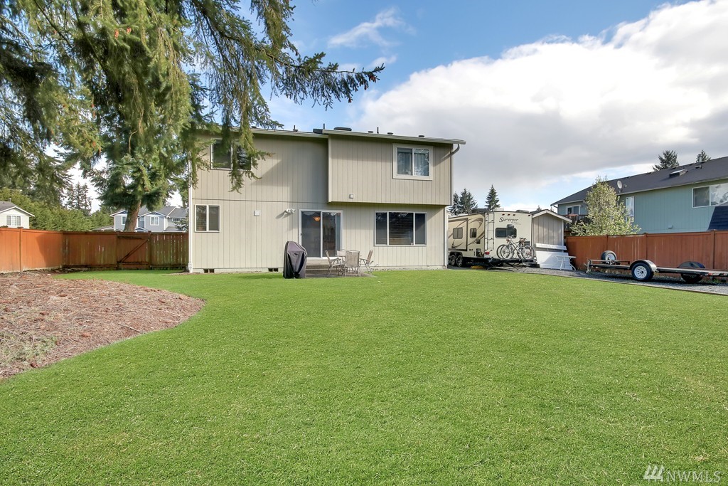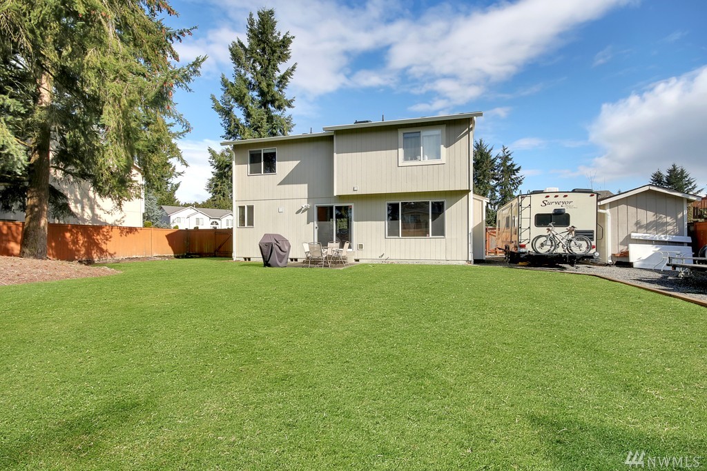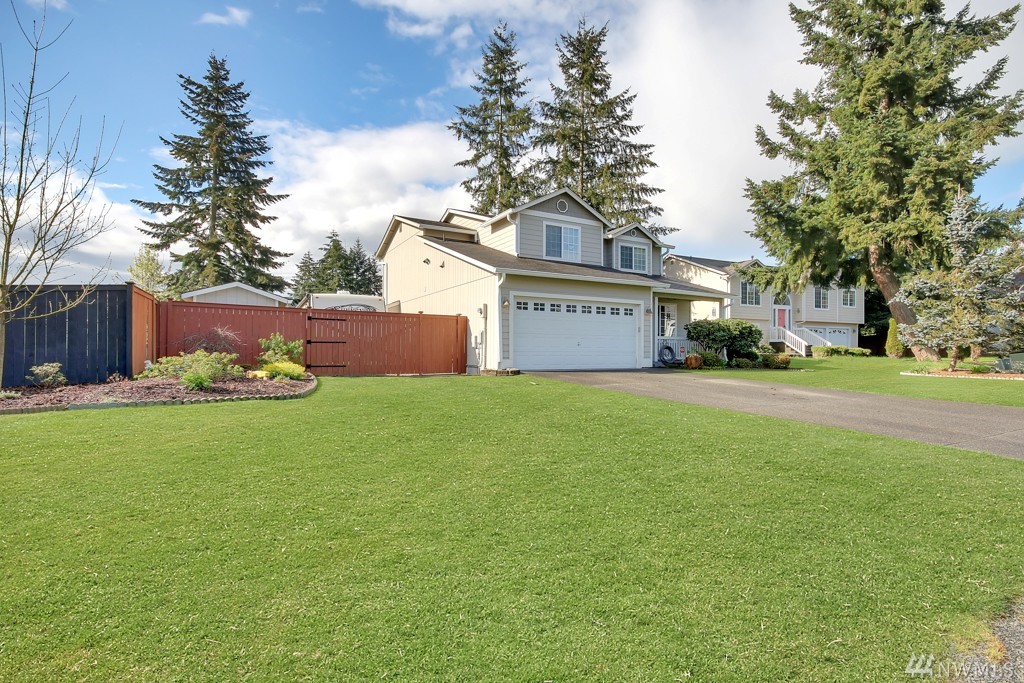 Welcome home, beautiful 4 bed, 2.5 bath in Spanaway! Right around the corner from Spanaway Golf Course, on quiet cul-de-sac. 24 hour gated community, with a 12,000 sq ft lot, double gate opens up to RV parking, wired for a generator, RV hook up, partial gravel for parking plenty of toys and 2 sheds! Newer gutters installed, newer gas furnace and gas water heater and AC! Fully fenced in backyard, must come see this one, it won't last long! Easy access to JBLM, only mins away!
