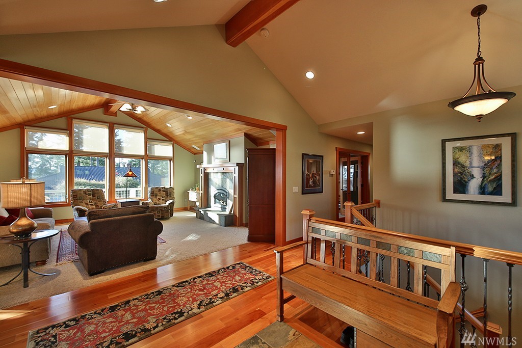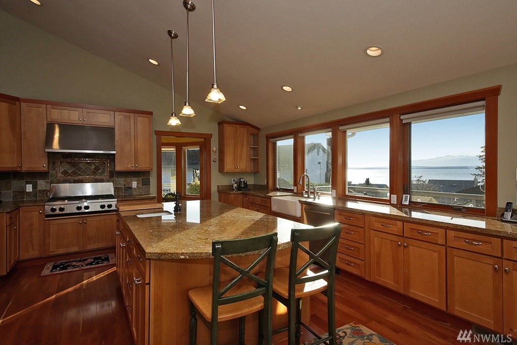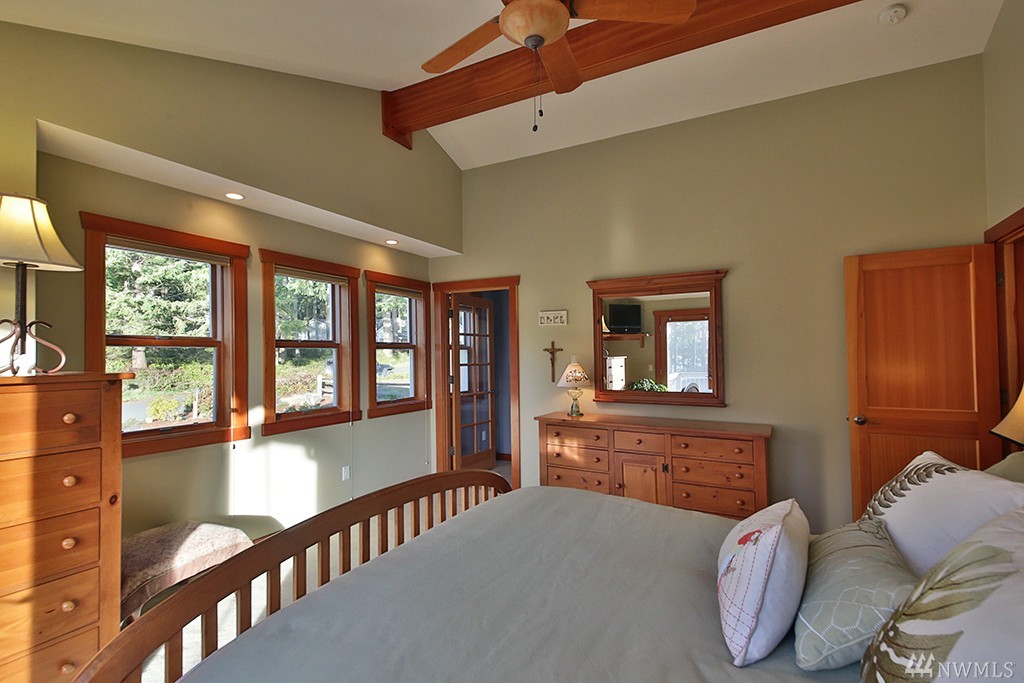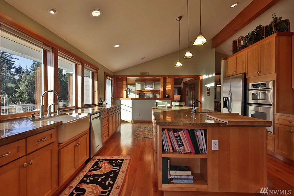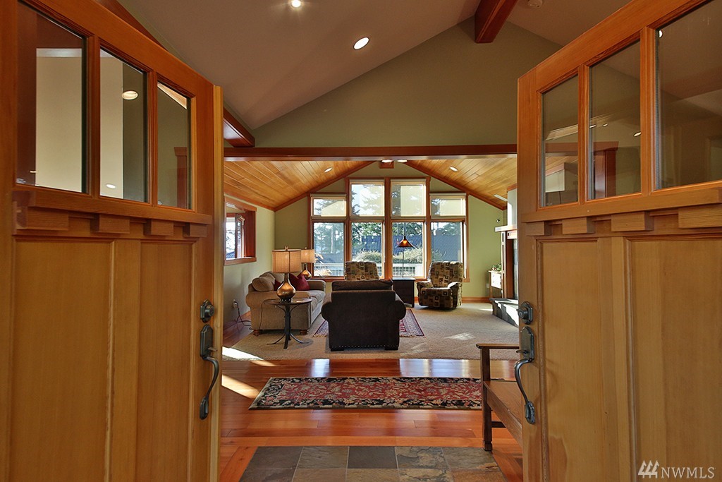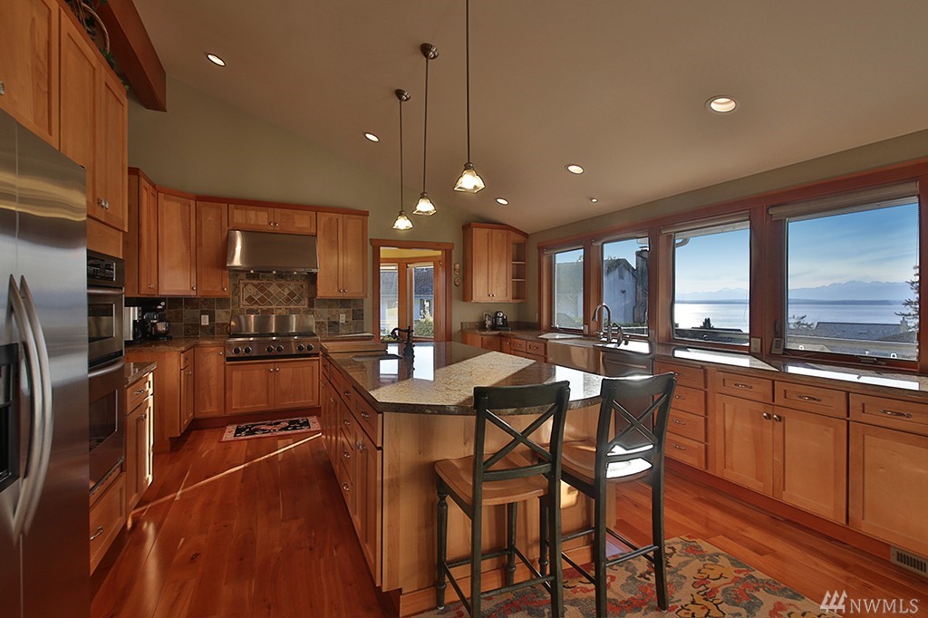 Luxurious NW Craftsman beautifully landscaped in desirable, westerly private beach community offers panoramic Shipping Lane & Olympic Mountain views from your home & the sandy community beach. Rich architectural details from warm cherry floors & fir trim to vaulted ceilings, stunning view granite & stainless Kitchen to view deck & a sumptuous main level Master Suite! Private vaulted, view office, breakfast room, hobby/laundry room, daylight basement en suite guest room, BR, family room & shop!