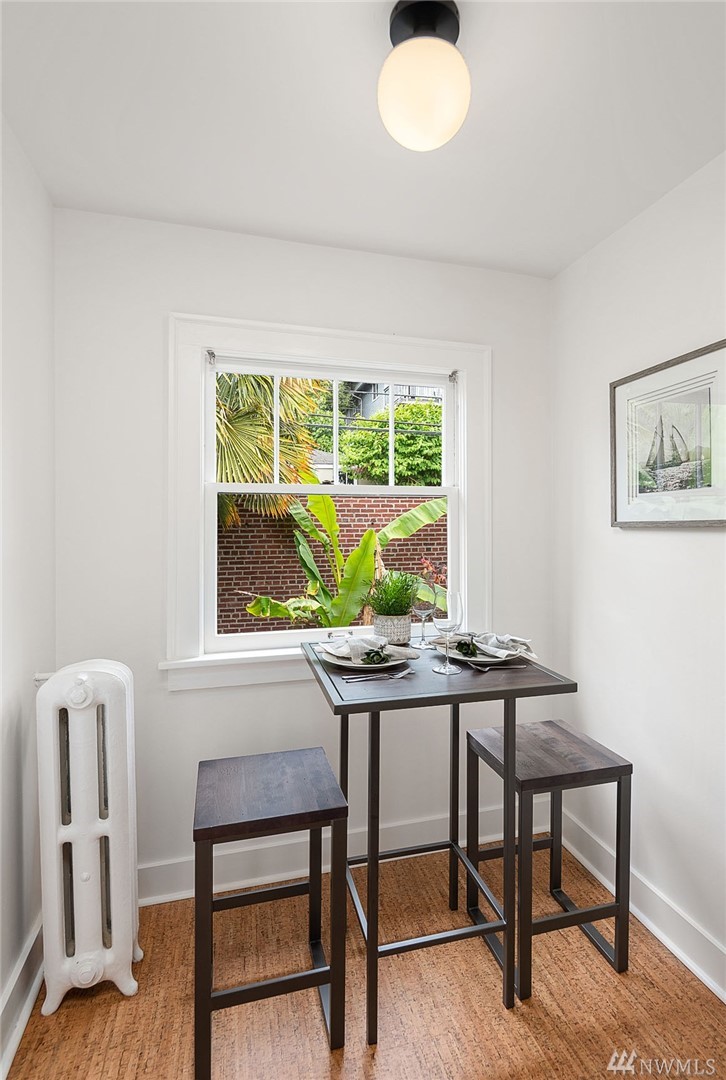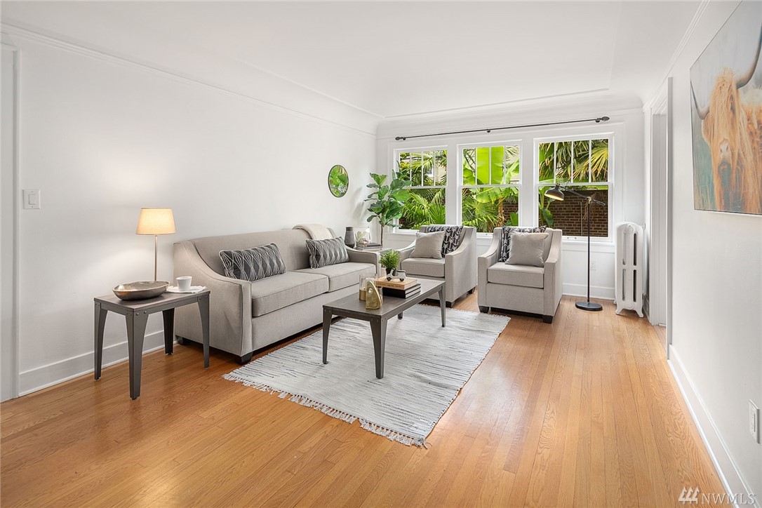 Welcome home to this turn of the century condo. Charming character exudes with thoughtful, fresh renovations in well-maintained 1927 Mara Bella building. Brand new quartz counters & tile work in kitchen & bath blends seamlessly with original cove ceilings and hardwood floors. In-home washer/dryer and complete appliance package ready for you to move right in. Quiet, tree-lined street in coveted Eastlake neighborhood offers restaurants & nightlife, just blocks to Lake Union, SLU & downtown.