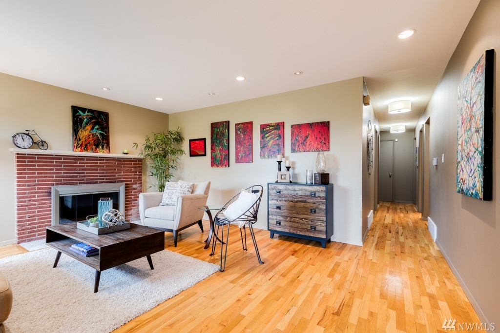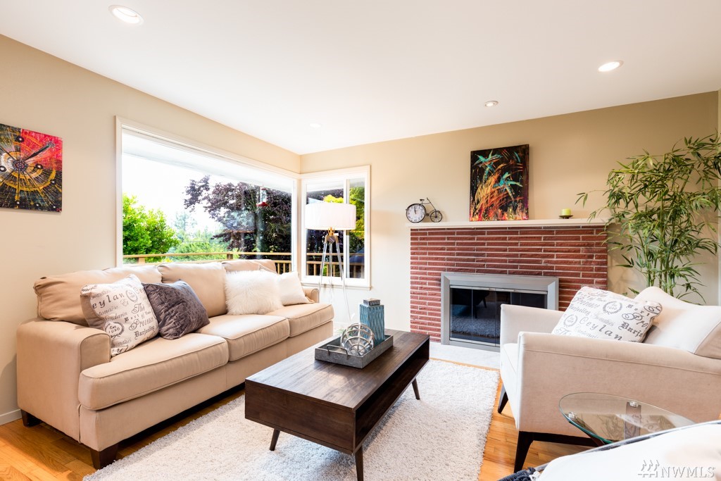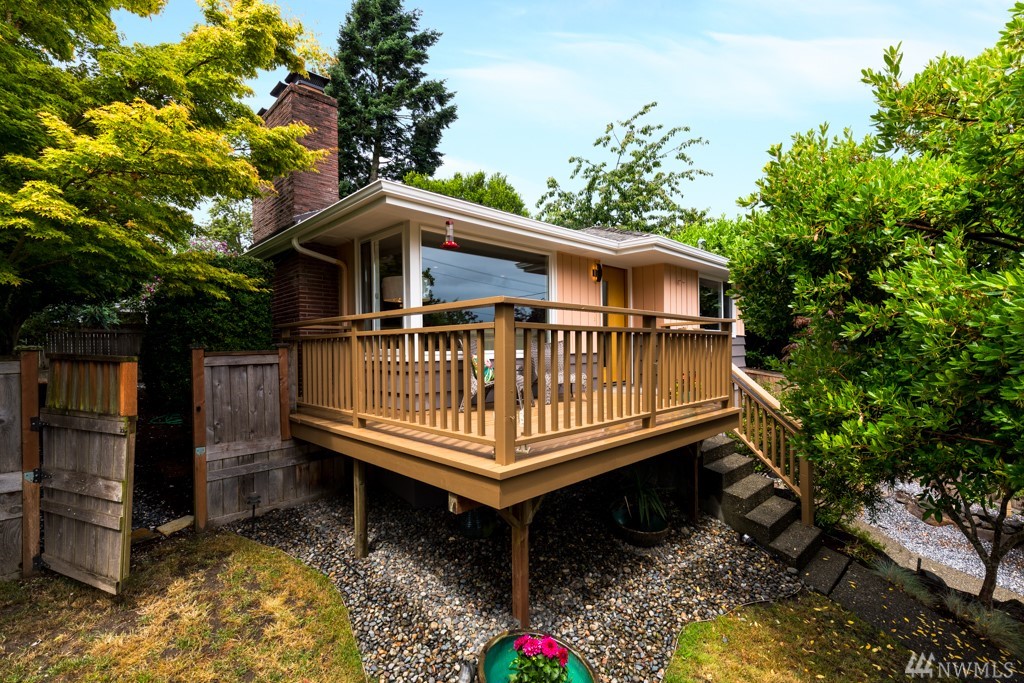 Mid-Century Modern w/ Territorial & Cascade Views! Spacious daylight Rambler sits high off-street w/ Eastern exposure. Warm and inviting from the moment you arrive. Large front deck is perfect for entertaining. Quality abounds w/ wood wrapped windows, hardwood floors, brick fireplaces, recessed lighting and much more. 3 sizable bedrooms + den on lower level. Heat pump keeps you cool in the summer. Over-sized garage & low-maintenance landscaping. Close to Lincoln Park & Westwood Village!
