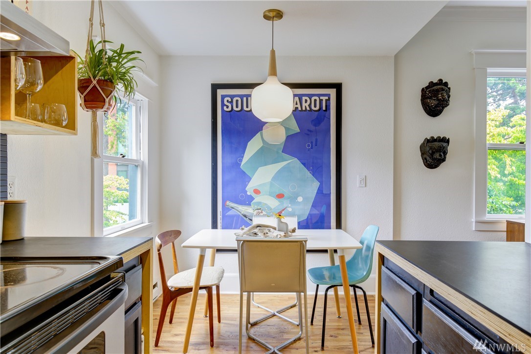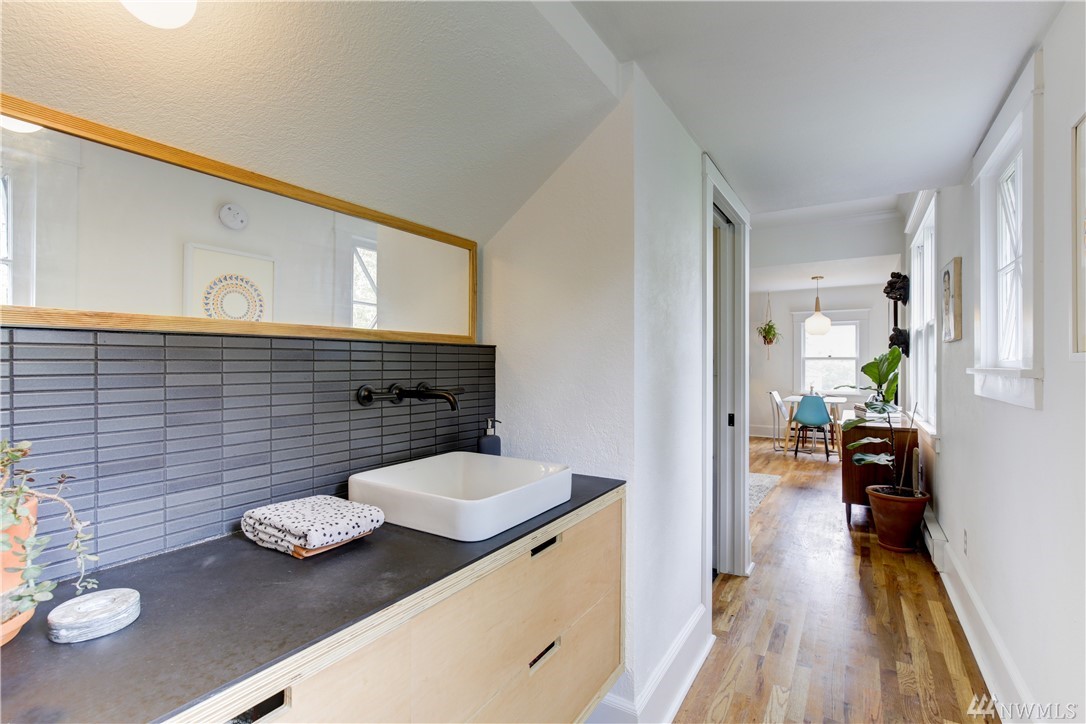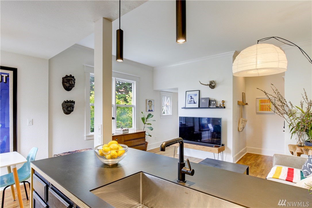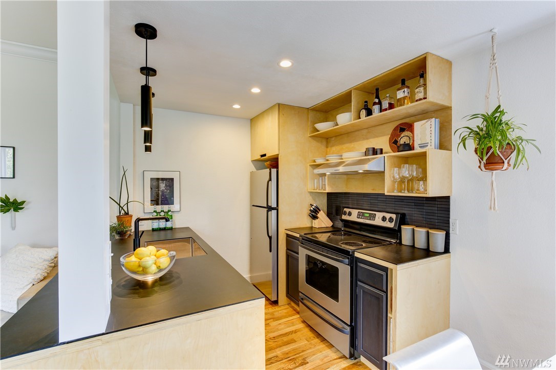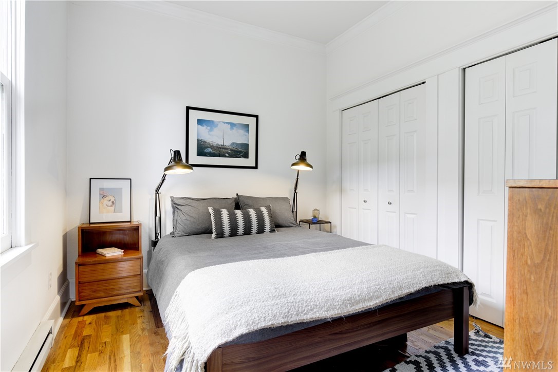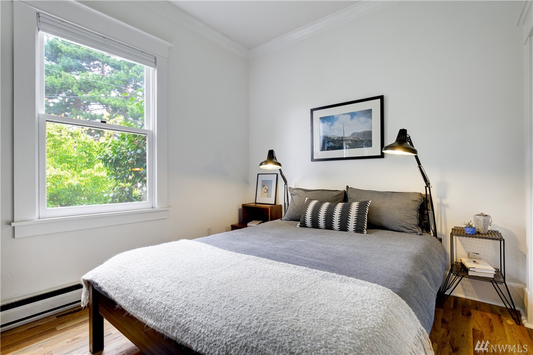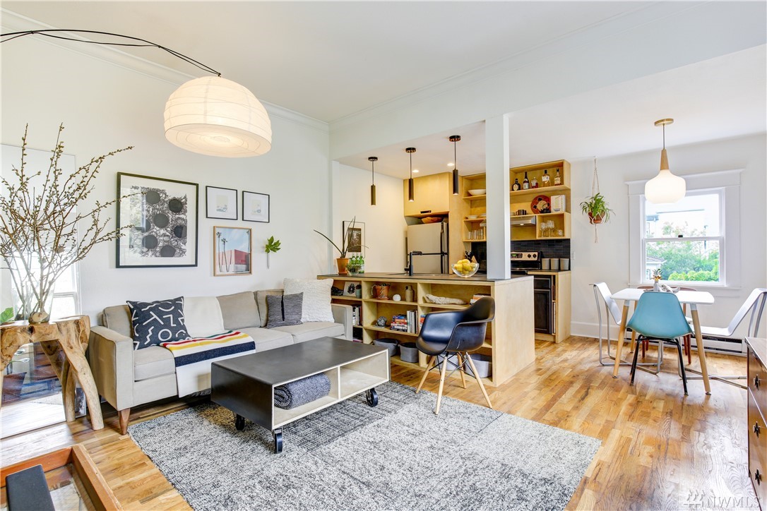 Vintage meets modern in this custom architect-designed condo in charming turn-of-the century quality building of only 6 boutique units. Features newly remodeled open kitchen and bath, high ceilings, new oak hardwoods, crown molding and peek mountain and Space Needle views. Extremely walkable to Pike-Pine corridor, light rail, transit. Well run, pet friendly building lives like a home with sweet front porch, backyard patio, flower, vegetable and herb garden, BBQ and dedicated off street parking.