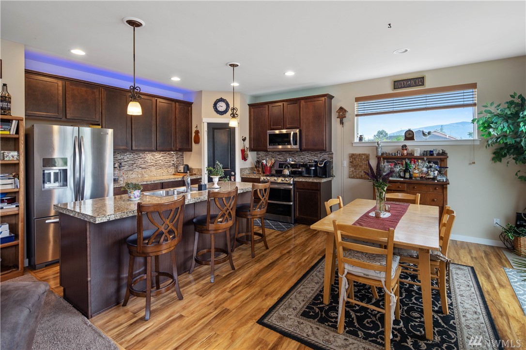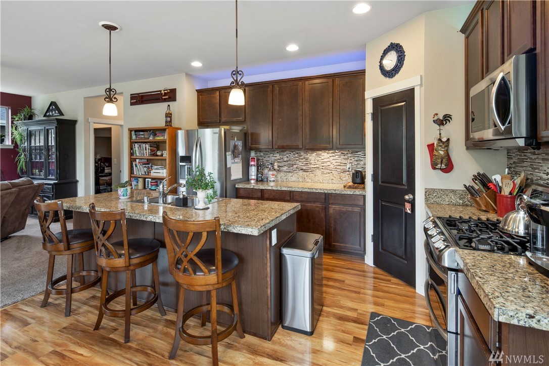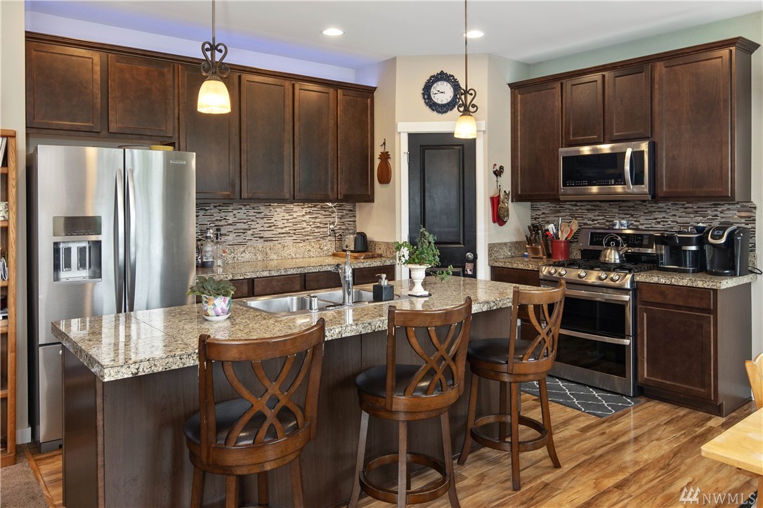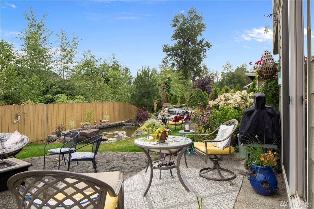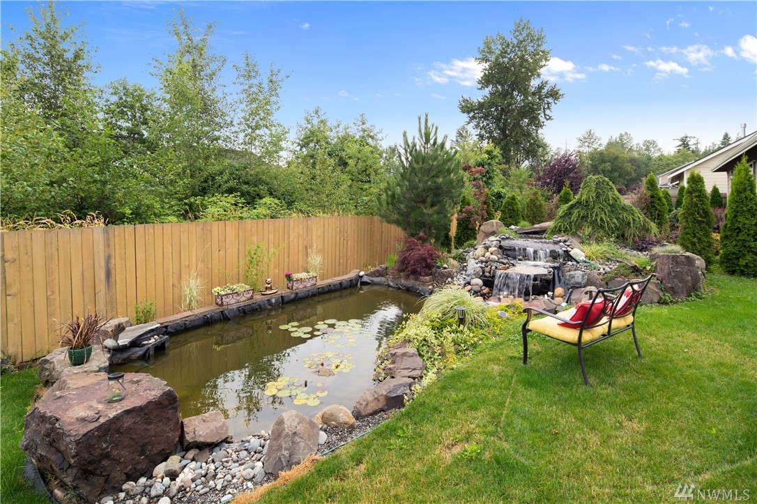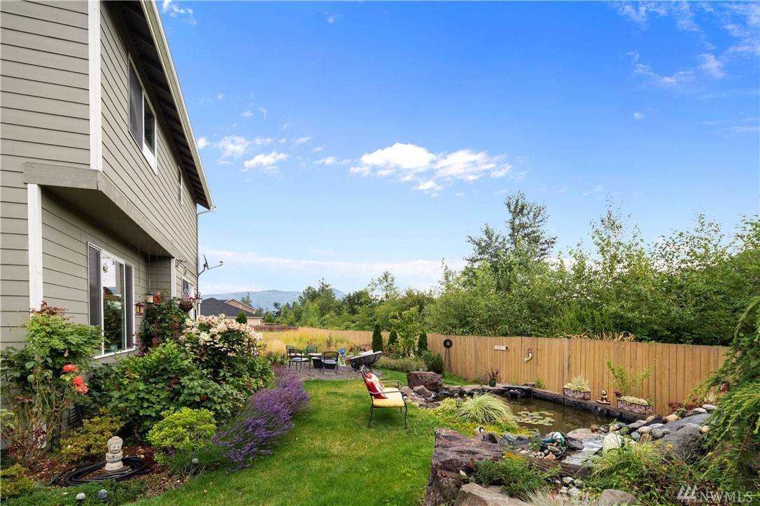 Beautiful backyard sets this home apart from all the other homes in this neighborhood! Home offers shy 1900 sq ft, 3+ BR, 2.25 baths, great room, spacious kitchen w/ granite counters, tile backsplash, island & walk-in pantry. Gas fireplace, 1/2 bath on main floor, nice storage room under stairs, 3 BR's upstairs + den/office or make into 4th BR. Lg slider off dining area to patio & gorgeous rose garden, lg water feature, pond & room for firepit. 2 car attached garage. Nice private lot!