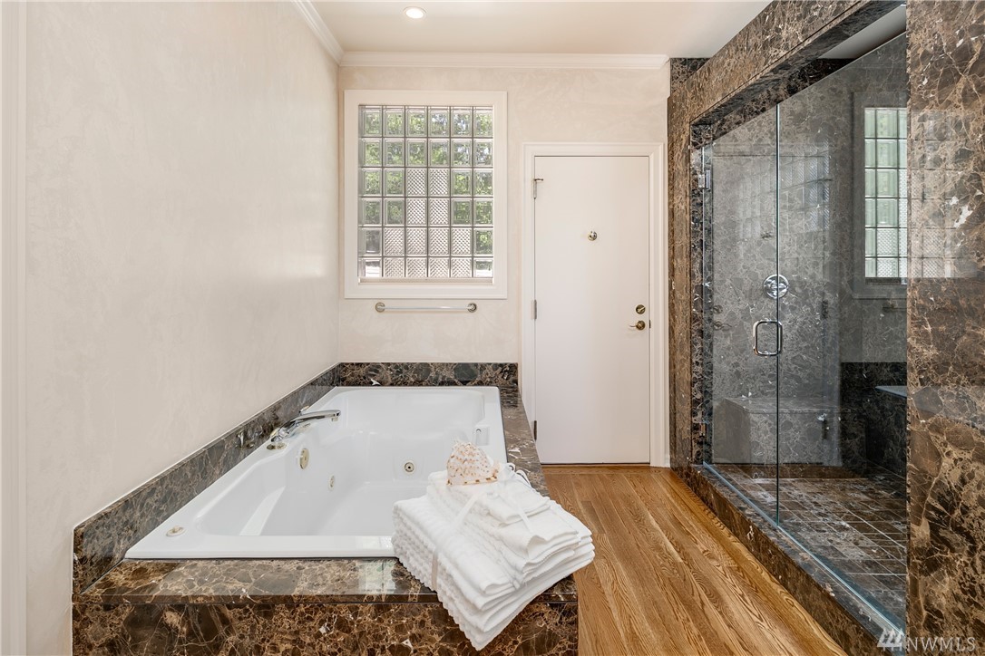Experience estate living in grandeur & serenity on 1.77 acres w/sweeping main floor master suite w/patio, fireplace, sitting rm, views, his & her walk-in closets & elegant masterbath. Guests arriving at your impressive porte-cochère & magnificent foyer step through beveled glass pocket doors into your soaring living room w/floor-to-ceiling windows framing a peaceful, natural view. Open kitchen w/walk-in pantry, commercial 6-burner stove.4 fireplaces, fenced yard, heated flooring & so much more!