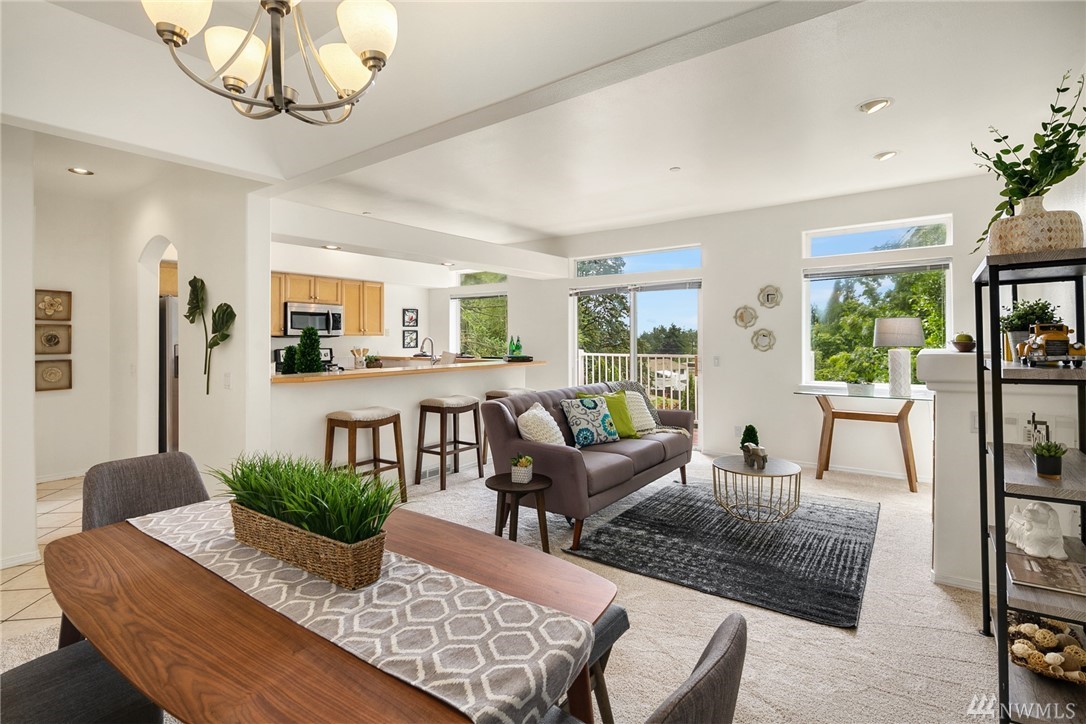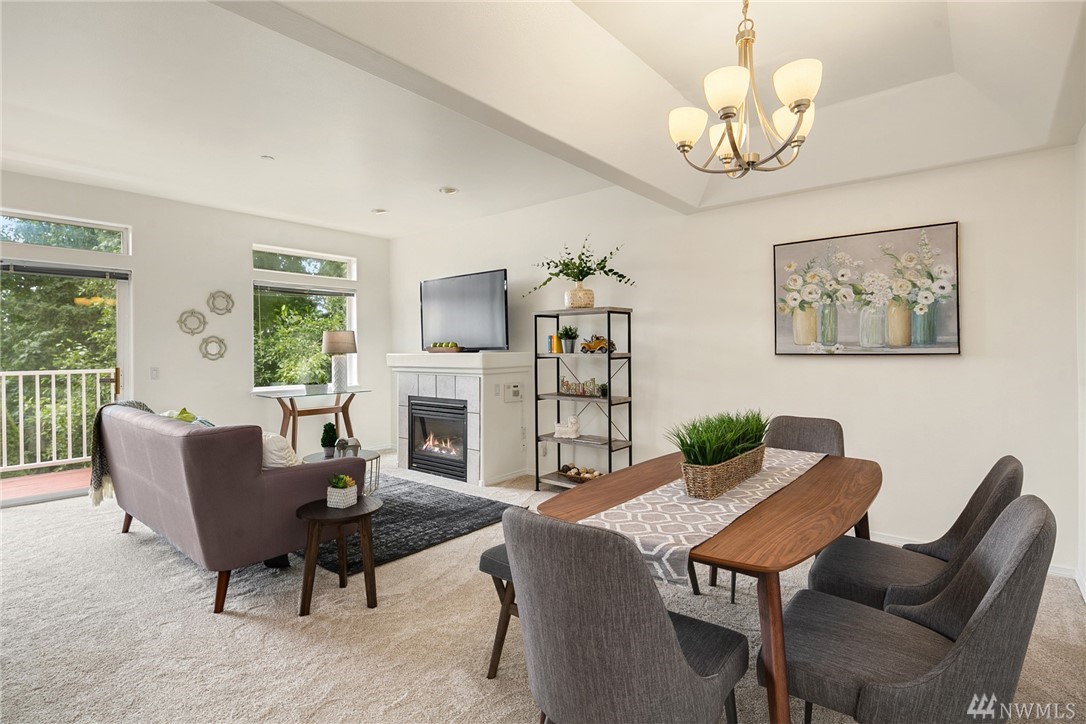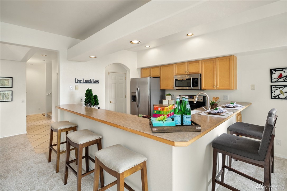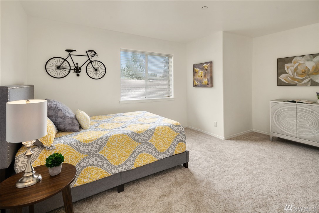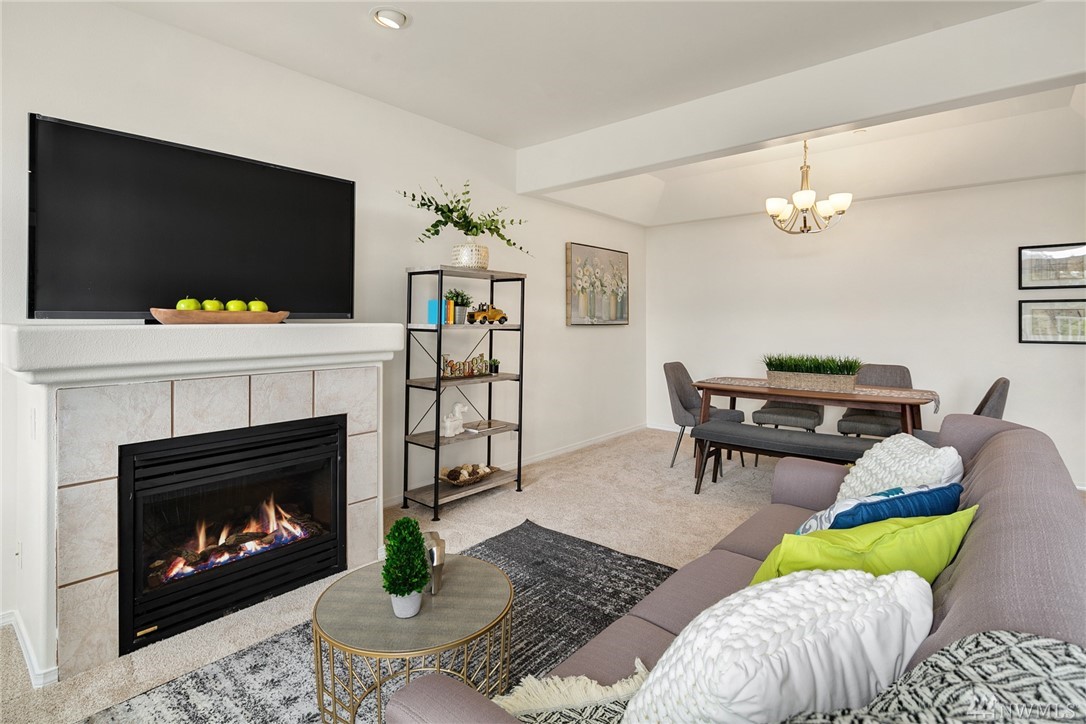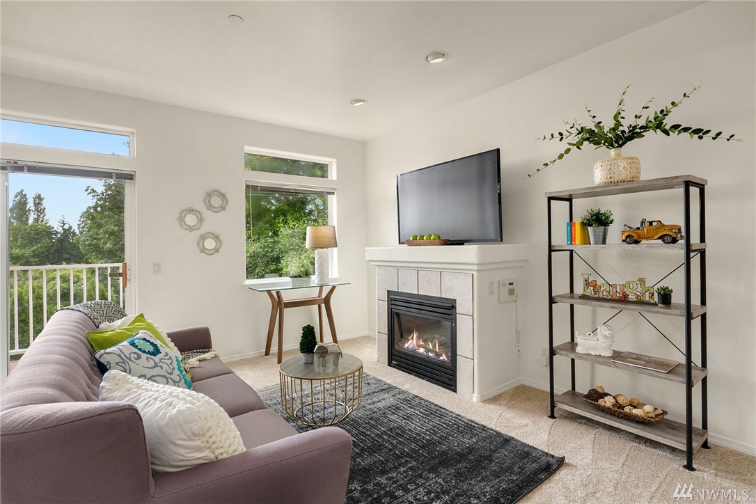 Excellent opportunity to own this end-unit Townhome w/new appliances, carpet, & paint. The inviting main floor features 9' ceilings, 3rd bedrm/office, great room concept w/coved ceiling dining space, & wrap around kitchen bar. Abundant natural light & view of the Olympics. The top floor impresses w/double master bedrooms & laundry room! The master suite features a see-thru fireplace into 5 piece bath. All of this connected to an oversized 2 car garage+extra storage! No rent cap/pet restrictions.