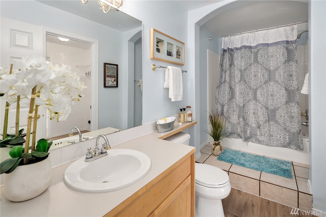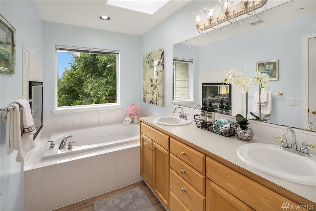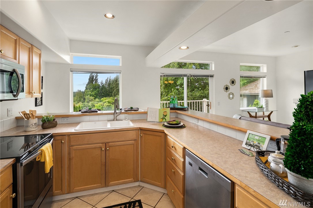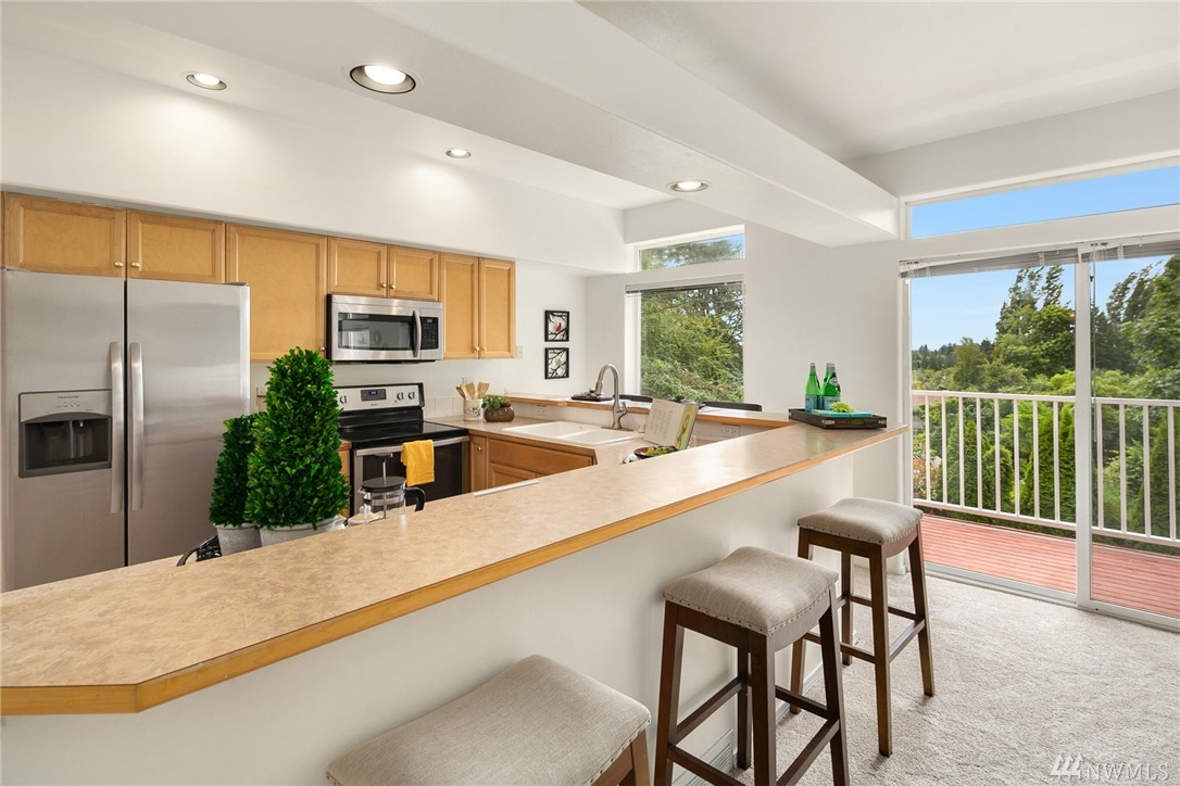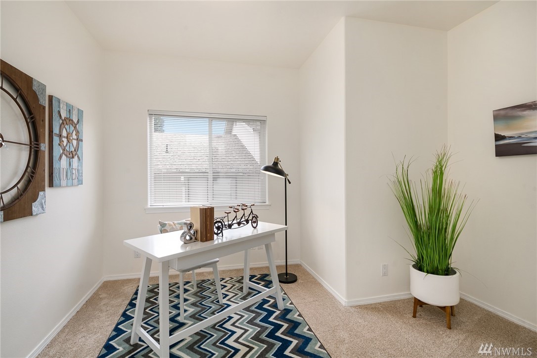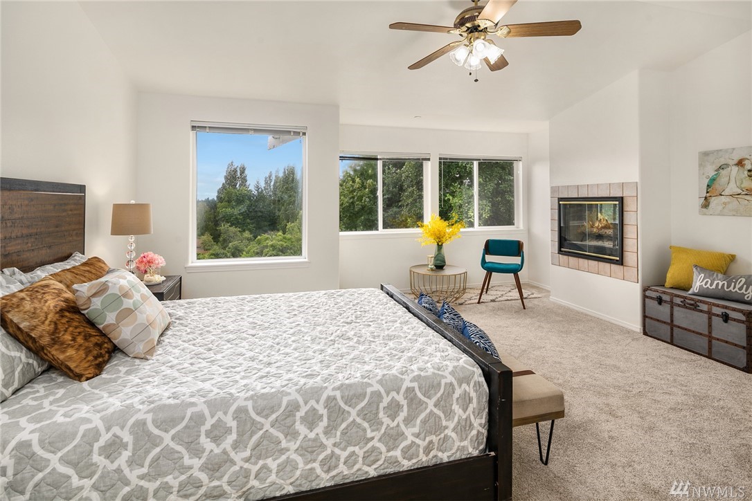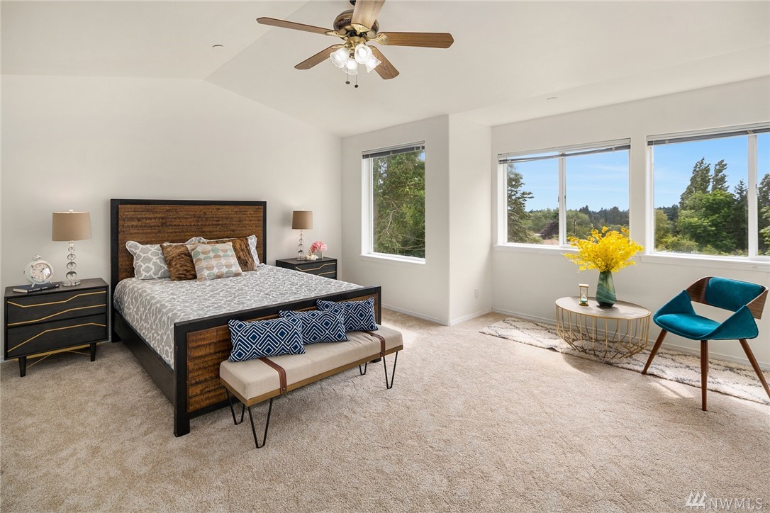 Excellent opportunity to own this end-unit Townhome w/new appliances, carpet, & paint. The inviting main floor features 9' ceilings, 3rd bedrm/office, great room concept w/coved ceiling dining space, & wrap around kitchen bar. Abundant natural light & view of the Olympics. The top floor impresses w/double master bedrooms & laundry room! The master suite features a see-thru fireplace into 5 piece bath. All of this connected to an oversized 2 car garage+extra storage! No rent cap/pet restrictions.