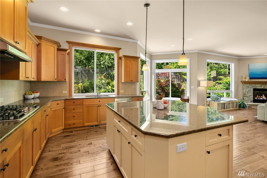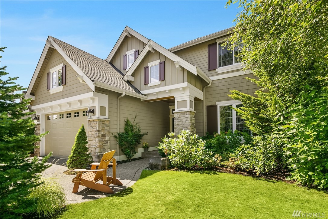 Quality-built William Buchan home that backs to open space and has sunny Southwest exposure! Dramatic open floor plan with 10 ft high ceilings, giant kitchen island and loads of natural light. A/C, tankless water heater, wired for generator. Highly desirable Trossachs neighborhood with trails, green space, playgrounds and sport courts. Excellent Issaquah School District.