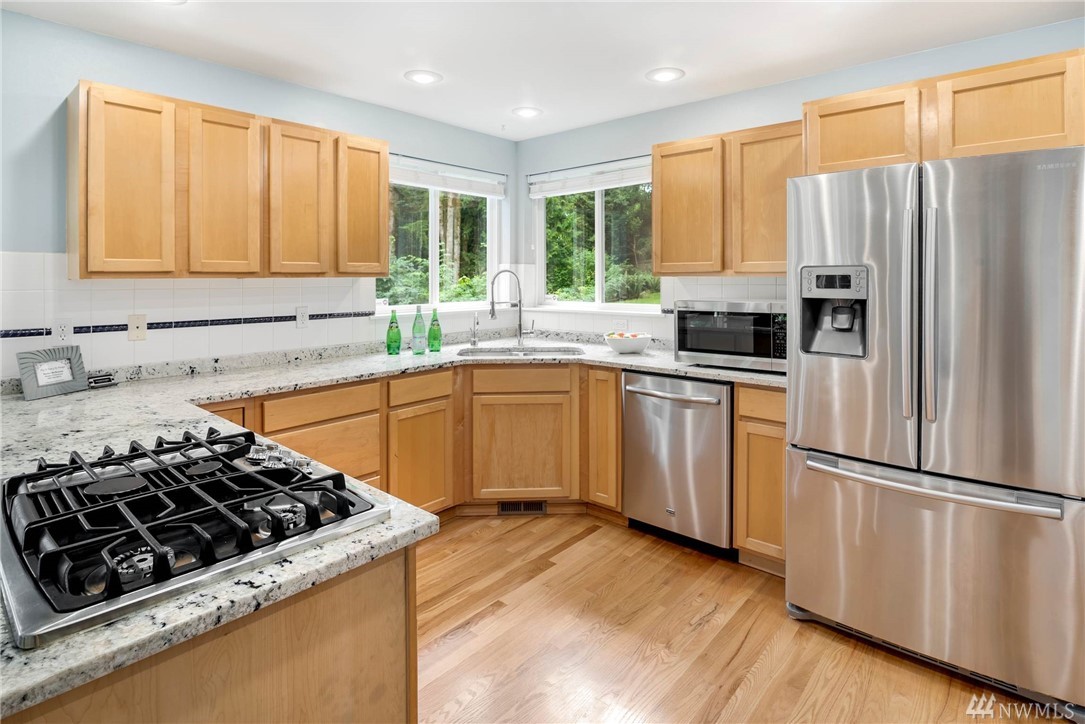 Sought after Taylor's Ridge private retreat. Enjoy curb appeal w/ a covered front porch at the end of a quiet cul-de-sac on over an acre. Light & bright w/ open concept kitchen, SS appliances, granite counters & lots of storage. 4 large bedrooms, 2.5 baths w/ formal & informal living spaces. Features include a treehouse deck, newer roof, & new fencing. Lot backs greenbelt. Close to town w/ great food, shops, & trails. Don't miss out on living in this great community w/ small-town conveniences.