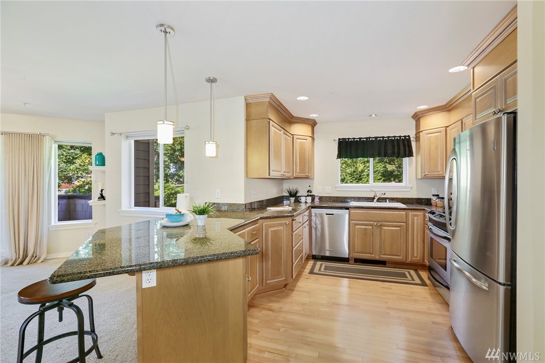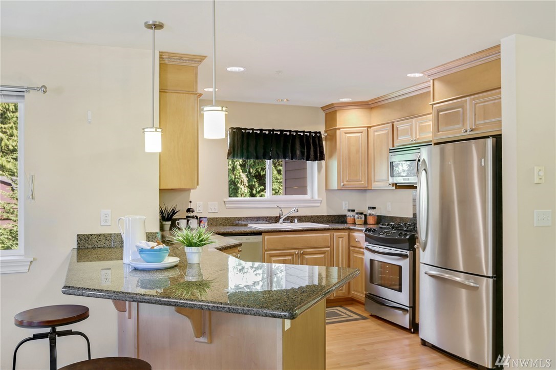 Welcome to living in Richmond Beach’s desirable Belmar Condominiums! Top floor unit, with no common walls, on the quiet side of the building. Open floor plan flooded with light, two large bedrooms plus office, gas fireplace, high-end kitchen. High-efficiency heat, secure lobby entry, large storage locker. Very well managed HOA. Perfect location close to the beach, library, shopping and transit.