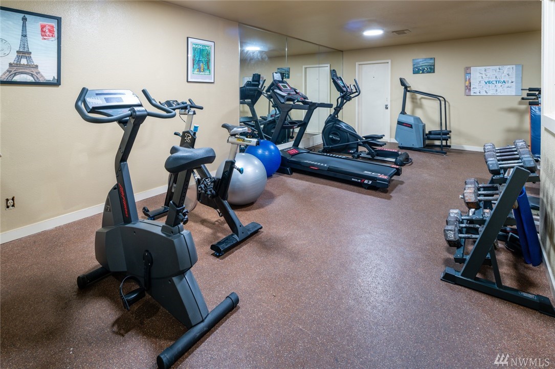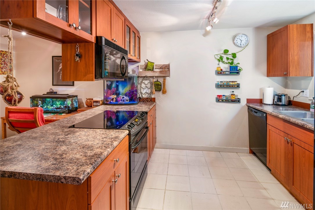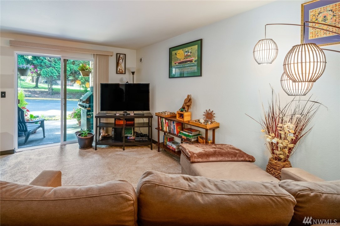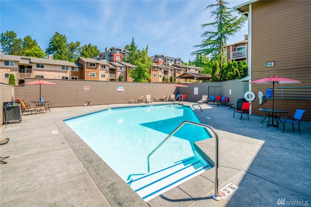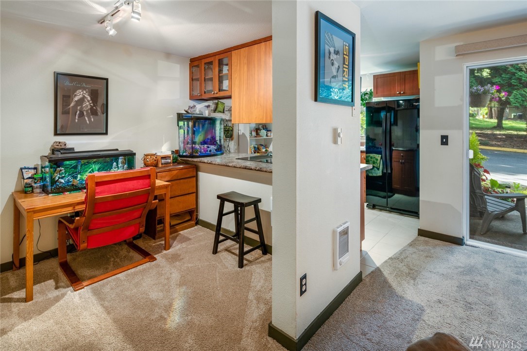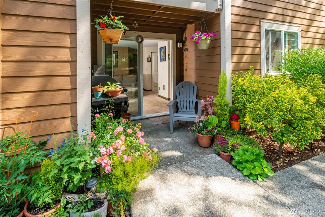 Immaculate, move-in ready ground floor 1 BDR, 1 BA unit in Downtown Woodinville! Open concept living space with updated kitchen, cherry cabinetry and spacious dining area. Living room with sliding doors out to private patio w/storage room. Oversized Master w/ensuite bath. Full-size W/D in unit. Complex amenities include outdoor pool, hot tub, racquetball court and fitness room. One parking spot close to unit. $2500 buyer credit towards closing costs or additional updates.