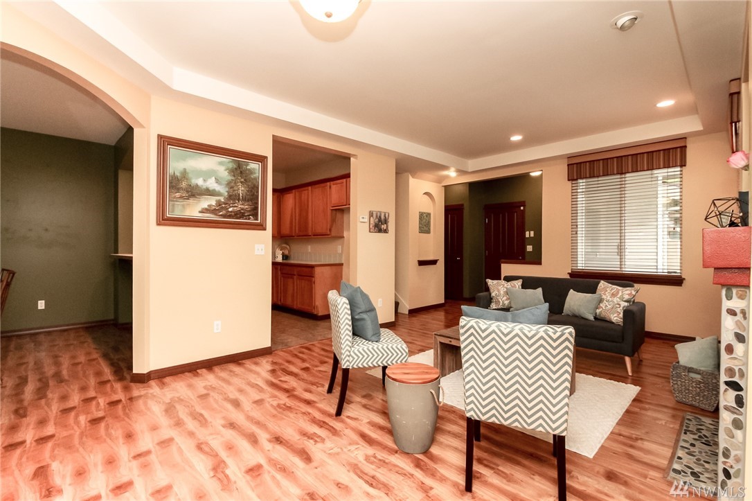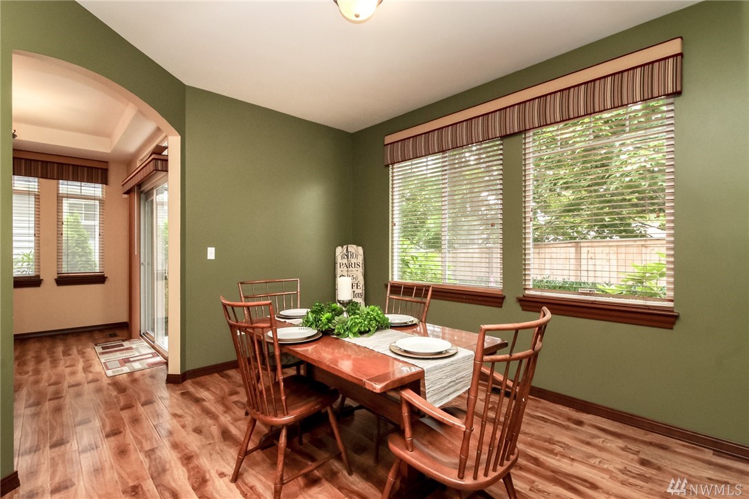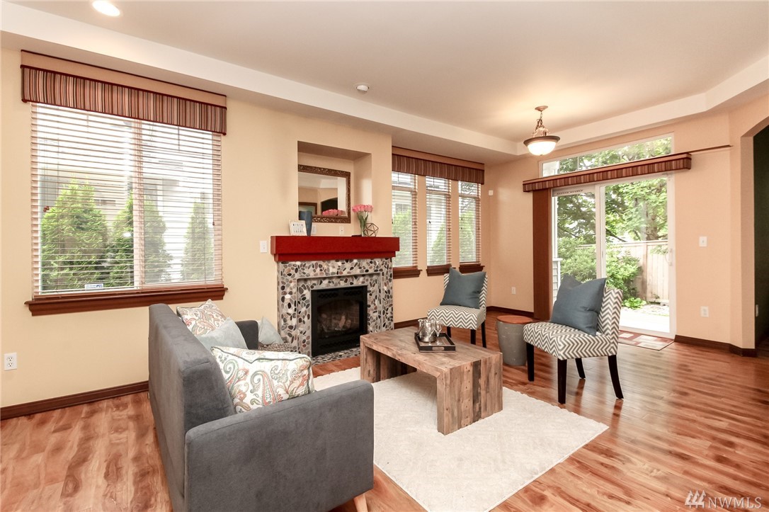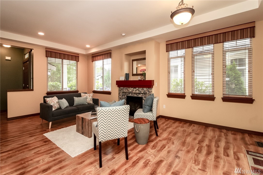 Meticulously maintained townhome at Morgan Court, a quaint gated community hidden in the heart of Benson Hill. Rich new laminate floors greet you & flow through living w/beautiful rock gas fireplace. Kitchen w/newer stainless appliances, breakfast bar open to dining area. Generous bedrooms incl. master suite w/spacious walk in closet & bath w/tile counters & tub, separate shower. Oversized 2 car garage. Enjoy your private & treed patio & yard. Quick for commuters & close to all amenities.