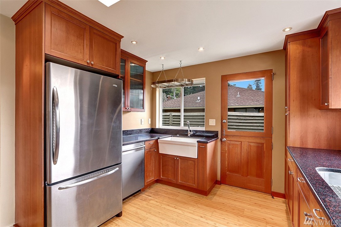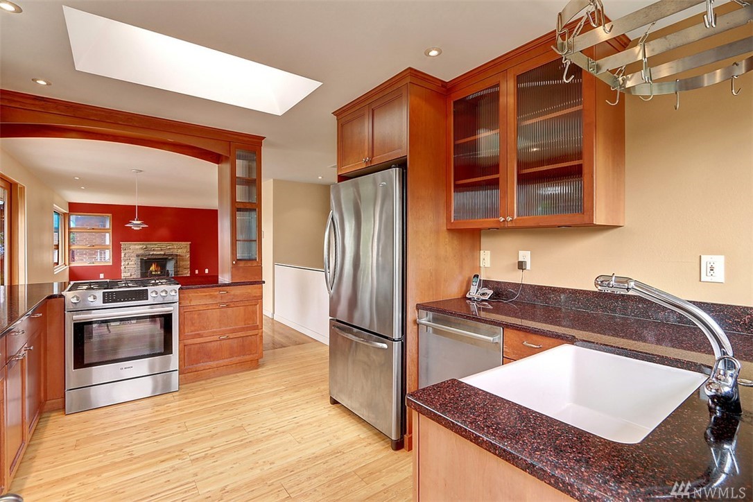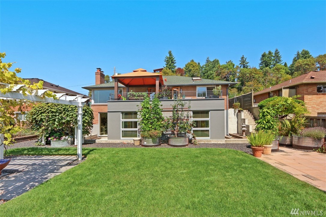 Paradise. Garden oasis complements this custom remodeled home offering newer kitchen/quartz counter/stainless steel appliances with stunning lower level master Suite. Large living/dining room with outstanding Puget Sound and Island views. Japanese Soaking tub, walk in closet completes this master suite. Family room with frpl., built in surround sound with included TV. Outdoor patio gazebo with gas fire pit & extensive raised bed garden. Yesterday's classic is today's modern contemporary.