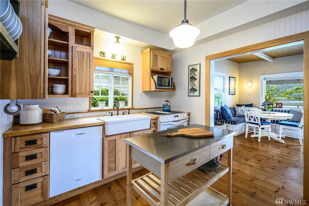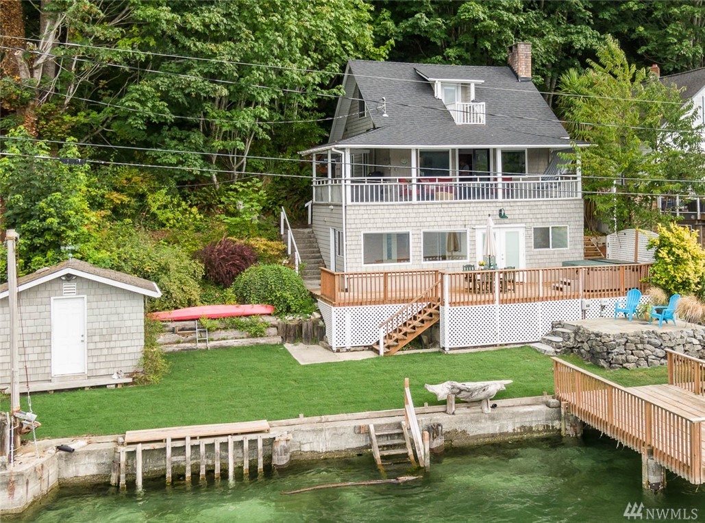 Historic Cape Cod on 65 feet of west-facing waterfront. This renovated 2 bedroom, 1-1/2 bath home is packed with charm: Wide-plank floors, period fixtures, wainscoting, kitchen with farm sink and custom cabinetry. Main living area opens to covered porch, perfect for lounging rain or shine. Lower level has large bonus room and walks out to deck with hot tub. The beachside lawn, private dock, low-bank bulkhead, and storage shed for toys provide endless ways to enjoy this waterfront gem!