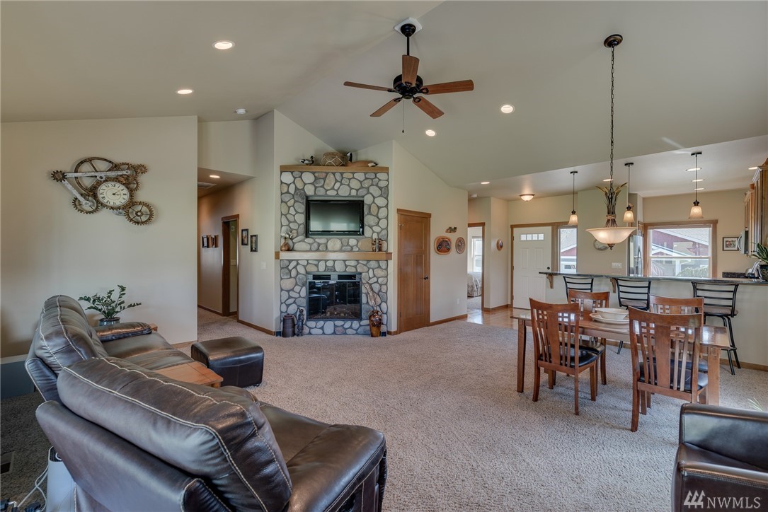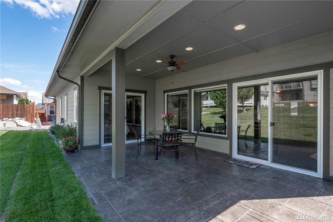 This custom-built home's layout is so perfect the sellers are having the same home built by the same builder on their new lot! Green spaces on the N & W sides make the yard feel huge & landscaping provides privacy. Meticulously maintained, this home has high-end finishes throughout. A focal point is the rock fireplace. Sliders from the great room and master bedroom lead to the covered patio. The master suite has a big walk-in shower & walk-in closet. Just a short level walk to the swimming pool!