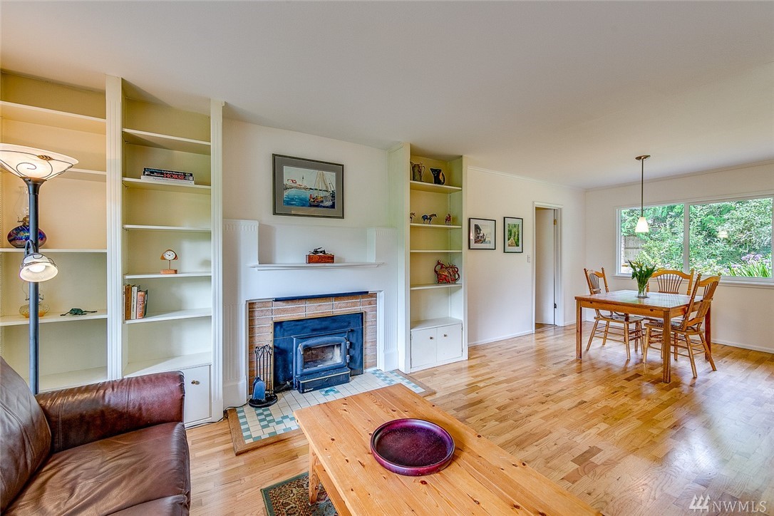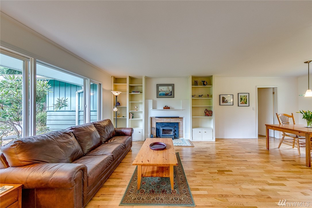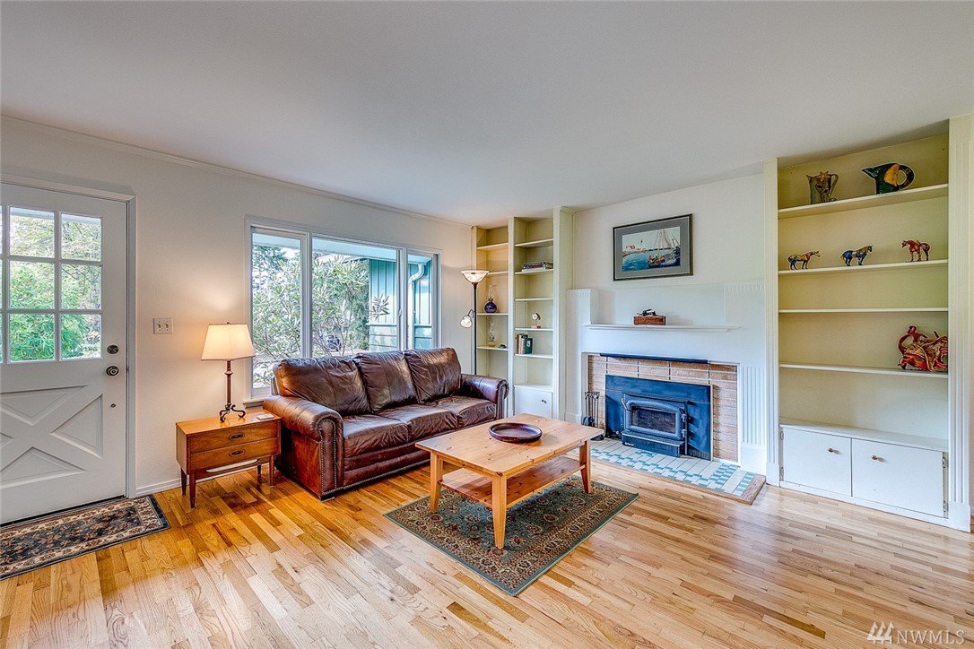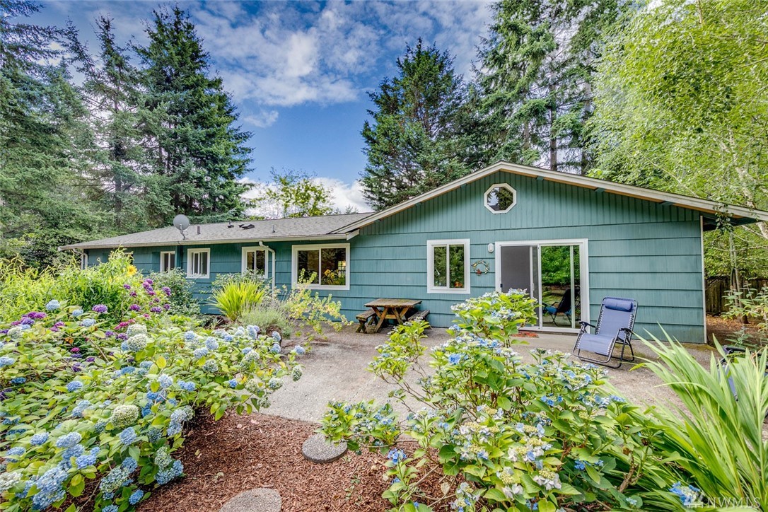 Tucked away on a quiet street in the heart of Winslow is this freshly updated one story 3 bedroom rambler with a beautiful level private fenced backyard with patio, fruit trees and hydrangeas! New interior paint and original oak floors through out. A back family room features sliding glass door exposed trusses and new laminate flooring. Newer 4 year old roof and brand new paved driveway. All appliances included. Walk or roll to ferry, shopping and schools.