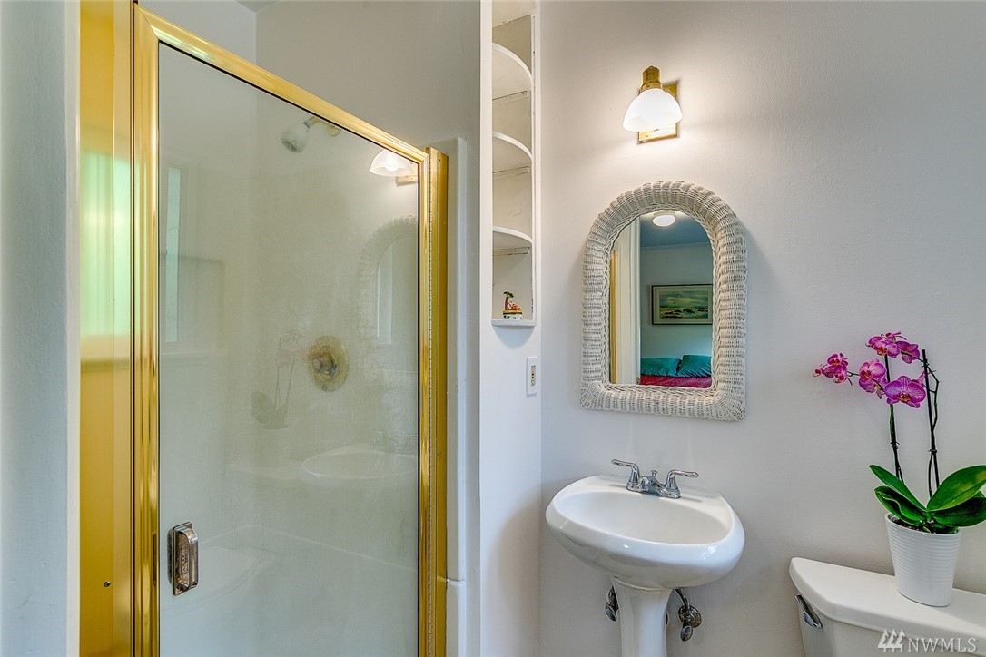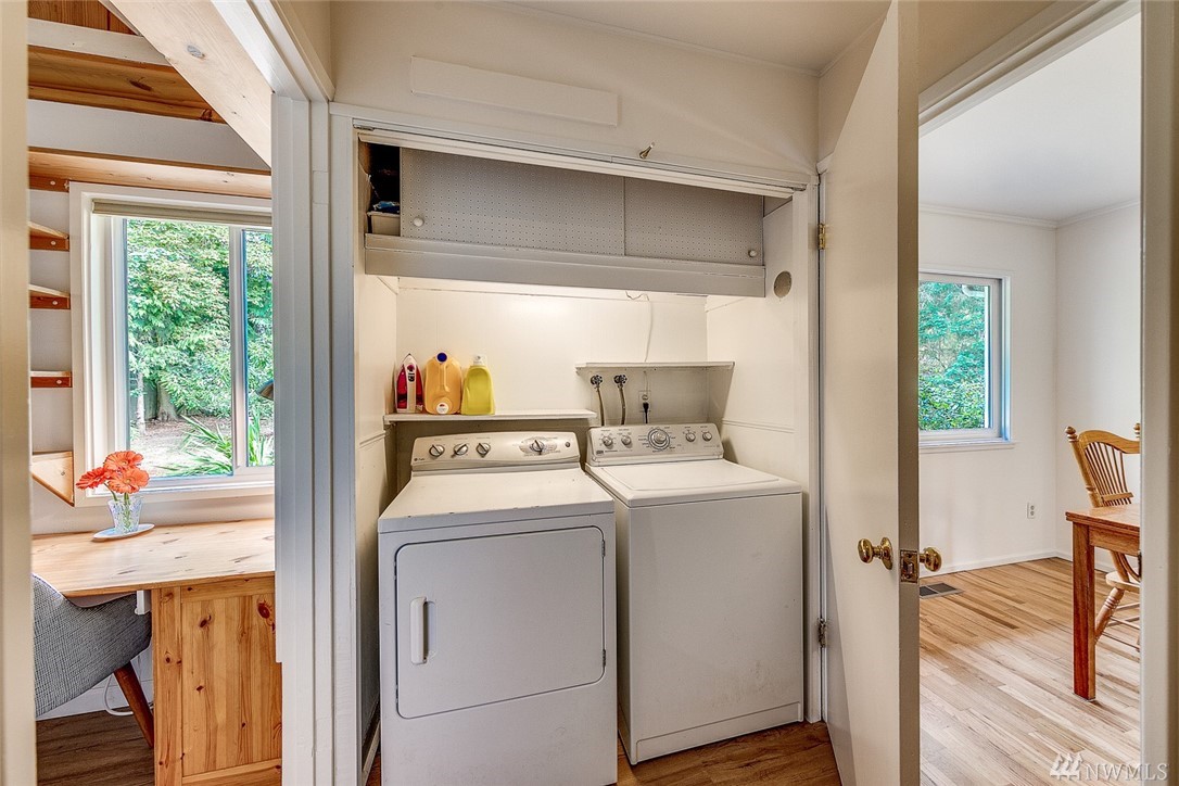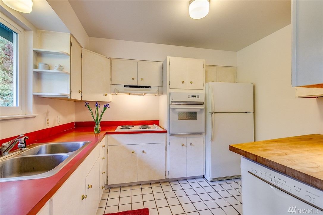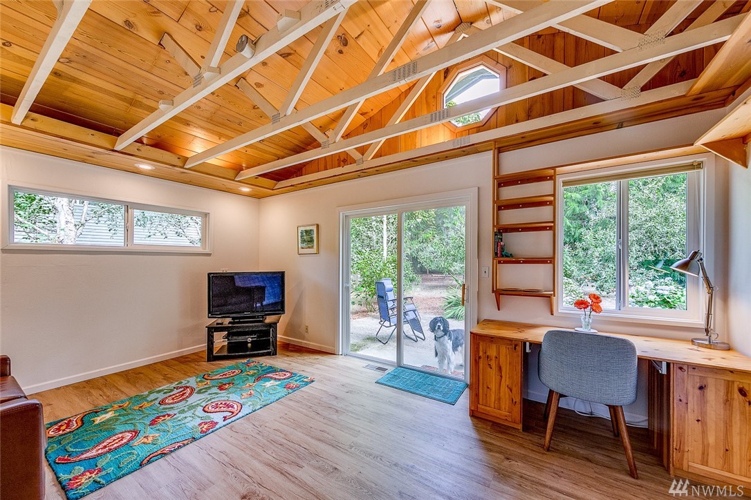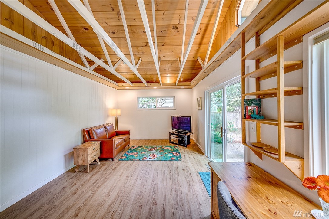 Tucked away on a quiet street in the heart of Winslow is this freshly updated one story 3 bedroom rambler with a beautiful level private fenced backyard with patio, fruit trees and hydrangeas! New interior paint and original oak floors through out. A back family room features sliding glass door exposed trusses and new laminate flooring. Newer 4 year old roof and brand new paved driveway. All appliances included. Walk or roll to ferry, shopping and schools.