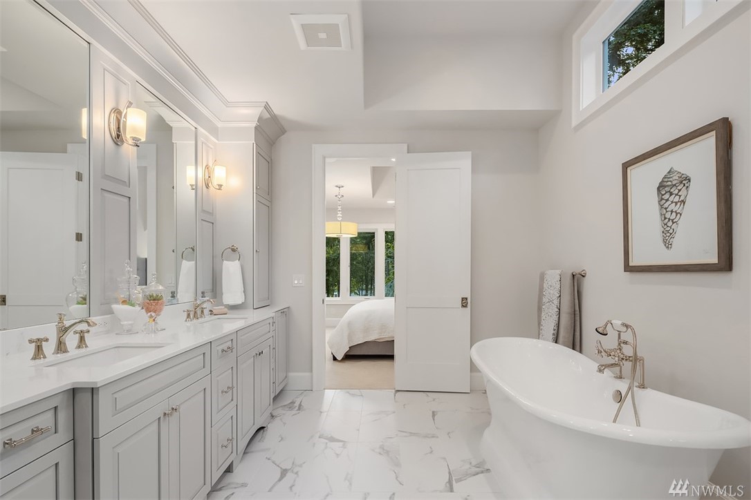 Sherman Homes brings their classic Hamptons inspired coastal design to the heart of Enatai in West Bellevue. Delightful & exquisite charm. The coastal inspired interior sets the stage for casual elegant living. Gracefully set amongst mature trees w/ an expansive private sunny rear yard. The open Great Room seamlessly blends w/ the outdoors via an oversized bi-folding door. On the lower level, indoor entertaining abounds w/ a wet bar, media room, future wine cellar & large guest suite.