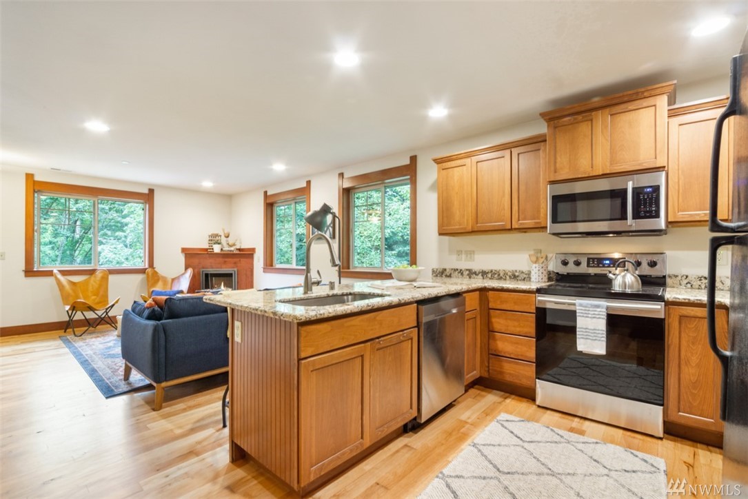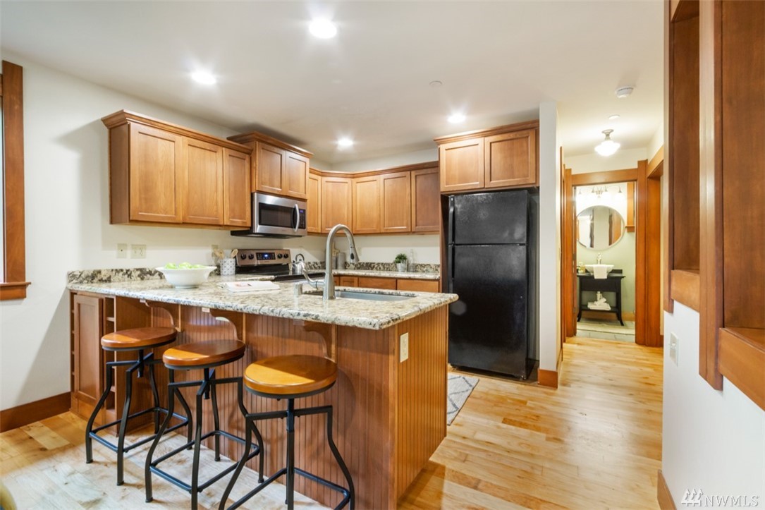 Immerse yourself in the North End Lifestyle with this astounding Condo in the Three Bridges District! Built in 2007 with the intention of storage & practicality, this classy home includes freshly refinished wood floors, granite counter-tops, & views of the gulch from every room. The healthy layout provides endless opportunities, space, & an abundance of windows catering to the peaceful views. Enjoy the various Three Bridges shops or enjoy a quick walk to Ruston Way, Proctor, & Stadium District!