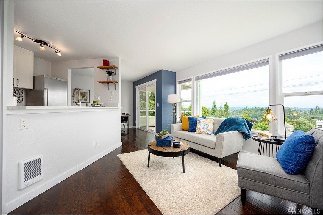 Breathtaking 180' views of Cascade MT, Lake WA & Park. Enjoy sunrises,fireworks & Blue Angels from your living rm. Stunning light & bright living rm which flows into the dining space & Private deck overlooking the ample views. Kitchen has been fully updated w/quartz counters & custom cabinets. Designer paint, hardwd & Tile flrs & in unit W/D are just a few of the upgrades making this unit Special. Parking & storage! Walk to restaurants, YMCA, shopping, arboretum & bus. NO RENTAL CAP & Strong HOA