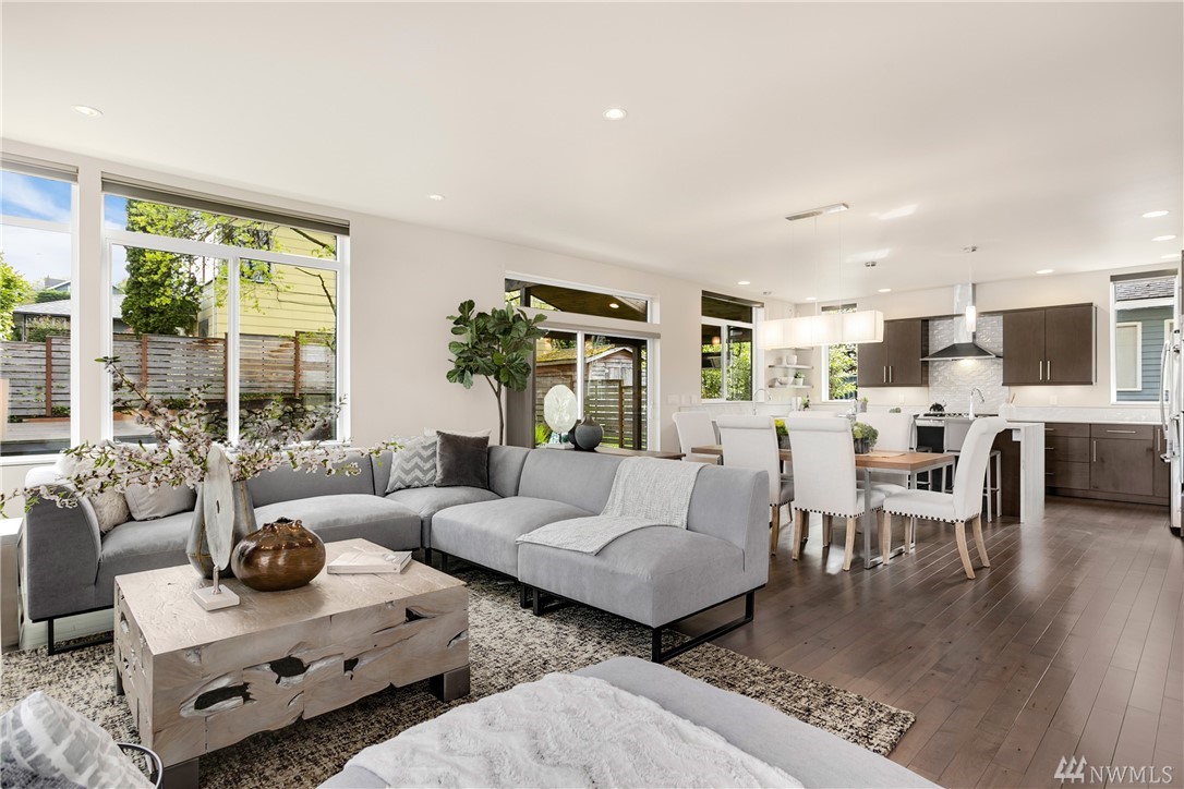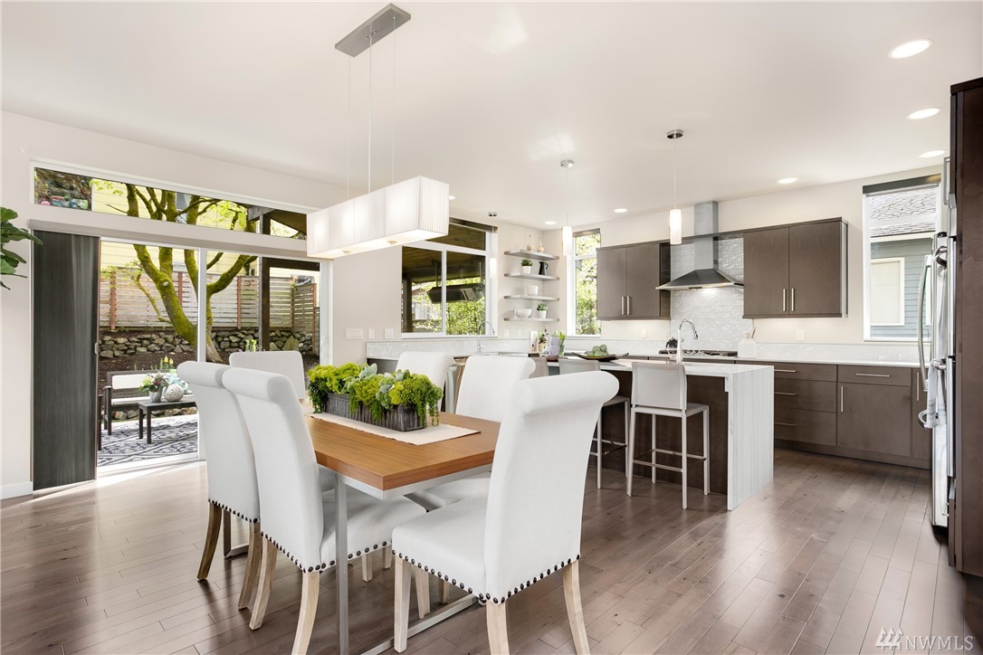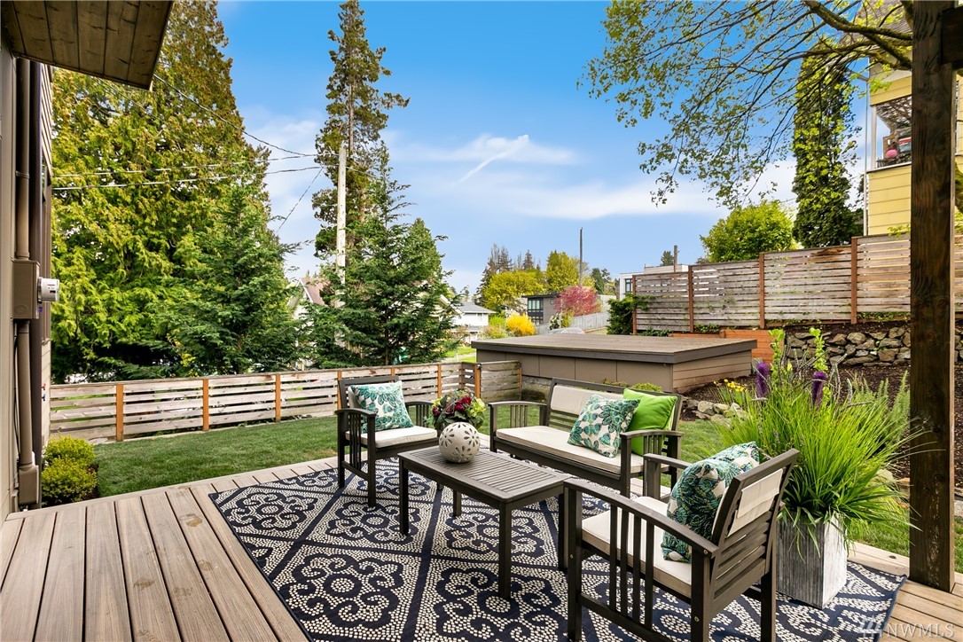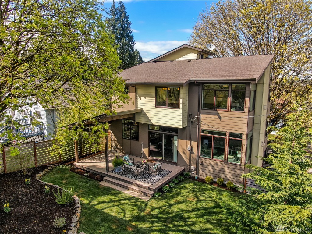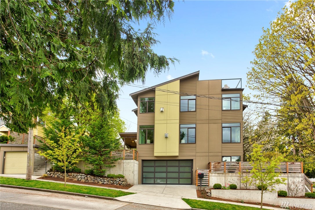 STOP! Look no further. This one has it all. Location! Contemporary! A RARE backyard oasis w/ a covered patio! A 3rd garage is the cherry on top! Corner lot 4 beds + office modern & cozy home w/ majestic views & steps to Green Lake, Phinney Ave & Zoo. Built GREEN & tech-loaded w/ auto blinds, central vac & speakers, etc. Ultimate entertaining w/ great room & gourmet kitchen. Rooftop lake VIEW deck w/ wet bar. 10 mins to Seattle & a hop to Ballard & Fremont. Top Schools & location! Bring offers!