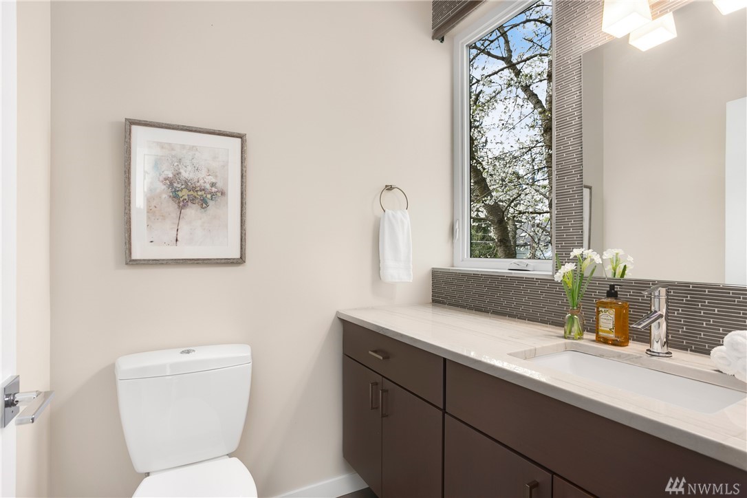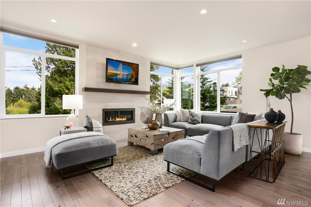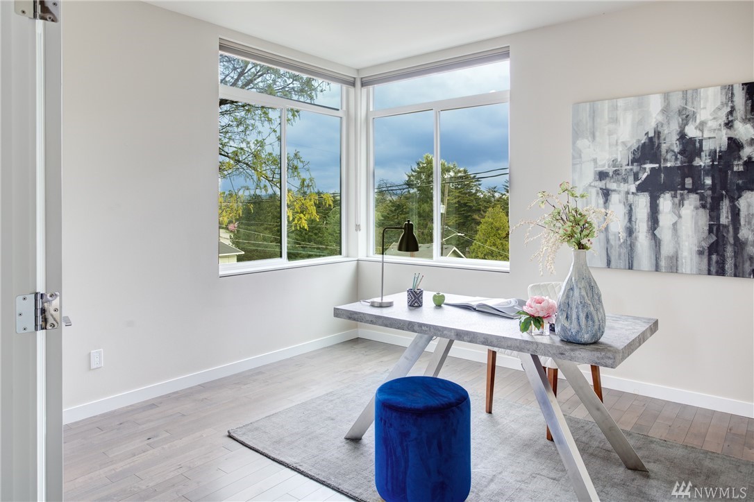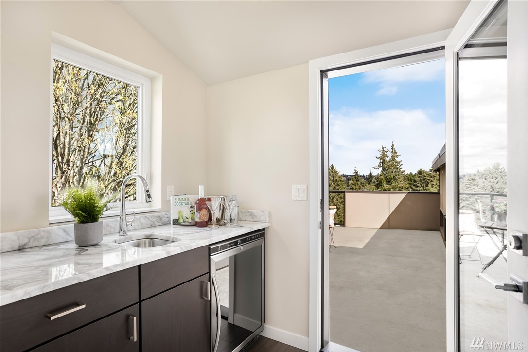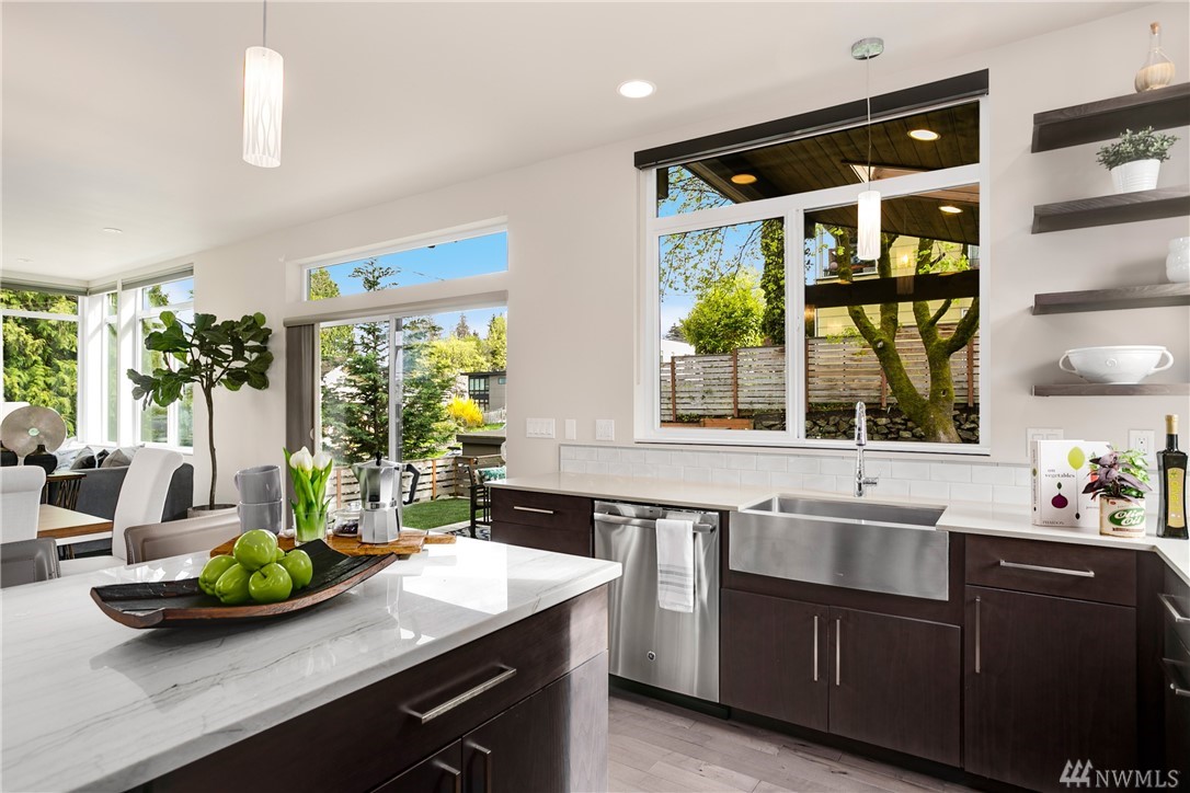STOP! Look no further. This one has it all. Location! Contemporary! A RARE backyard oasis w/ a covered patio! A 3rd garage is the cherry on top! Corner lot 4 beds + office modern & cozy home w/ majestic views & steps to Green Lake, Phinney Ave & Zoo. Built GREEN & tech-loaded w/ auto blinds, central vac & speakers, etc. Ultimate entertaining w/ great room & gourmet kitchen. Rooftop lake VIEW deck w/ wet bar. 10 mins to Seattle & a hop to Ballard & Fremont. Top Schools & location! Bring offers!