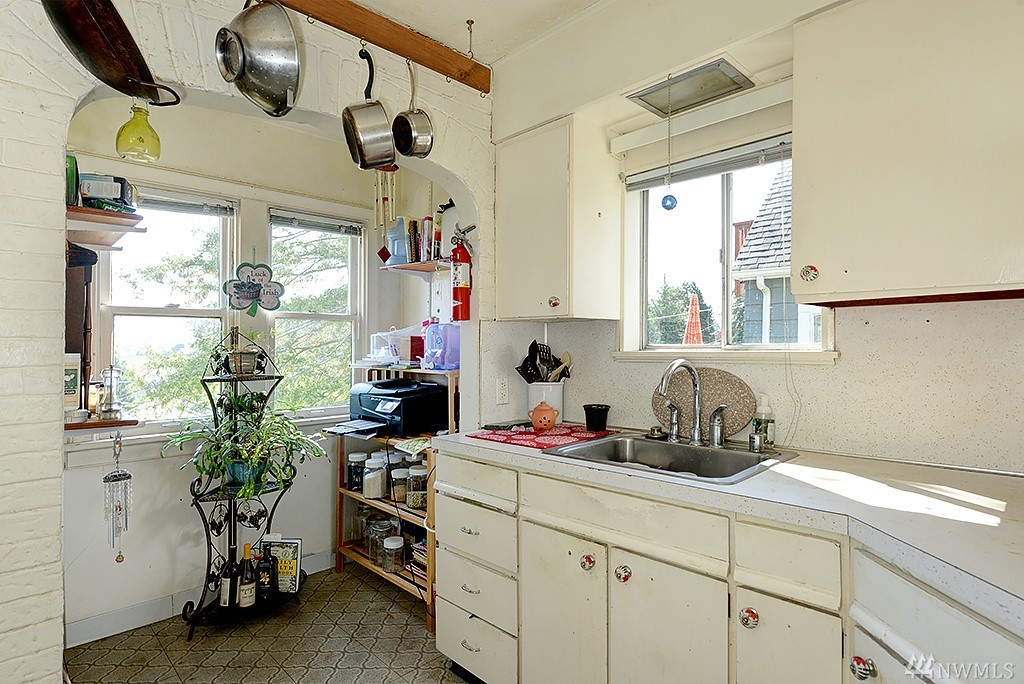 Opportunity knocks! Lots of potential to perk up this classic Tudor style home w/wonderful street appeal. A few projects are needed to breathe new life into this charmer. Lots of updates to electrical & plumbing, but needs sewer & foundation work. Remodel the kitchen for instant equity. Gorgeous cathedral ceiling bedroom upstairs. Formal living room w/fireplace & large formal dining room. Cute, lower level apartment w/bed/bath & 2nd kitchen. Large fenced yard & close to transit! Cash/rehab loan.