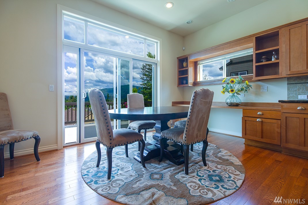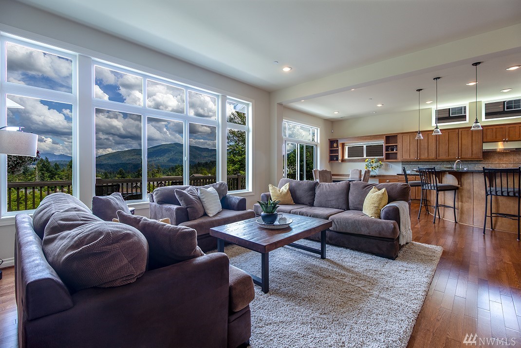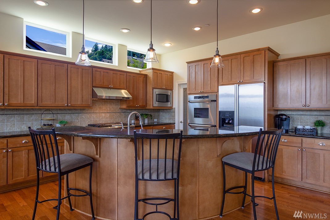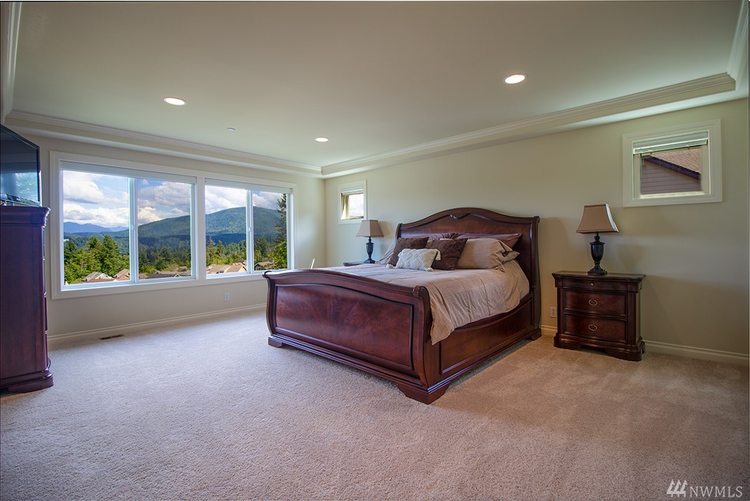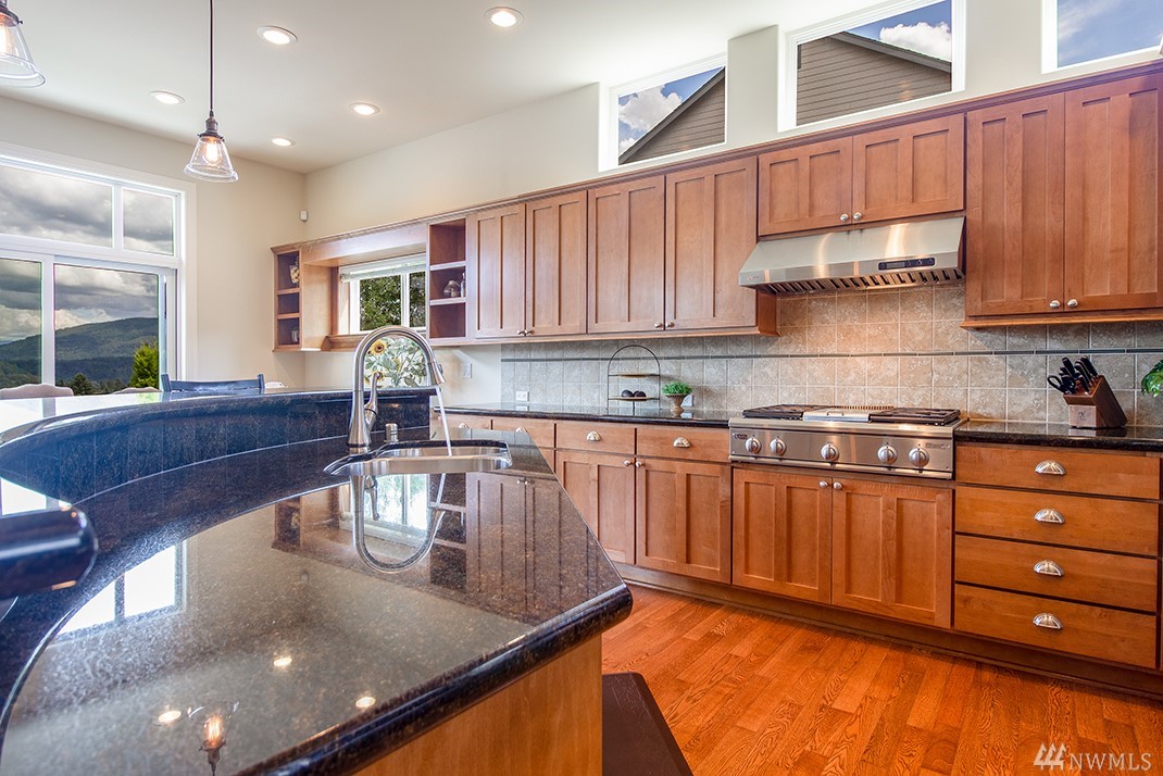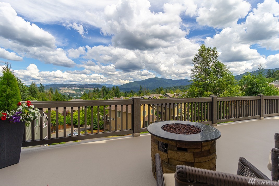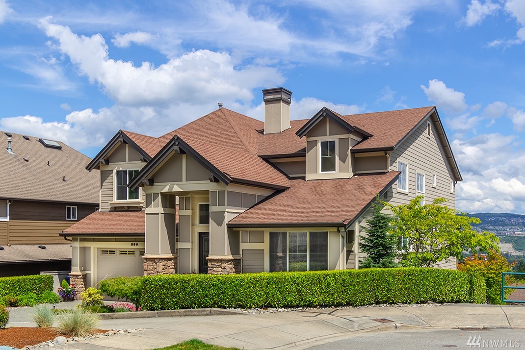 Exceptional home located at end of street & corner lot. Views of Cascades Tiger Mnts. Stunning NW contemporary has open flr plan & timeless appeal. Spaces for leisure living as well as rms for special events. Great Rm, 4 bedrms & bonus rm up, den, family room, theater rm, extra multi[purpose rm., view deck, Quality & craftsmanship apparent throughout. Extensive hardwds, new carpeting, granite counters, built-in-bookcases 3 car garage, lots of storage. Easy access to I90 to Bellevue & Seattle.