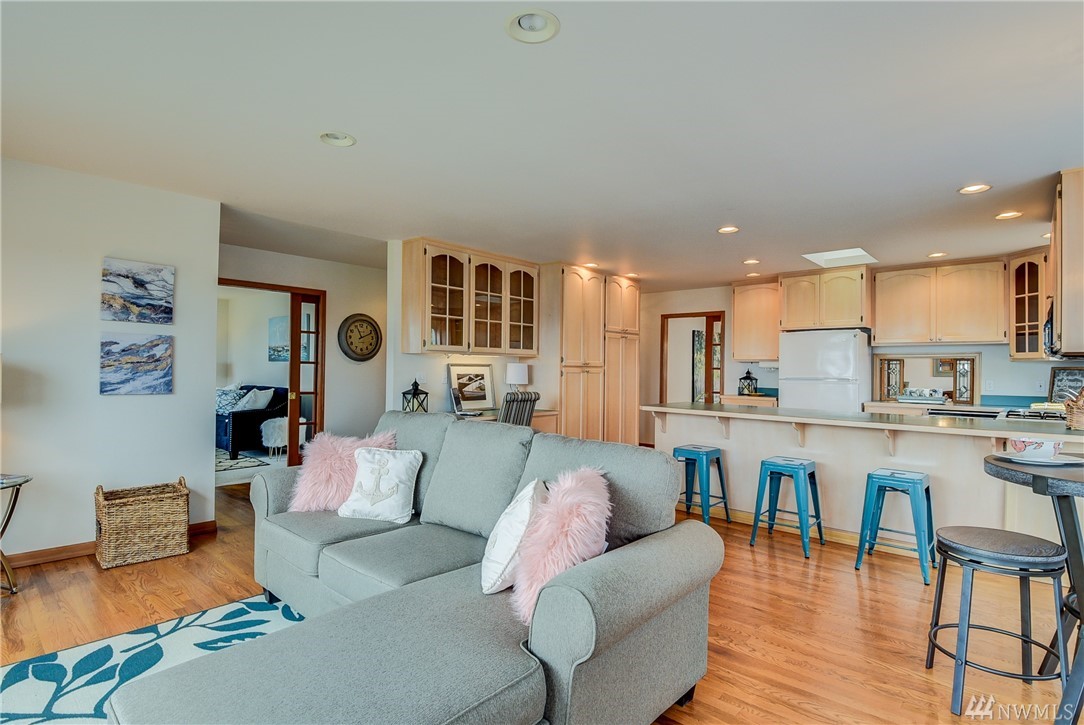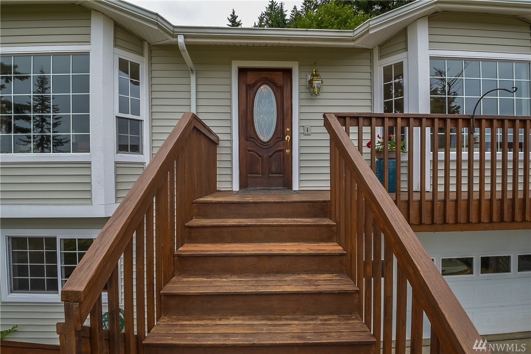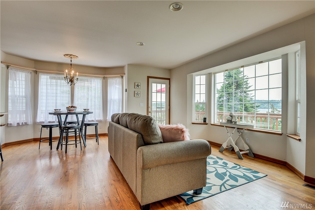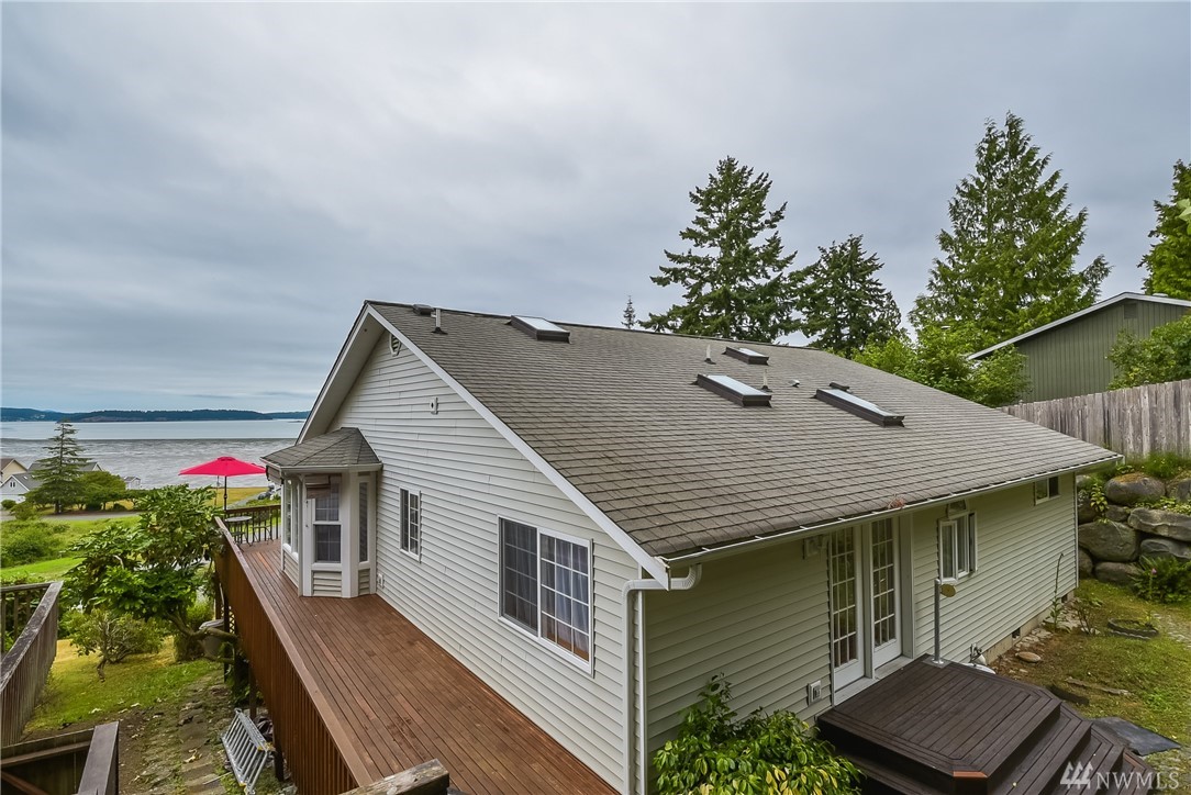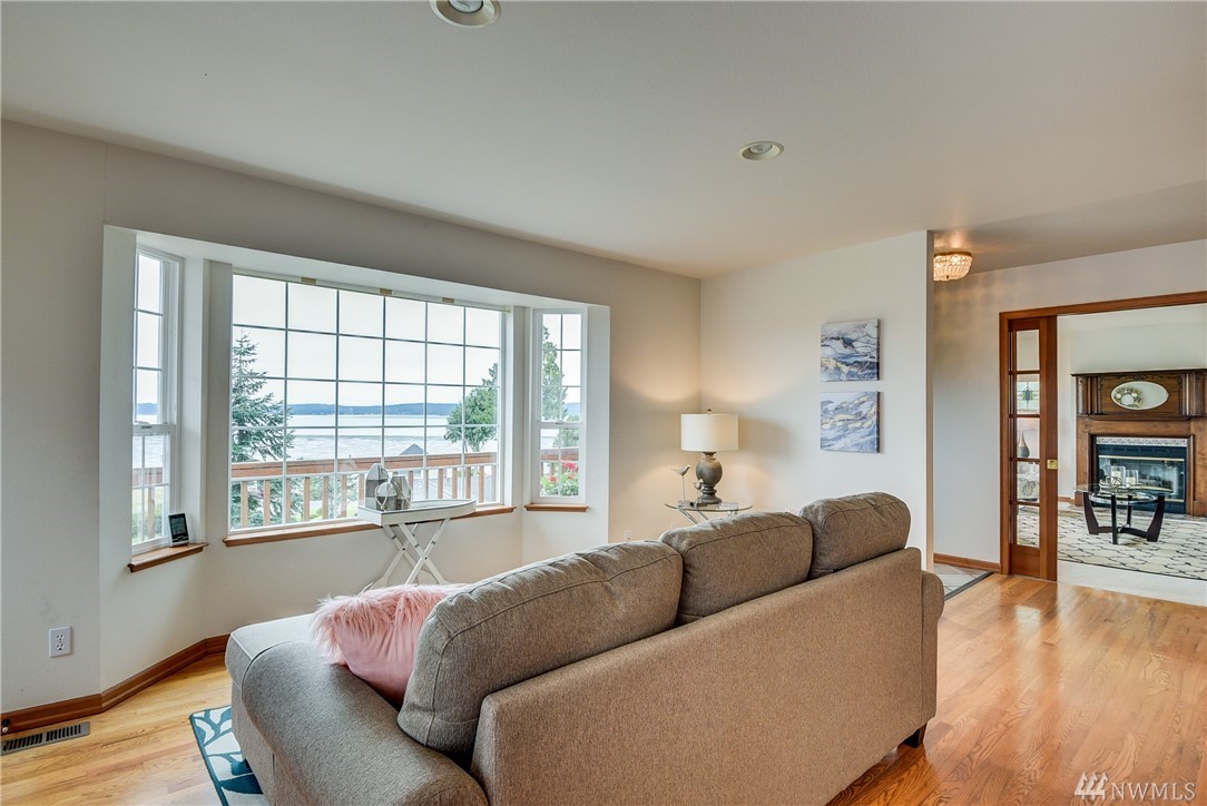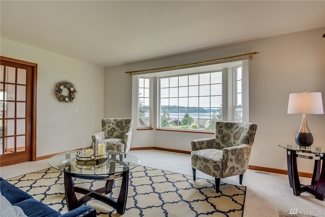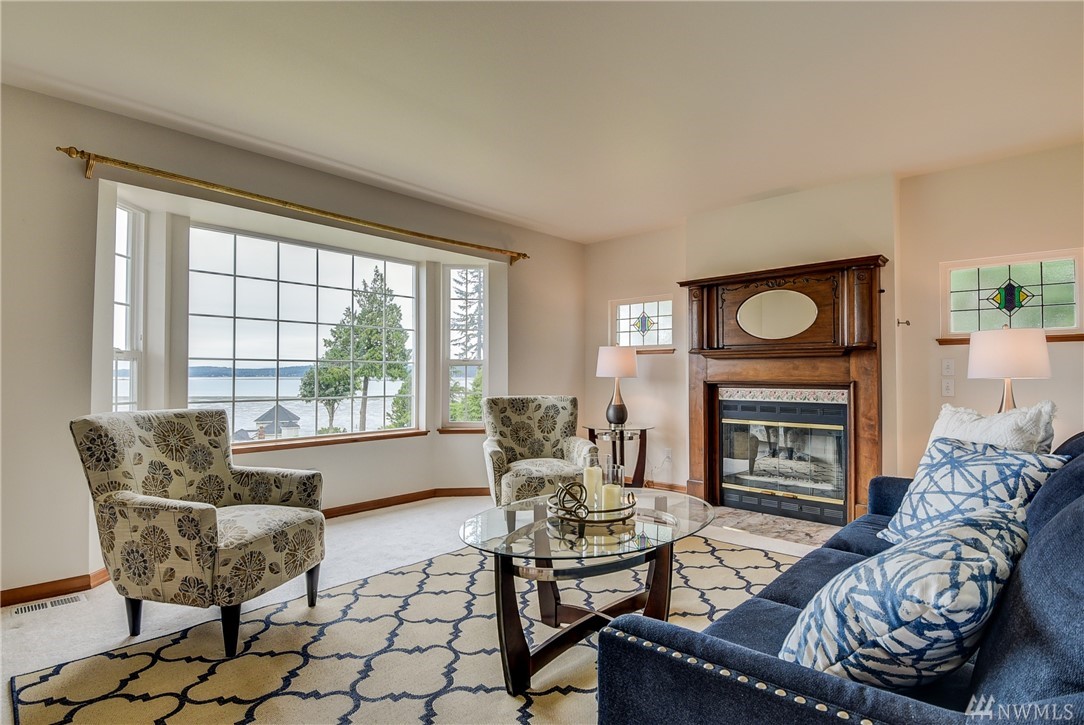 Breathtaking views go on forever from this home elevated on the hillside above Dugualla Bay. Sit by your living room or den fireplace while watching eagles soar over Skagit Bay with the Cascade Mountains in the distance. Relax in the large country kitchen while enjoying magnificent sunrises & sunsets. Sip coffee on your deck overlooking the bay. Walk to the nearby community beachfront for a stroll or a morning kayak run. A spacious home with generous size rooms ready for a modernizing touch!