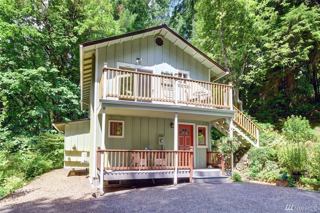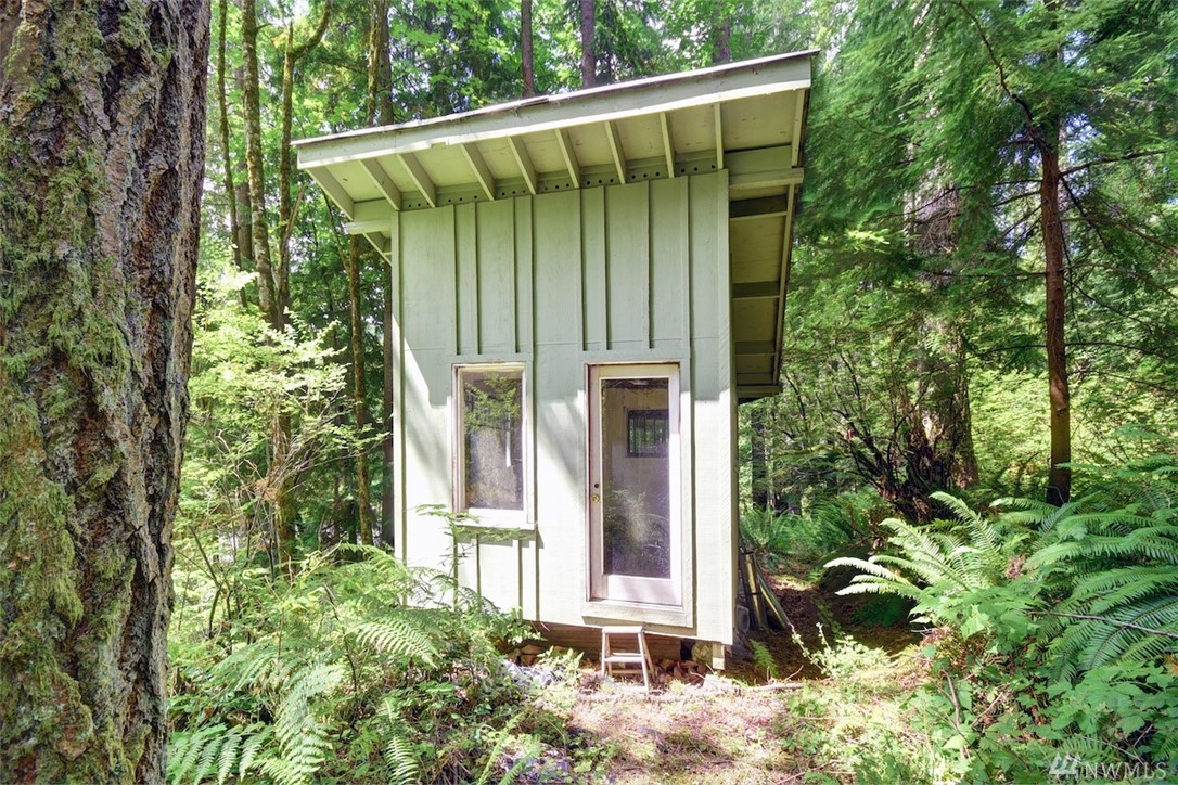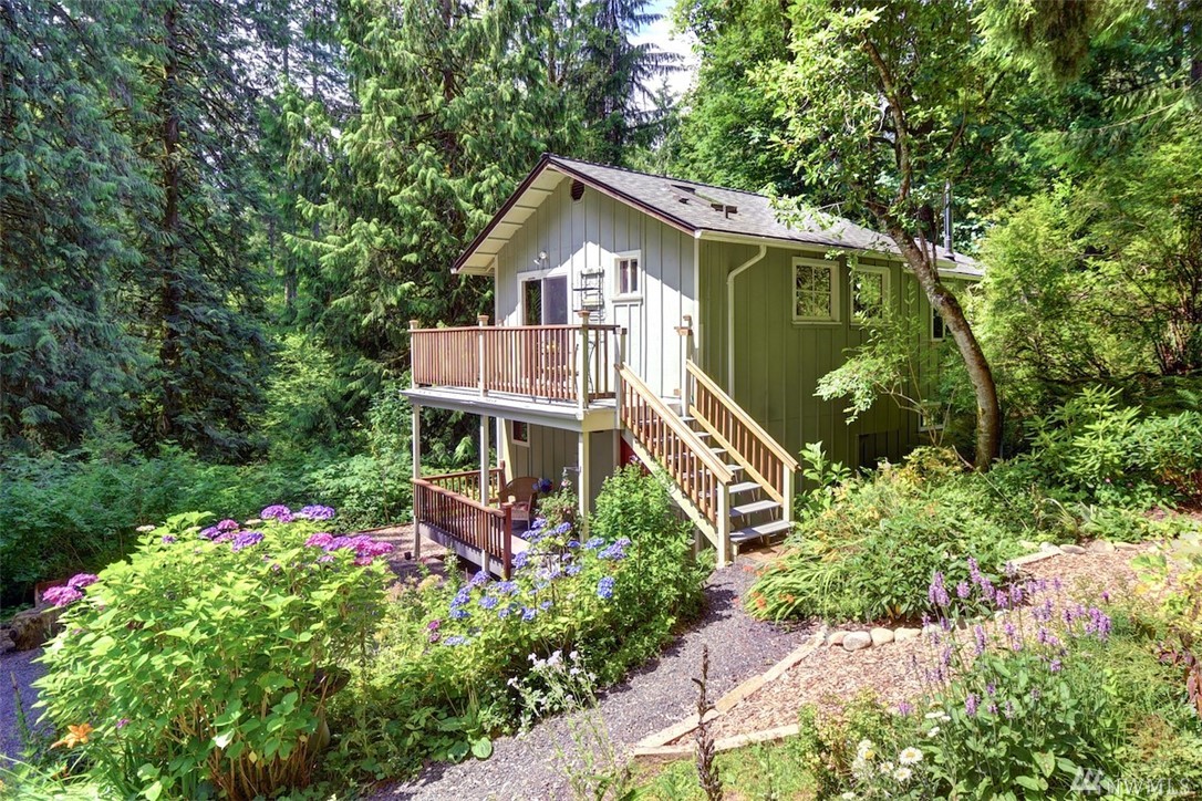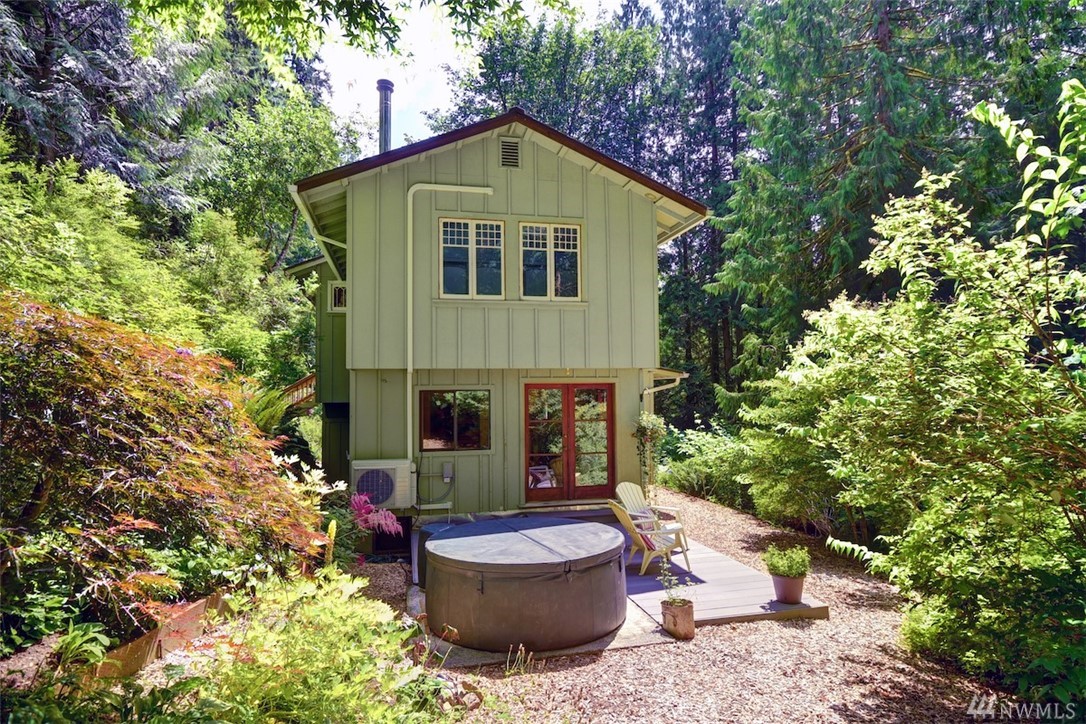 Your very own wilderness retreat in a storybook home on 2.42 acres. A private road leads to solitude with trees and gardens all around. Newer hardwoods and roof. Window casings and moldings are hand-crafted, one of a kind. Views into the trees from every window. You can sit on either of two composite decks in the front or relax on the back patio that has a hot tub as well--with not a soul in sight. Outbuildings for your tools and projects. You won't find another place like this. Come to relax.