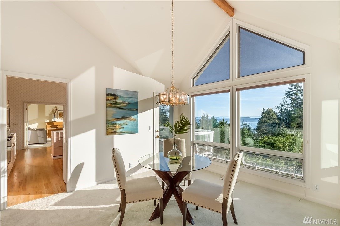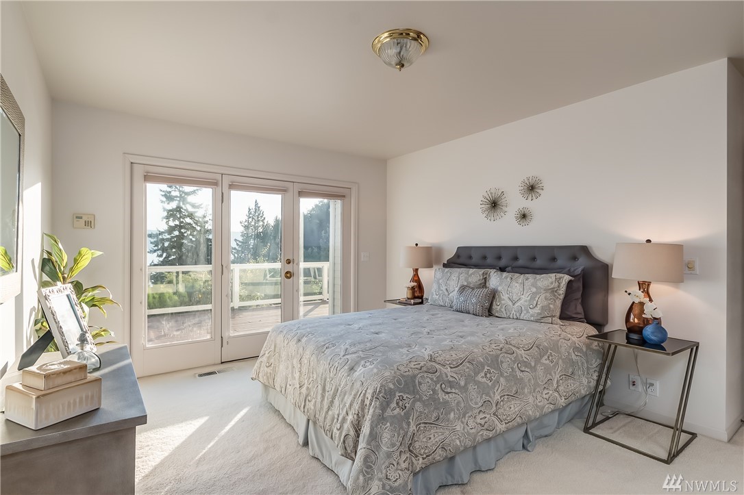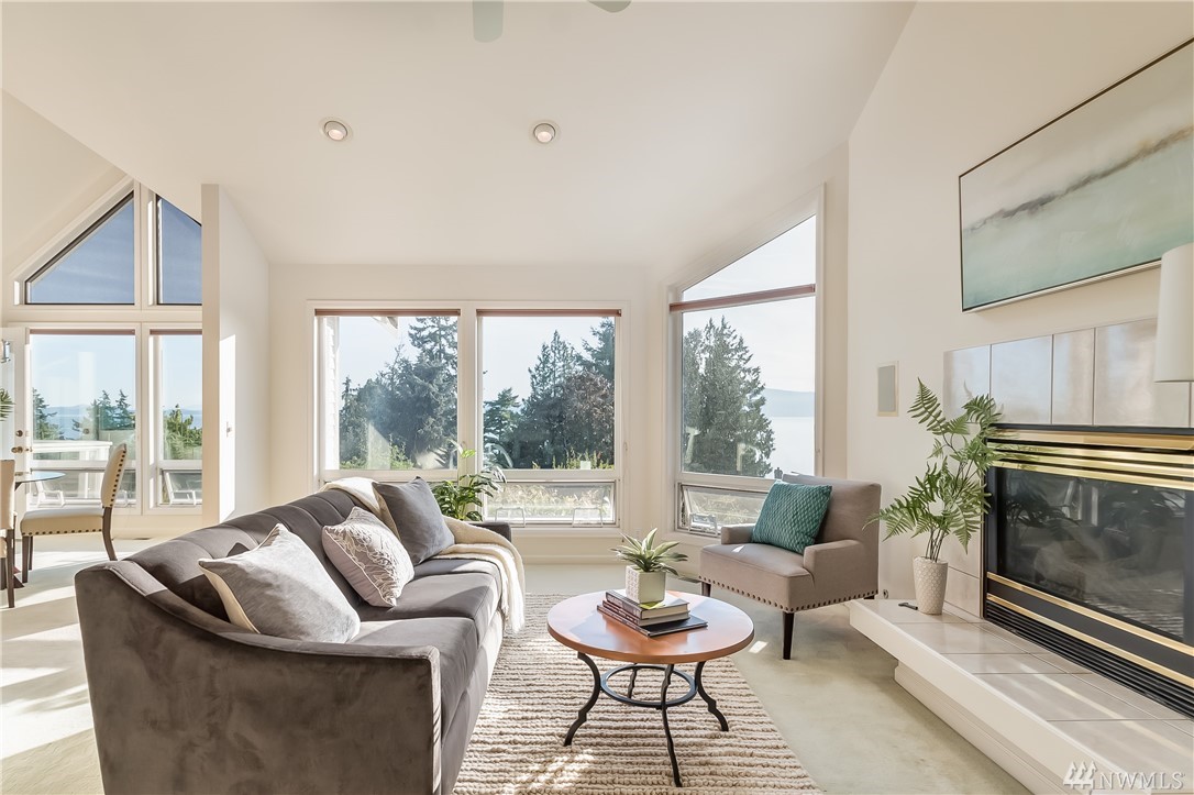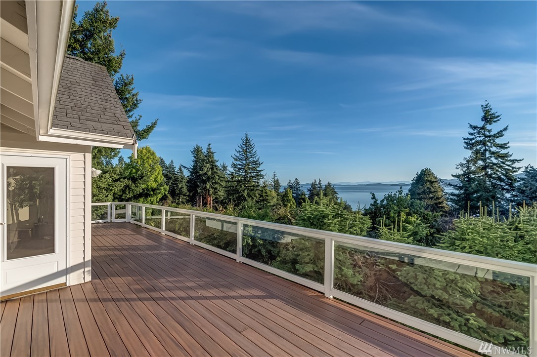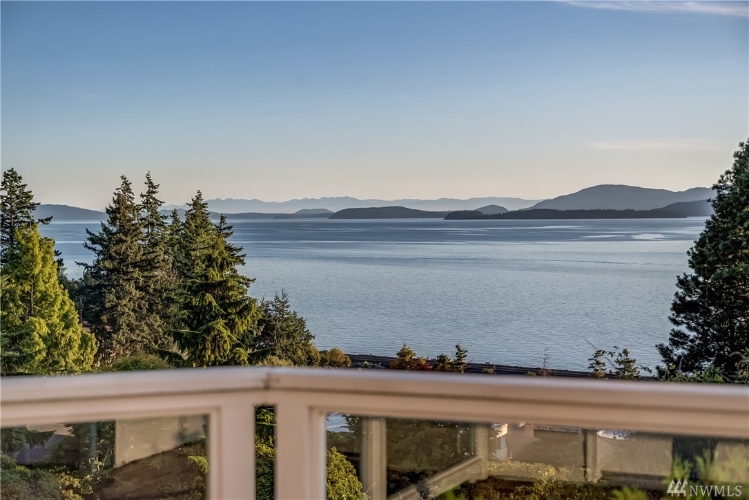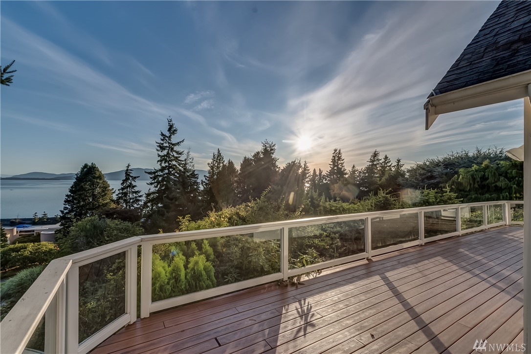 Stunning bay & island views from this contemporary home centered on a prime Edgemoor lot. Main floor living is fully accessible, with expansive west-facing deck. Situated for privacy, with space above and below for gardens. Plus: partially finished lower level with nearly 1,000 square feet ready to finish -- more bedrooms, rec/media room, mother-in-law suite, or lots of dry storage -- you decide! Central vac; 2018 high-efficiency furnace; built-in security; vaulted ceilings; double garage.