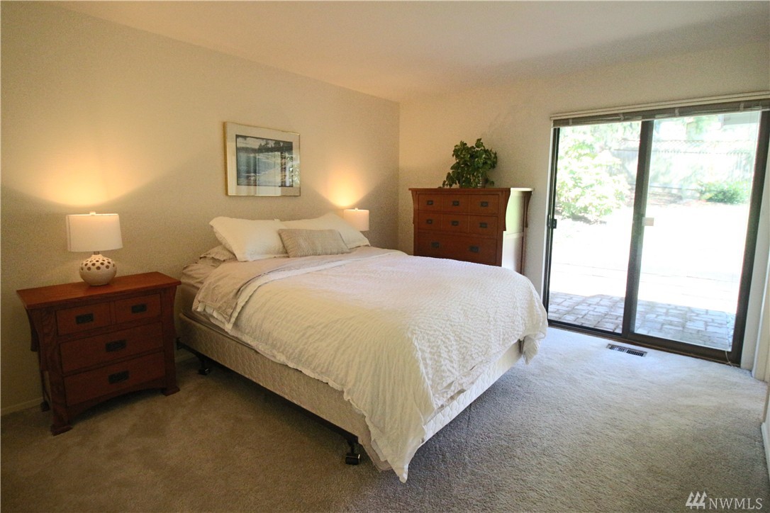 Easy, clean, comfortable living. This rambler has it all. Privacy! Quiet street-end location. Fenced yard, mature landscaping. Living room features fireplace & sliders to patio in beautiful & private fenced yard. Family room off kitchen w/sliders to 2nd patio & access to double car garage. Dining rm w/window wall facing gardens in back yard. Circular floor plan. Master suite, full bath & sliders to 3rd private patio. Freshly repainted interior. Brand new garage door opener. All appliances stay
