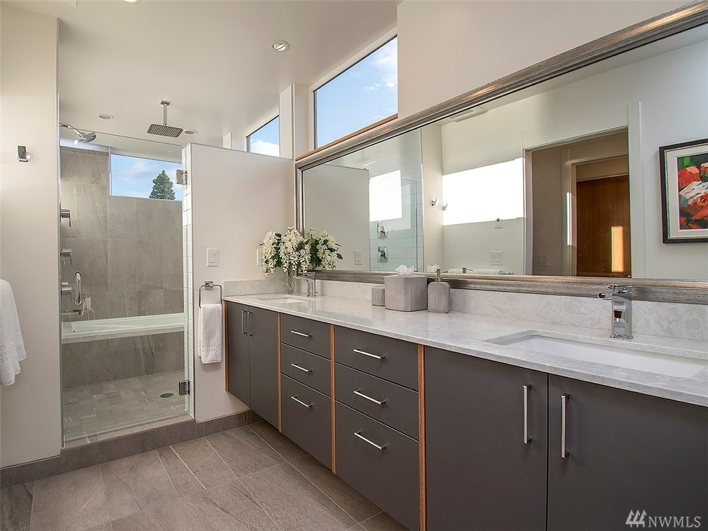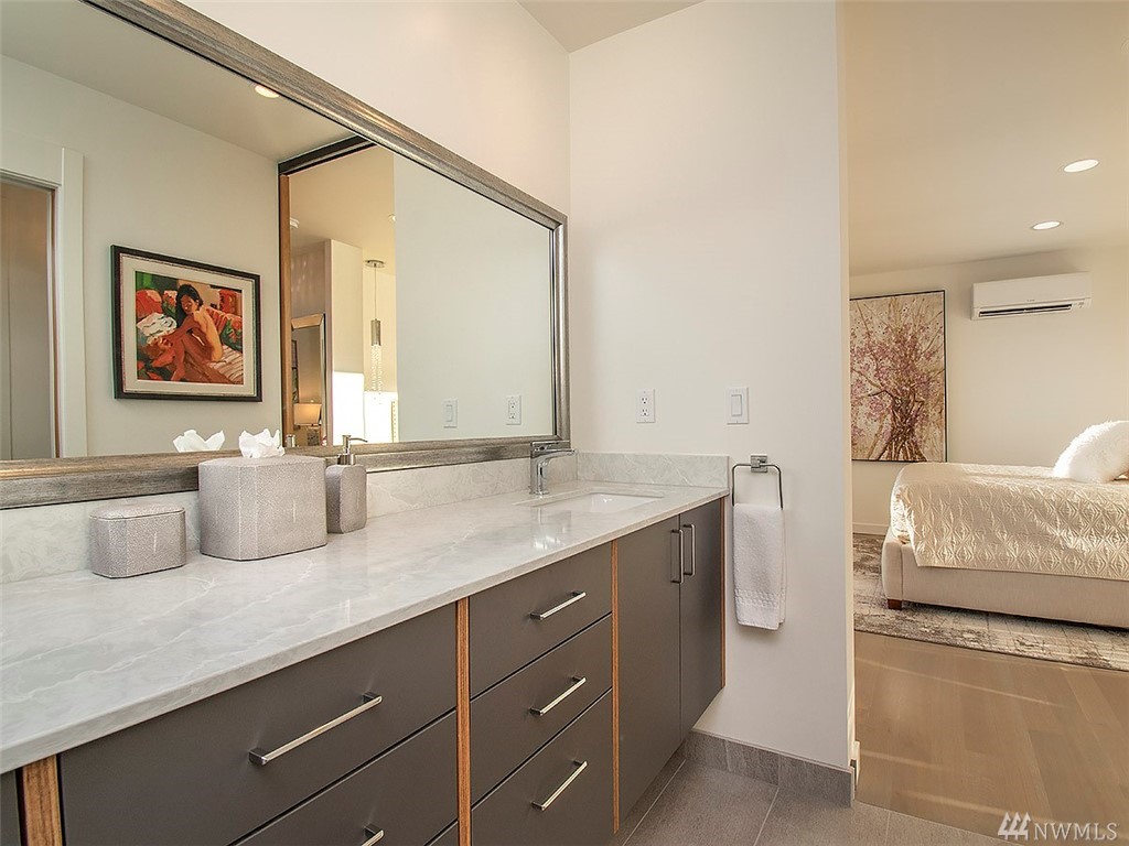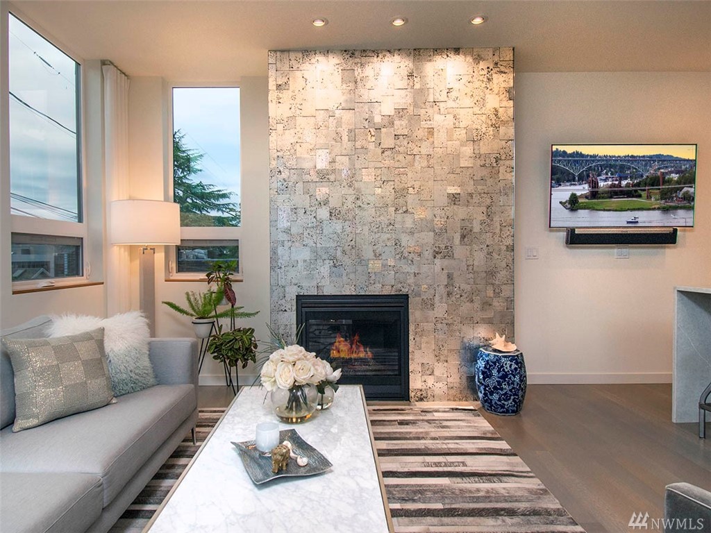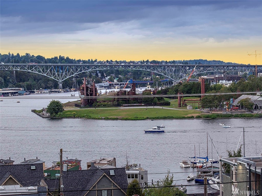 4-Star Built Green immaculate home. Upgrades galore! Amazing views of Lake Union, Gas Works Park, Queen Anne, Space Needle & sunsets from living room, master bedroom & rooftop deck. Designed for privacy & efficiency with smart: lights, shades, DHP heat/AC, cameras, GE Profile appliances & LG W/D. Solid oak hardwood & tile floors. Gas fireplace with custom marble surround. California closet, upgraded plumbing & lighting fixtures, motion sensor LED lights & finished garage with storage. Must see!