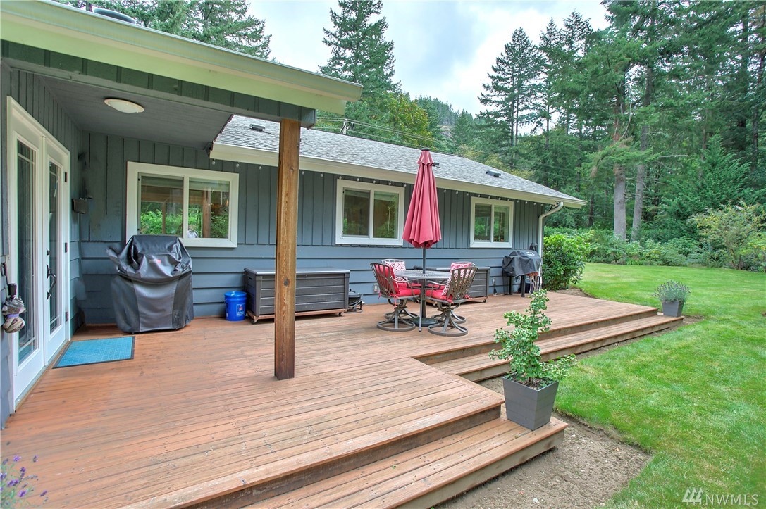 Adorable North Bend home at the foot of Mt Si. Warm and inviting 3 bedroom 1.75 bath on a peaceful 1/2 acre. In the short two years since purchasing this updated home the current seller has continued to upgrade. Remodeled guest & master bath, fresh interior paint, new LG stainless steel appliances, Lennox central A/C and gas furnace and hot water tank and new electrical panel. Enjoy the great outdoors with two decks and a heated & insulated shed, perfect for a workout room.