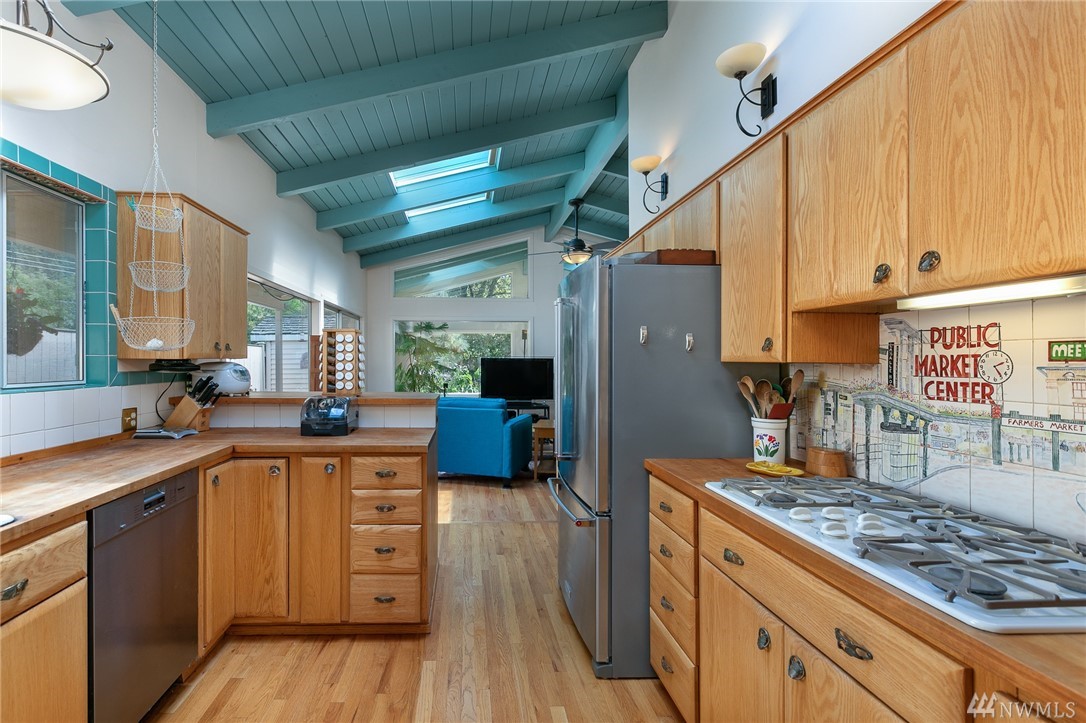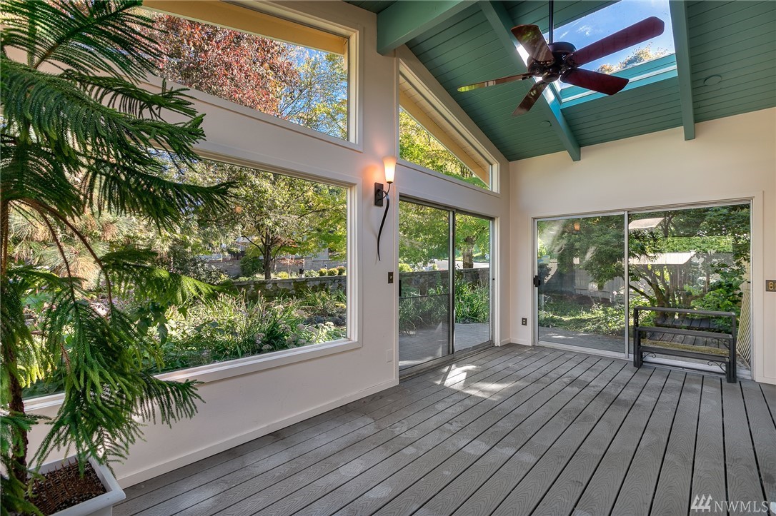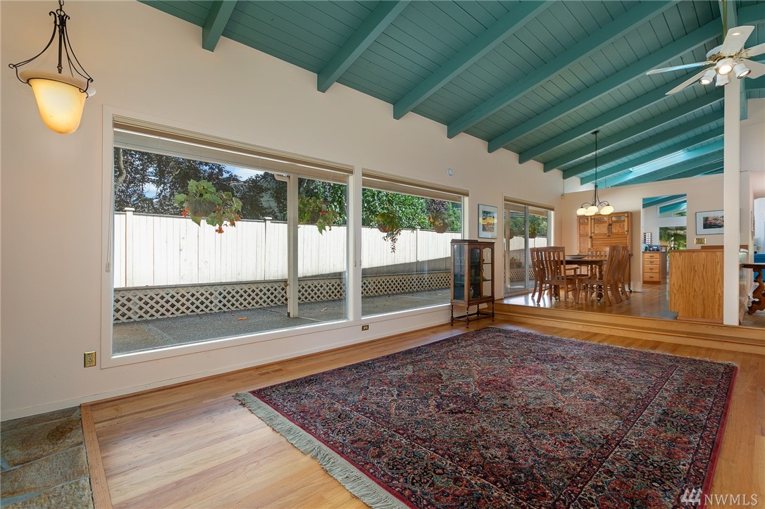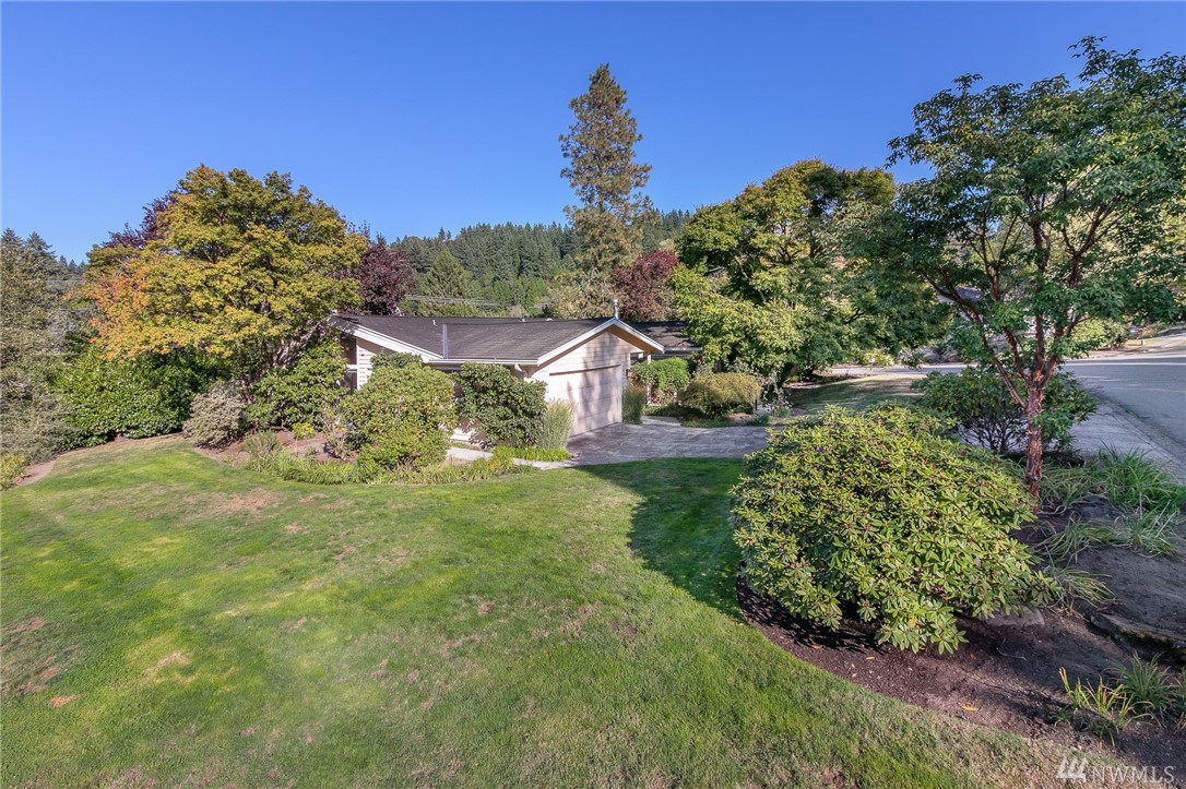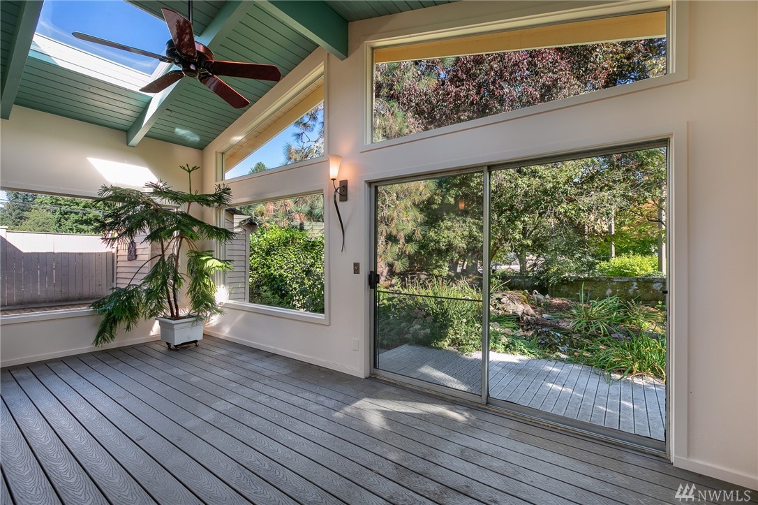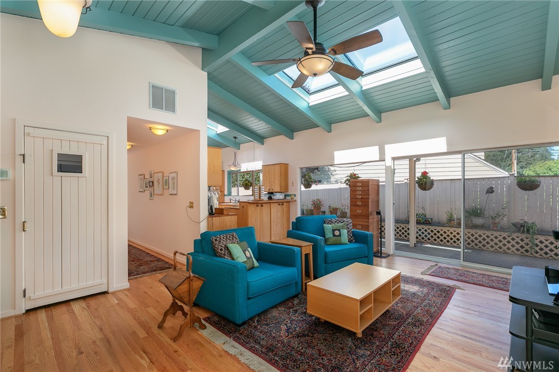 Spacious one story rambler in the beautiful Valhalla community of Bothell. Private and sunlit throughout with a water feature and pond that's home to low maintenance nature-fed goldfish. This 3 bedroom, 2 bath home features beautiful open concept living spaces, newer hardwood floors, skylights, vaulted ceilings, a 2006 50 year roof with warranty, newer water heater, upgraded washer and dryer, an expansive sunroom and outdoor patio space and landscaping on a corner lot. This home is a must see!