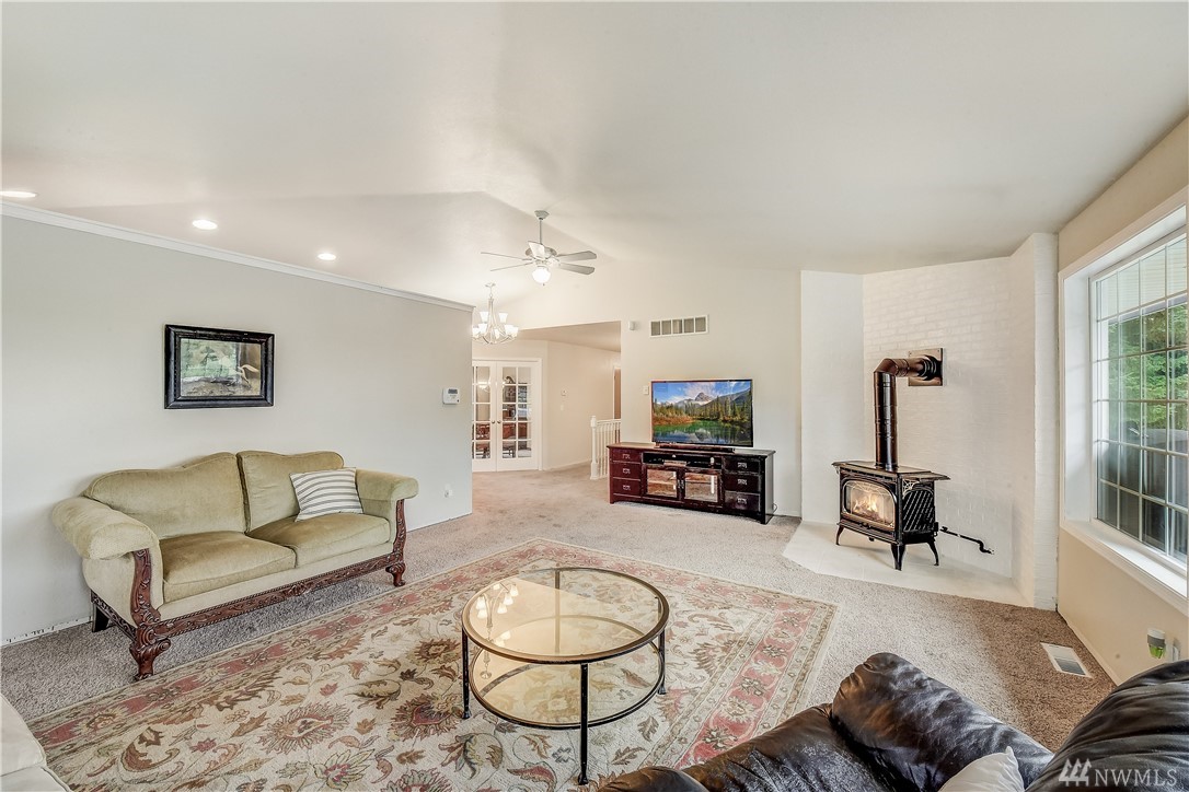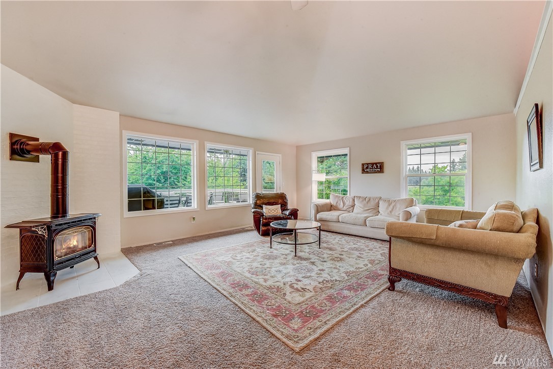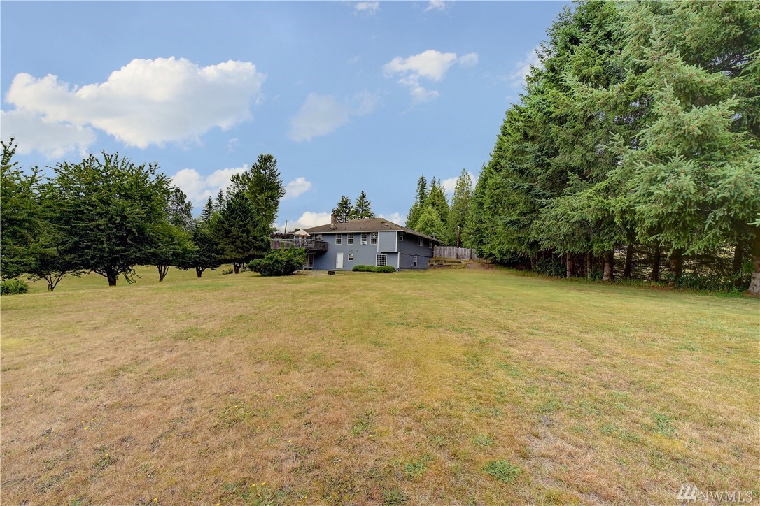 Motivated Seller - PRICED TO SELL - Bring your updating ideas, 5 Bed 2.75 bath Home on 5 acres. Wonderful Light Filled main level w/vaulted ceilings & french doors into the dining room, Nice kitchen with eating area. Living room opens to the entertainment deck overlooking the beautiful yard. Master Bedroom with attached bath & walk in closet on main floor. Large Bonus Room downstairs & MIL potential with separate entrance, wetbar, 3 bedrooms, Family/Entertainment room & full bath.