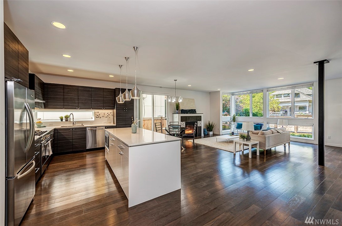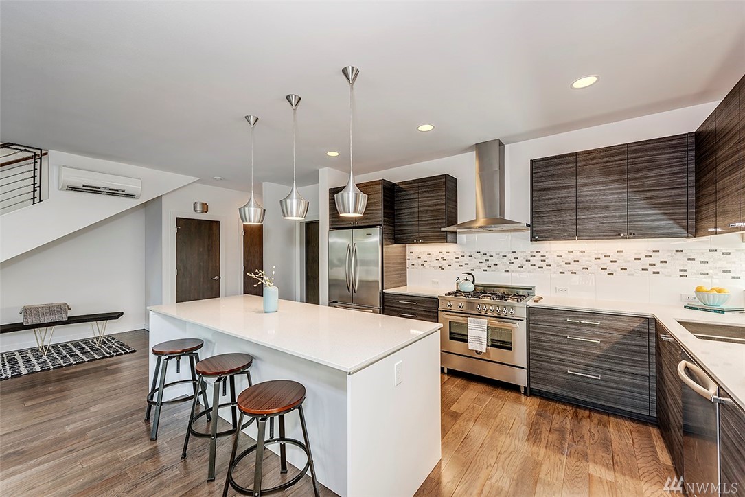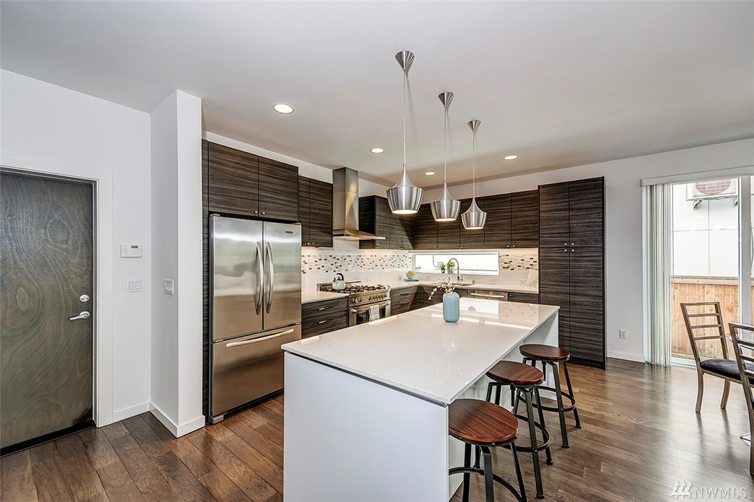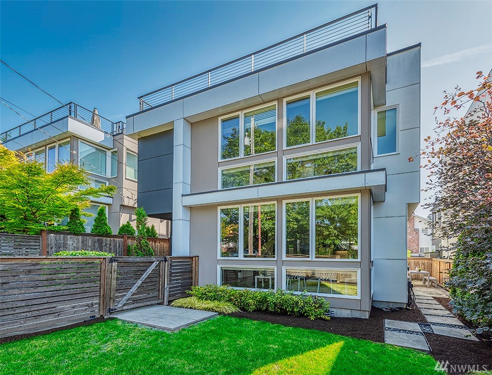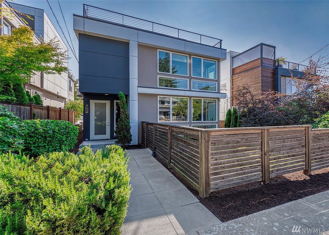 Wonderful 2014 modern home by coveted Isola Homes. Great Ballard location and popular neighborhood, nearby Salmon Bay Park. Bright open spaces with tons of windows, innovative and sustainable design, with hardwood floors, quartz counter tops & kitchen/great-room concept. Loft/study, three bedrms, two baths upstairs, spacious master and contemporary details. Terrific media/entertainment area on third level with large rooftop deck. Two car garage and cute yard. Easy commute to DT Seattle and SLU!
