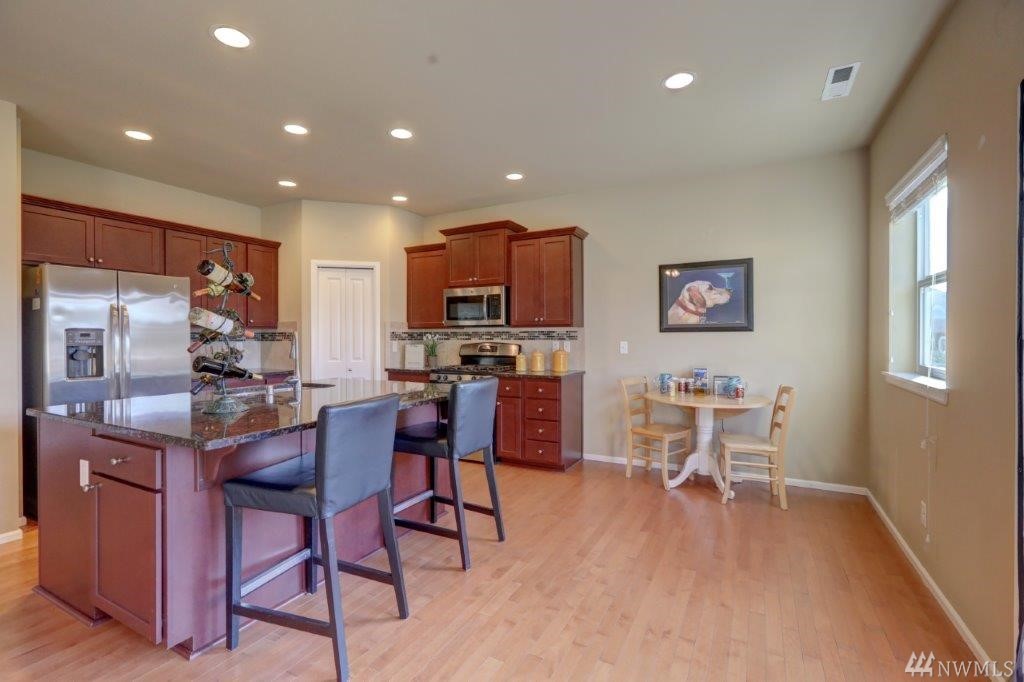 This fabulous home features large, open kitchen with granite counters & stainless steel appliances. Real hardwood in kitchen and dining room. Family room off kitchen with gas fireplace. Large dining room plus eating room in kitchen. Great for entertaining. 4 large bedroom upstairs, plus huge bonus room. Master with soaking tub, walk in closet & view of Mt Rainier. Large fenced yard. Close to schools and shopping and the Sounders train.