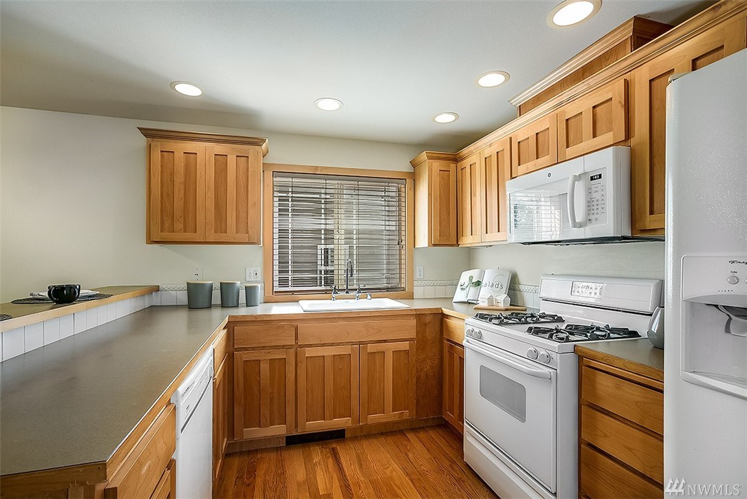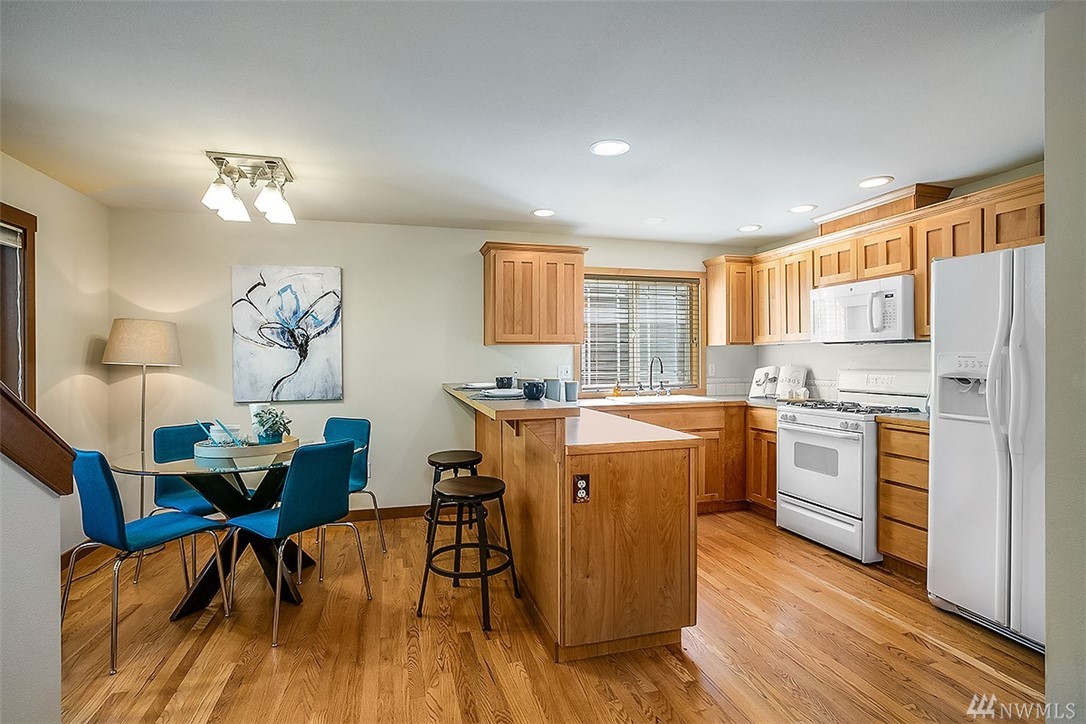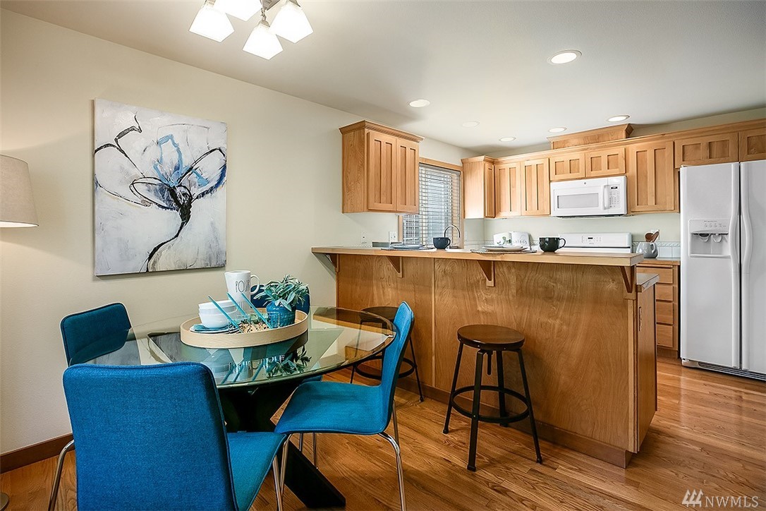 Superb townhouse in walkable Pinehurst. Bright spaces thru-out w/tile entry & hrdwds on main. Lg kitchen w/alder cabs, pantry & bar. Expansive dining & living rms w/wood millwork. Gas range, FP, furnace & newer water heater provide for ultimate efficiency. Laundry on top flr next to dual master suites. Lower level boasts 3rd BR w/tile flooring & 3/4 BA that leads to fenced yard. All 3 BR's have their own BA. No HOA dues. Garage w/room for storage. Close to Park N Ride, shopping, schools & parks.