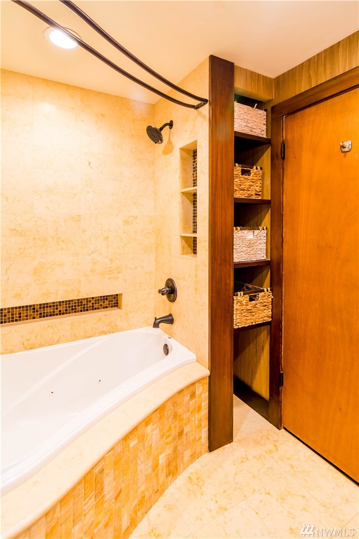 Discover this gorgeous oasis in the heart of Fircrest, with unique style & luxury touches throughout! Airy living room w/ stunning fireplace & vaulted ceiling flows into a well-equipped kitchen. French doors in dining rm & bedroom open to the expansive Trex deck, where you can savor the lush landscaping. Enjoy heated flooring in bathrooms & a 2person jetted tub! Recent Gaco 50yr roof material, vinyl windows, wool carpets, refin hardwood - updates galore, this mid-century gem is waiting for you!