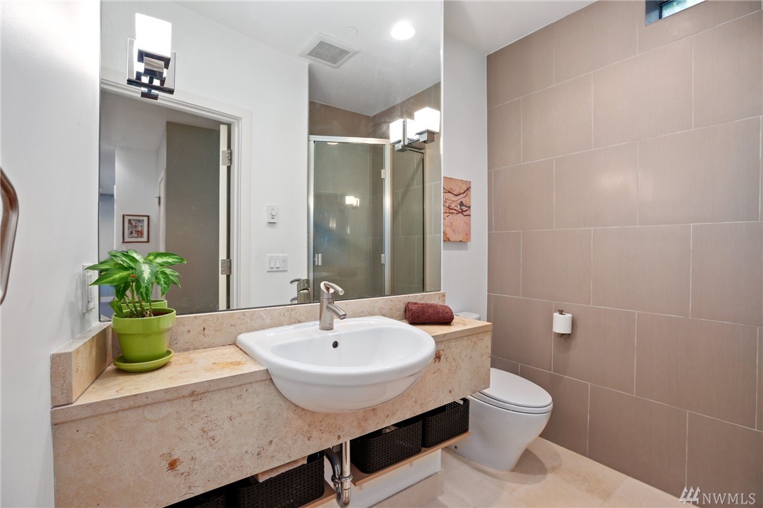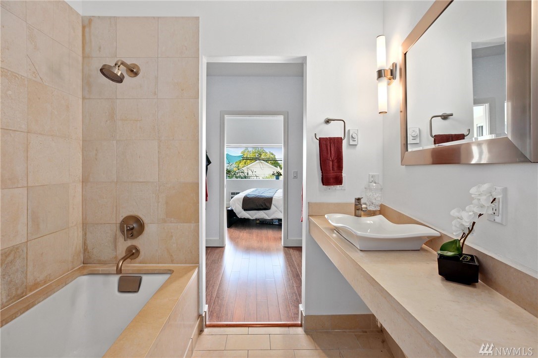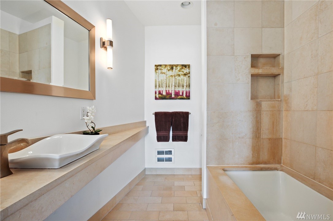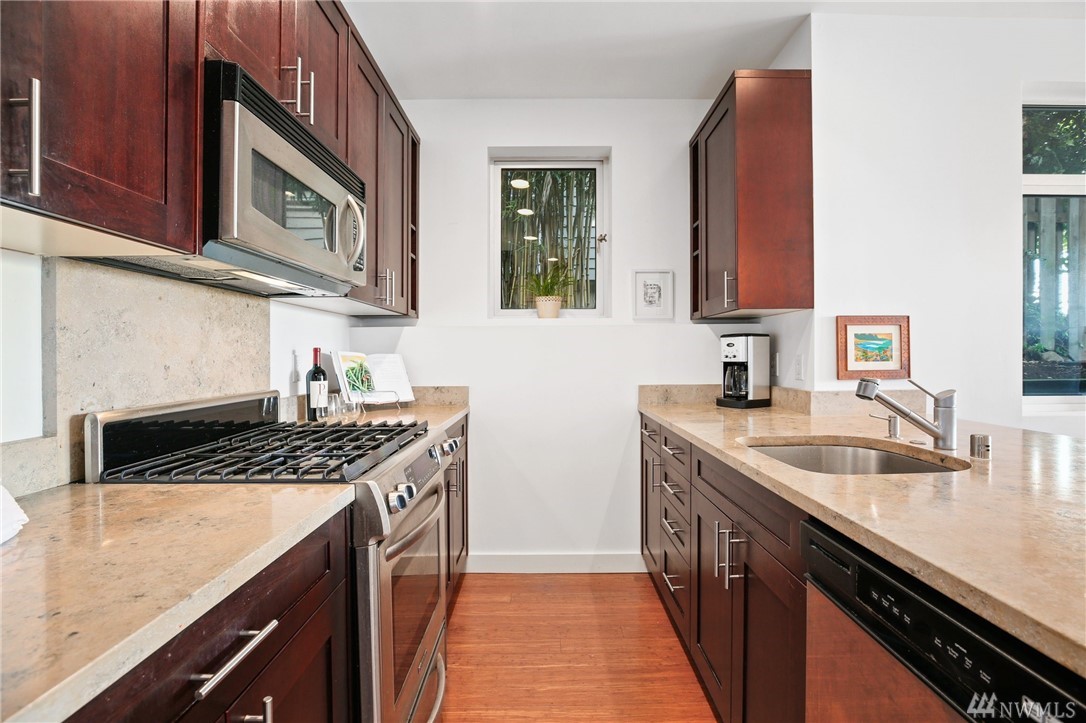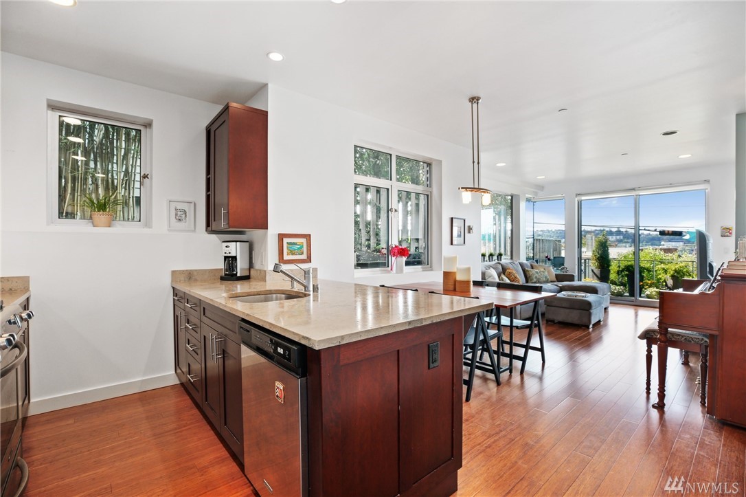 Modern boutique condo located in the heart of Eastlake. A+ location, easy commute to South Lake Union or Downtown! 78 Walk Score & 65 Transit. Spacious open floor plan w/ kitchen, living & dining opening to expansive 300+ sqft outdoor deck perfect for relaxing, entertaining, watching the 4th fireworks & flooded w/ western light. Master suite w/ walk thru closet leads to relaxing bath w/ soaking tub. Secure common garage w/ 1 car parking, storage & elevator access. Strong HOA. MOVE IN READY!