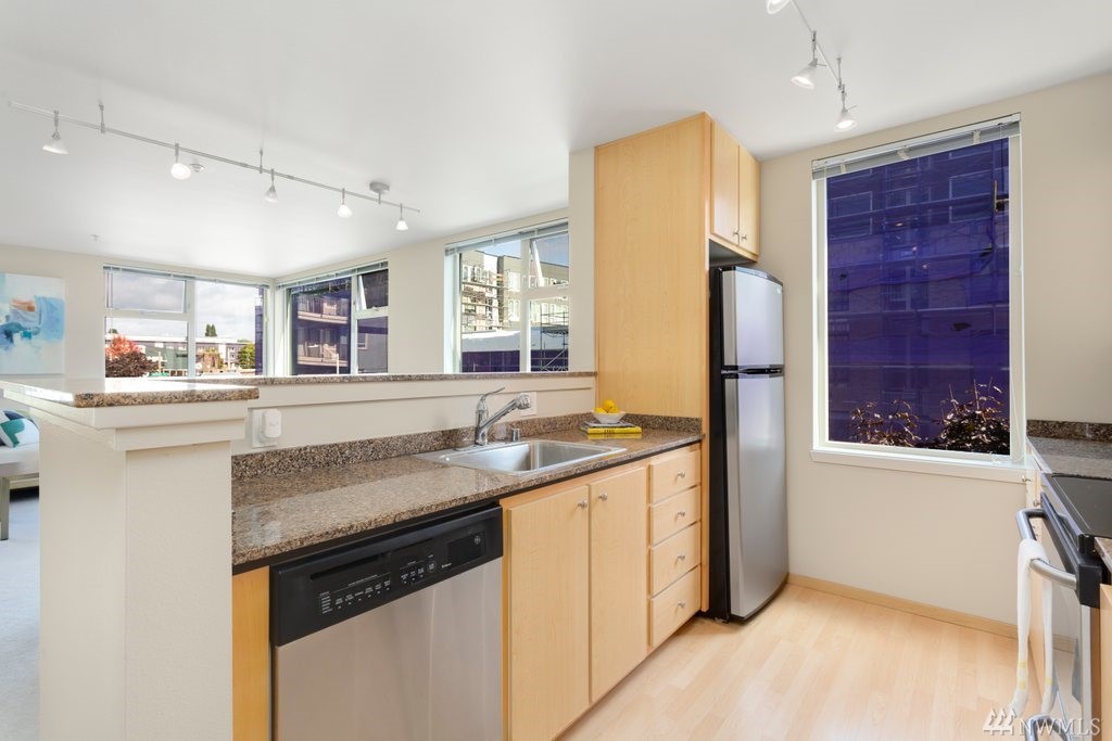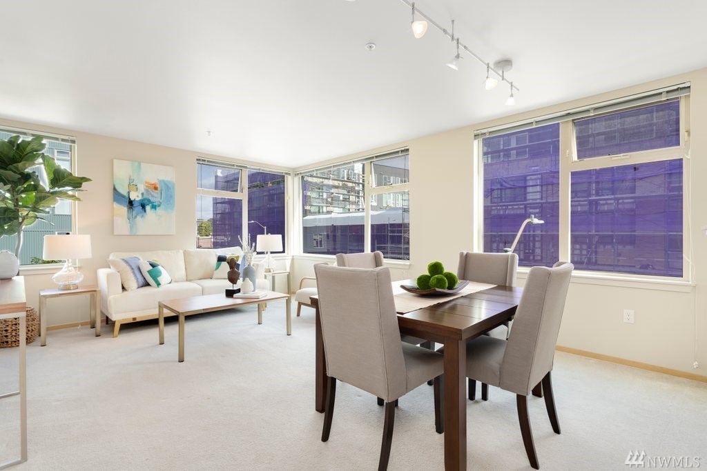 Corner unit, 2 bedroom condo in the heart of the Central District. Open kitchen w/ stainless steel appliances & granite countertops. The living & dining area are drenched in light from the large NE facing windows. Master bedroom has a walk in closet & an en suite bath. The Welch Plaza has a secure entrance, 1 designated parking spot, workout room & locked package delivery. Across from Vulcan's 23rd & Jackson Dev - mixed use. Easy commute to downtown or Eastside. No rental cap & great investment.