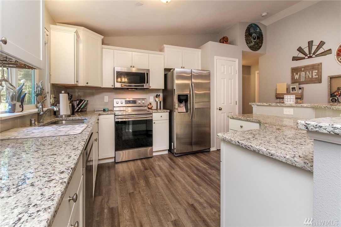 Immaculate rambler built in 2018 on an acre of land! Gorgeous home w/vaulted ceilings, open floor plan & 2 car garage. Spacious kitchen w/granite, white cabinets, stainless appliances, eating bar & pantry. 3 bedrooms, master w/en suite bath & walk-in closet. Vinyl plank floors, skylights & full laundry room. Efficient ductless mini-split for heating & A/C. Covered patio & large yard for entertaining. Parking for RV/toys, plenty of room for a huge shop! Home warranties transfer!
