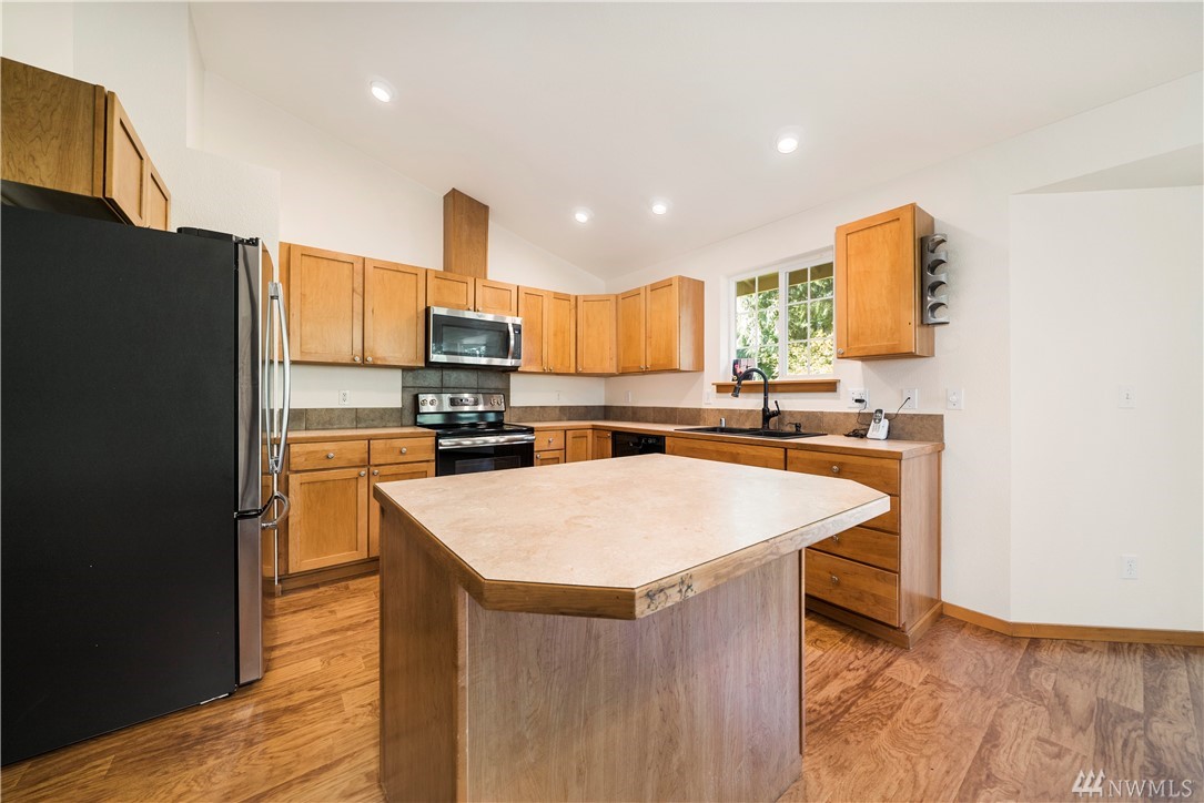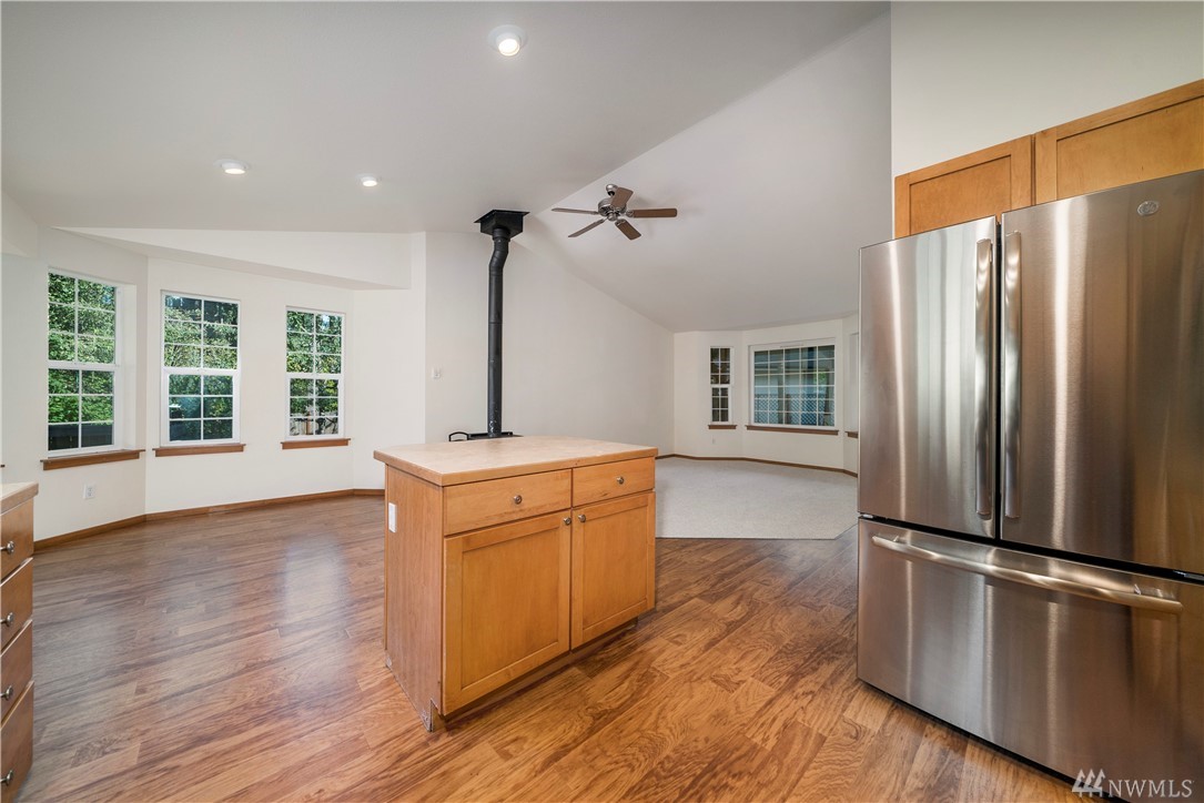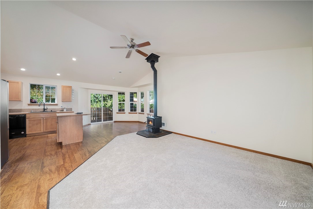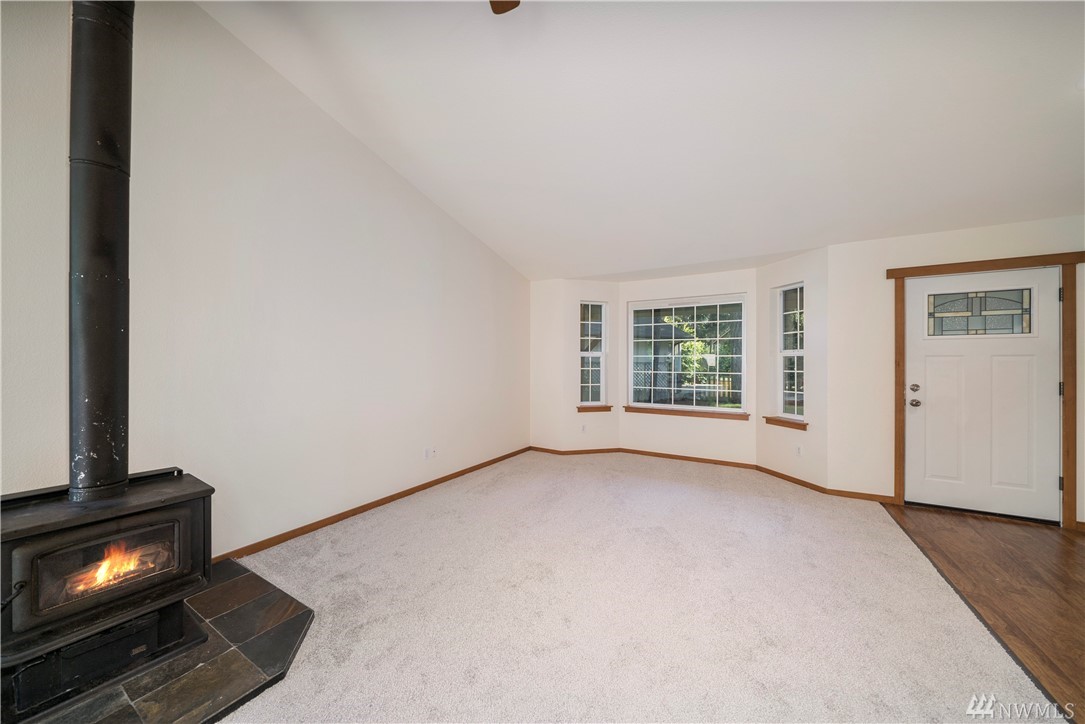 With peek-a-boo views of the lake, come home to your 3 bedroom rambler and enjoy lake life in the beautiful gated Clearwood Community. All new carpet, front door, interior paint and appliances! Warm yourself by the wood burning stove on those cold winter nights. Outside hot water on side of garage. Community features include multiple lakes, parks, basketball/tennis courts, boat launches and community pool. The trail behind the house leads right to beach. Excellent condition and easy to finance.