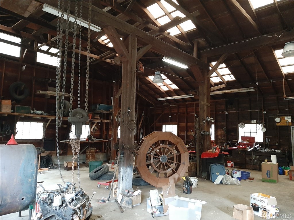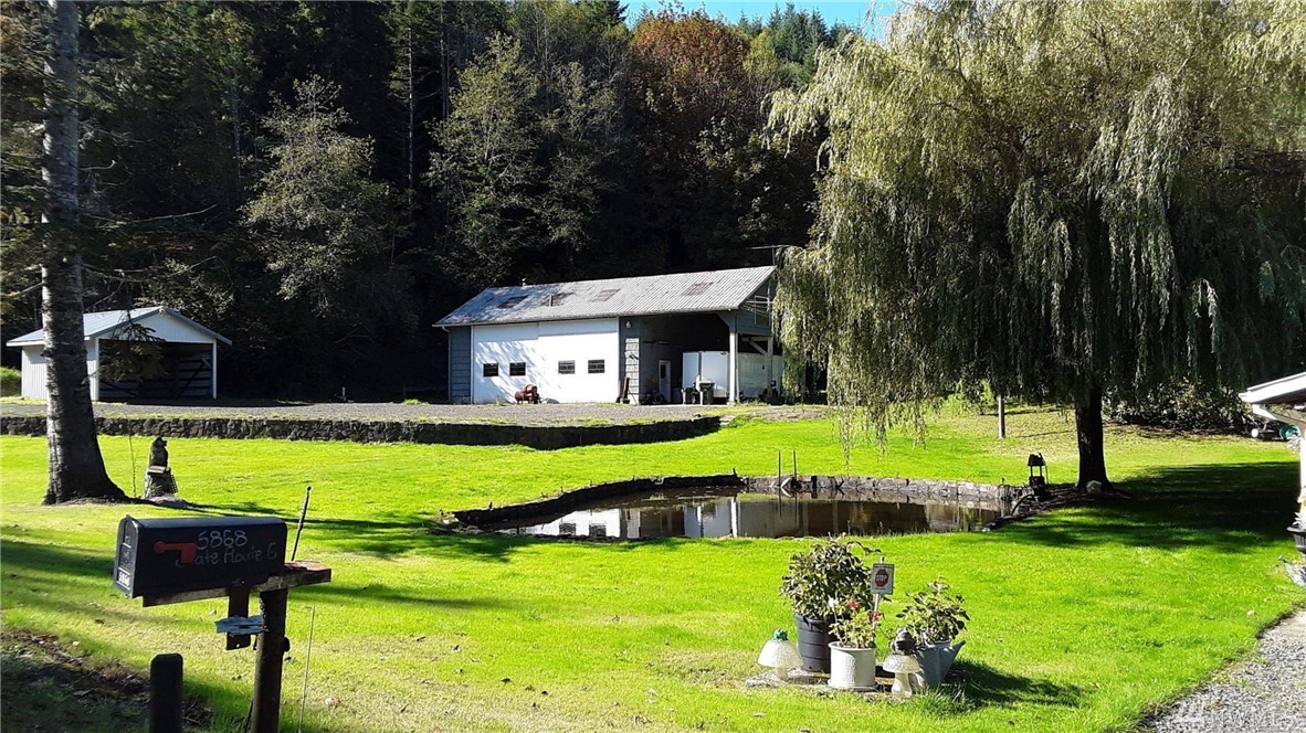AMAZING! 1600 sf SHOP w/16' bay doors, overhead crane, 220 outlets, industrial lighting, skylights, wood stove and attached semi carport. Older but lovely move in ready home, basement can work for separate living facility w/patio, 2 new ductless HP upper & lower, full attic access, 2 car carport, over sized single car garage, attached 2 car carport, 4 bed septic installed 2017, electric panel equipped for generator. Separate 192 sf hot tub room w/covered patio, Pond w/fish, apple & cherry trees