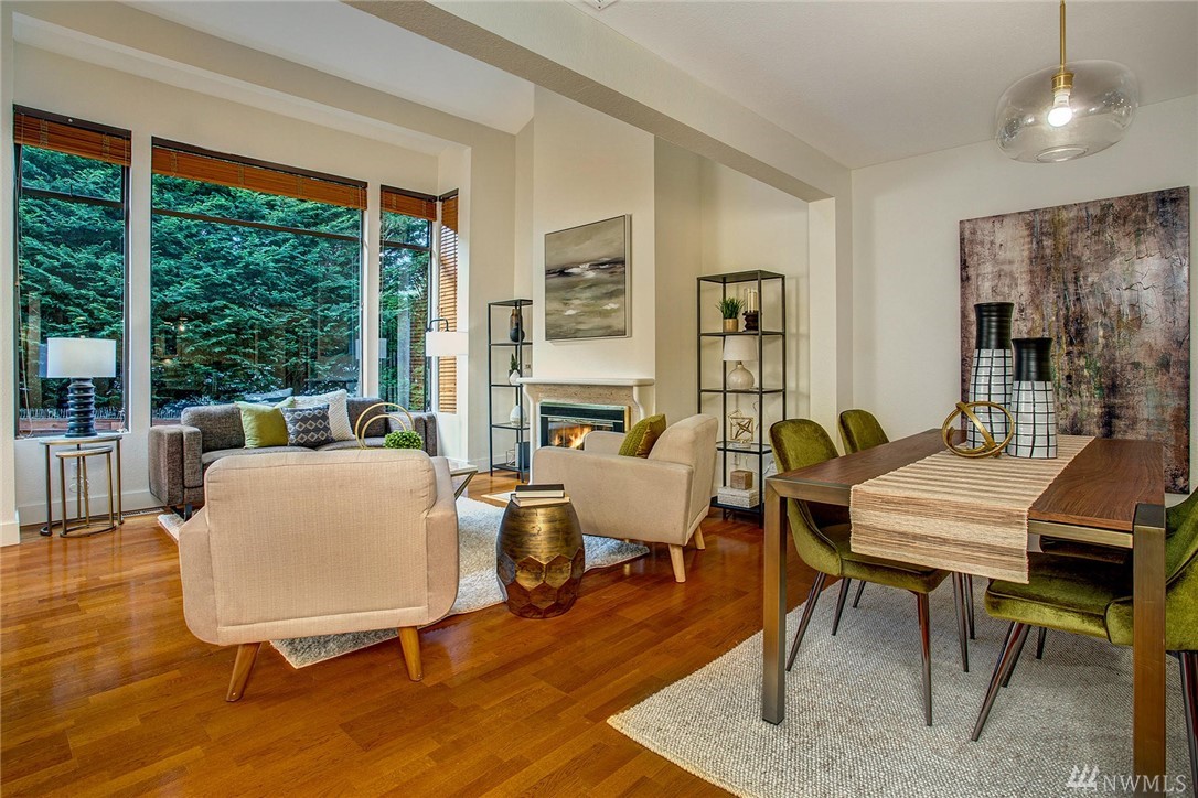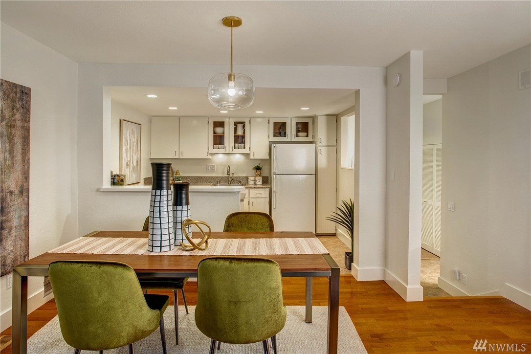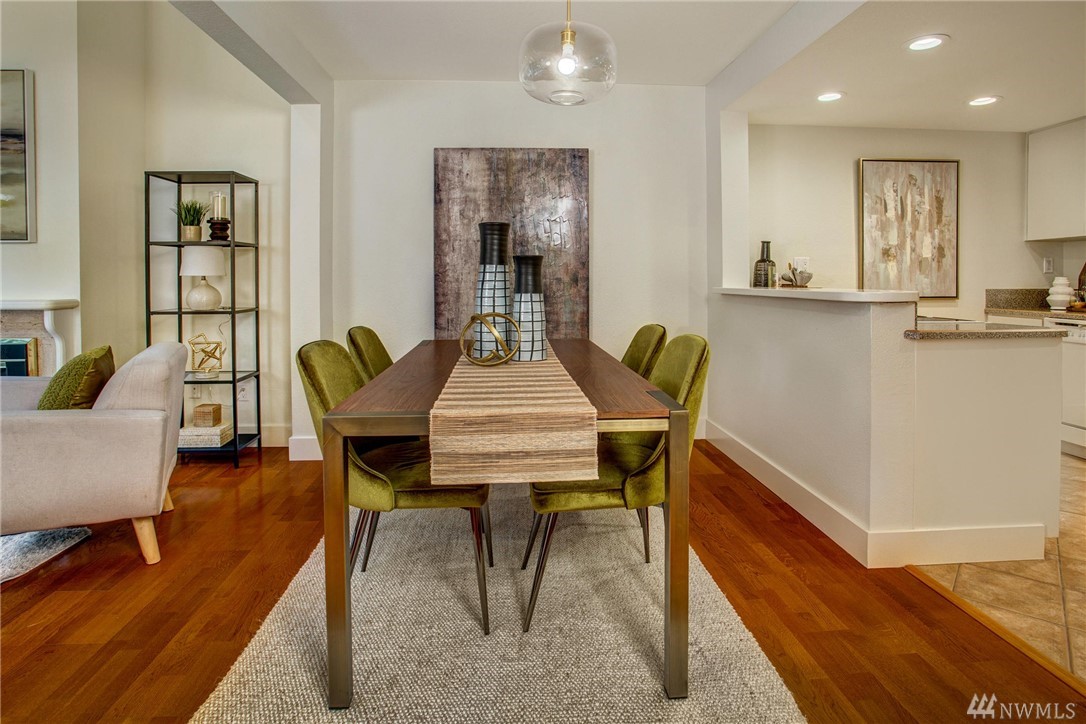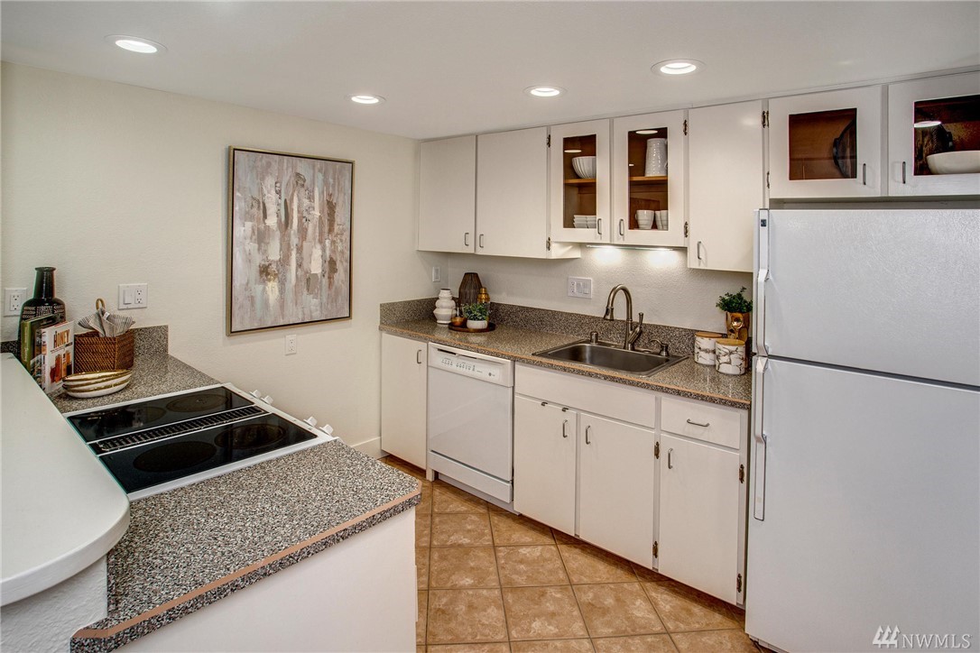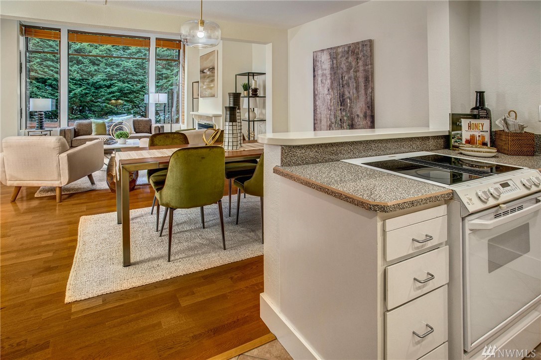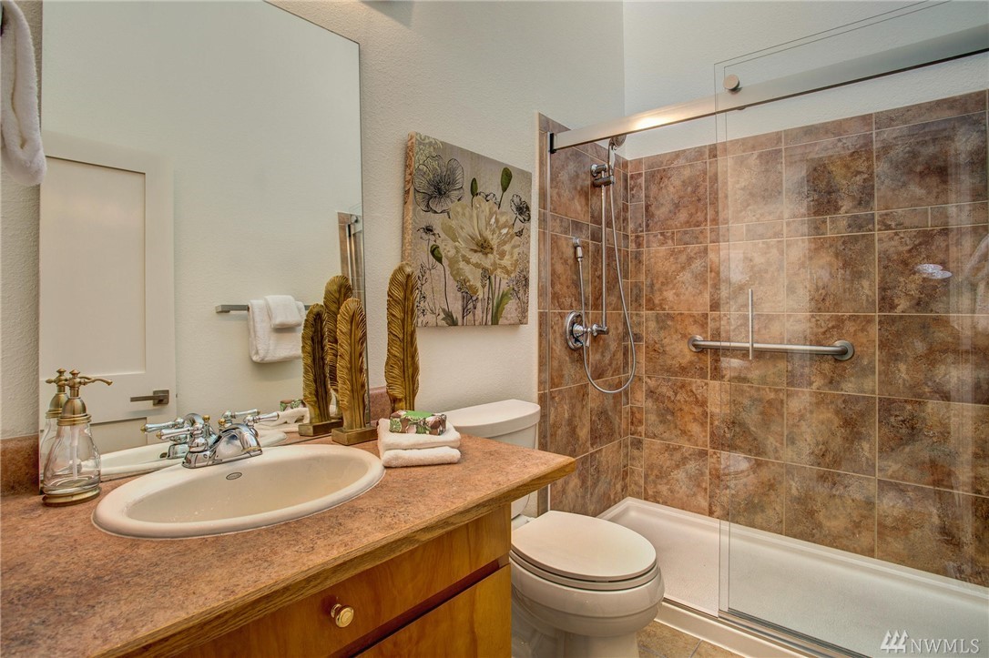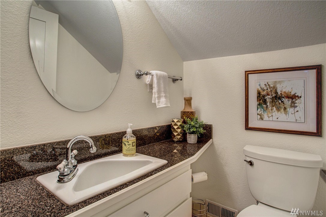 This two-bedroom with two 3/4 and one 1/2 bath townhome lives large at 1,374 asf on two levels. The entry opens to a spacious living room with high ceilings and bright windows. Uninterrupted sight lines from the kitchen to the private deck. Light and bright kitchen with white cabinets, nickel details, and white appliances. The master suite offers a soothing retreat. California Closets provide additional storage. Full-sized washer/dryer. Second bedroom with enclosed deck space. Two car garage.