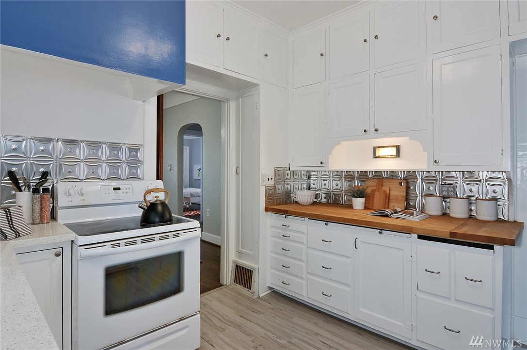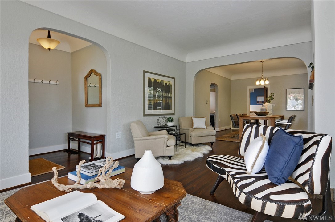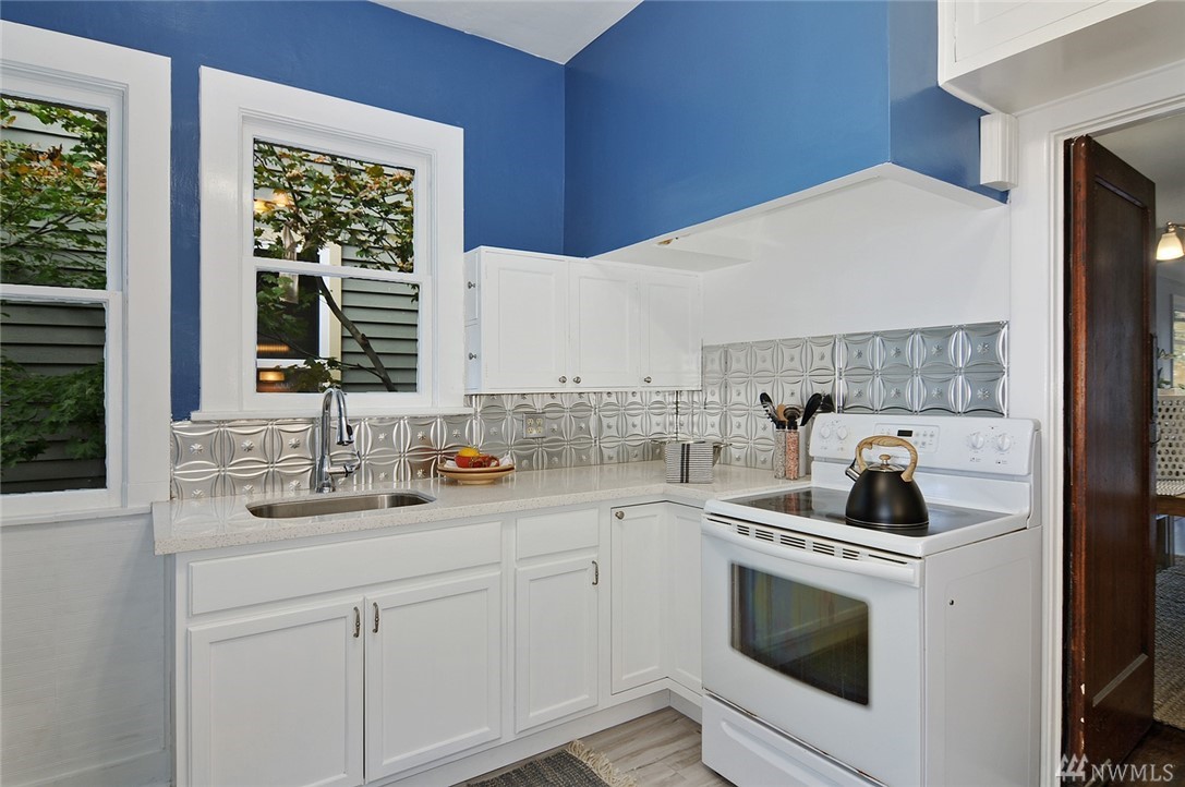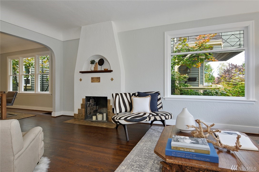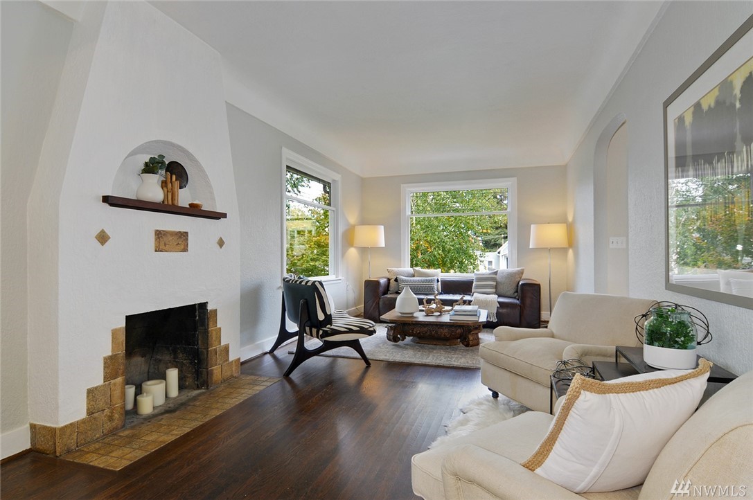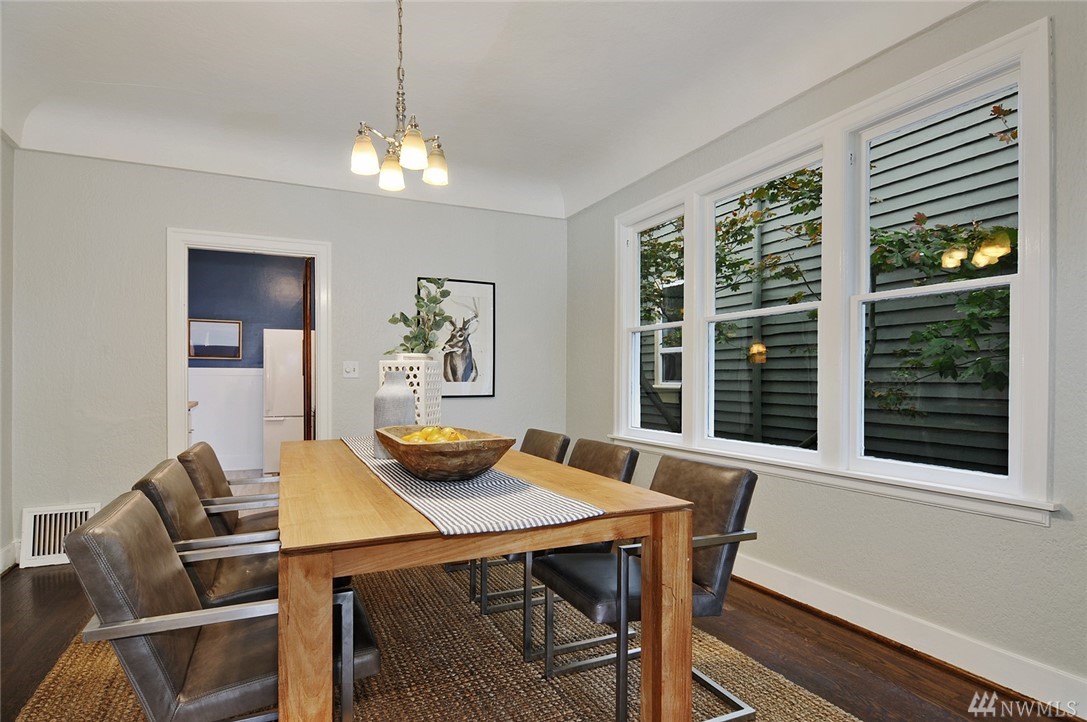 Located in the heart of Green Lake/Tangletown on a quiet street just blocks from lake & all of its many amenities: pool, pickle ball, tennis, cycle, cafes & popular schools. This classic 1910 farmhouse features a frml entry, beautiful hrdwd flrs, fireplace, 9ft ceilings, lg open living & frml dining room. Charming kitchen w/ new quartz countertop opens to south-facing deck & yard w/alley access (potential parking!). Updated bath, 2 bds on main, 2 bds up & a bsmt. Treasured & Excellent location!