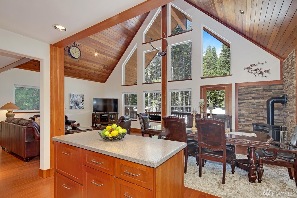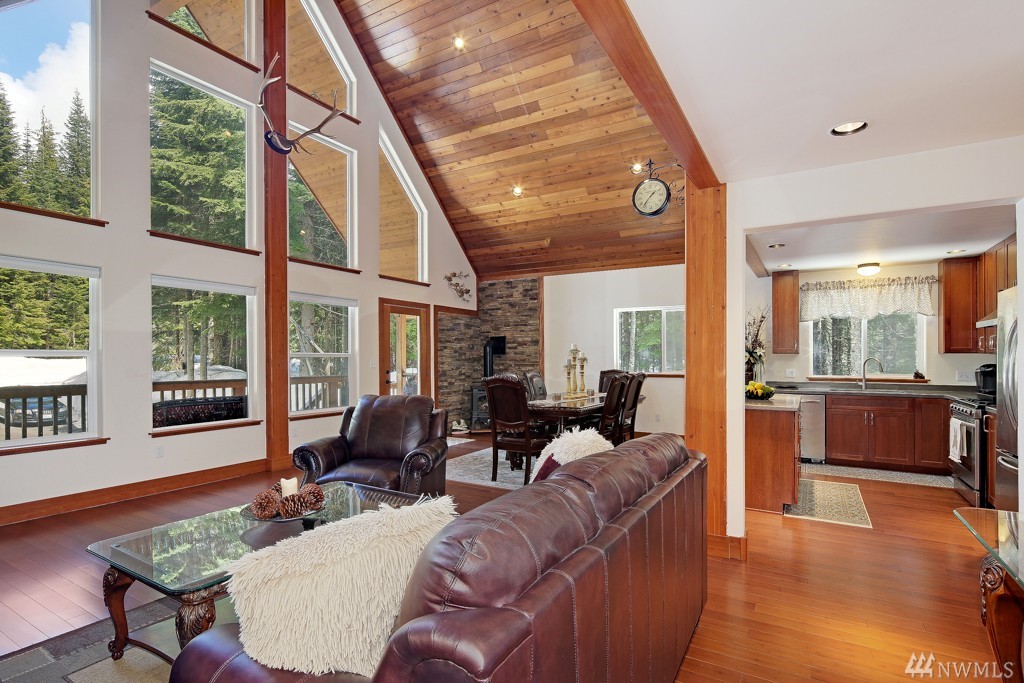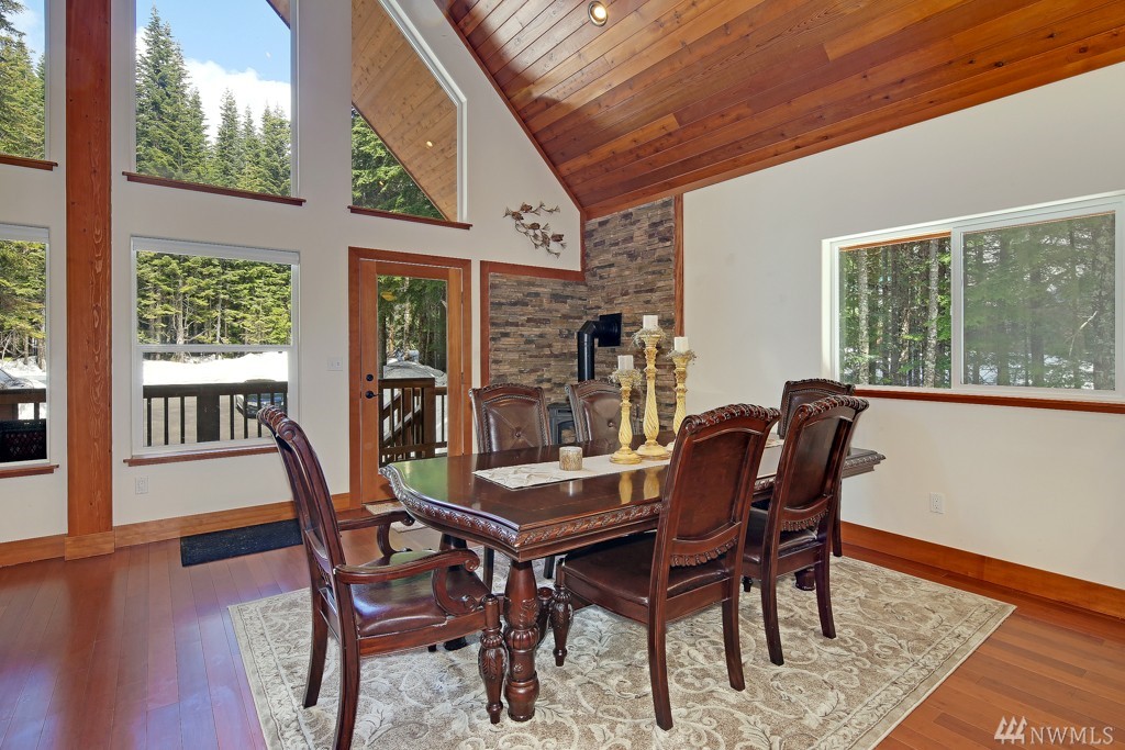 Enjoy Snoqualmie Pass Living in this elegant mountain home! Conveniently located close to I90, trails, lakes, waterfalls, dining, & of course the slopes. With gorgeous wood finishes throughout, soaring ceilings, corian countertops, stainless steel appliances, newly remodeled master bath, large windows, hot tub, radiant heat floors, Rastra Block structural walls & an open floor plan that's great for entertaining. Located on a private road which is plowed in the winter for year round enjoyment.