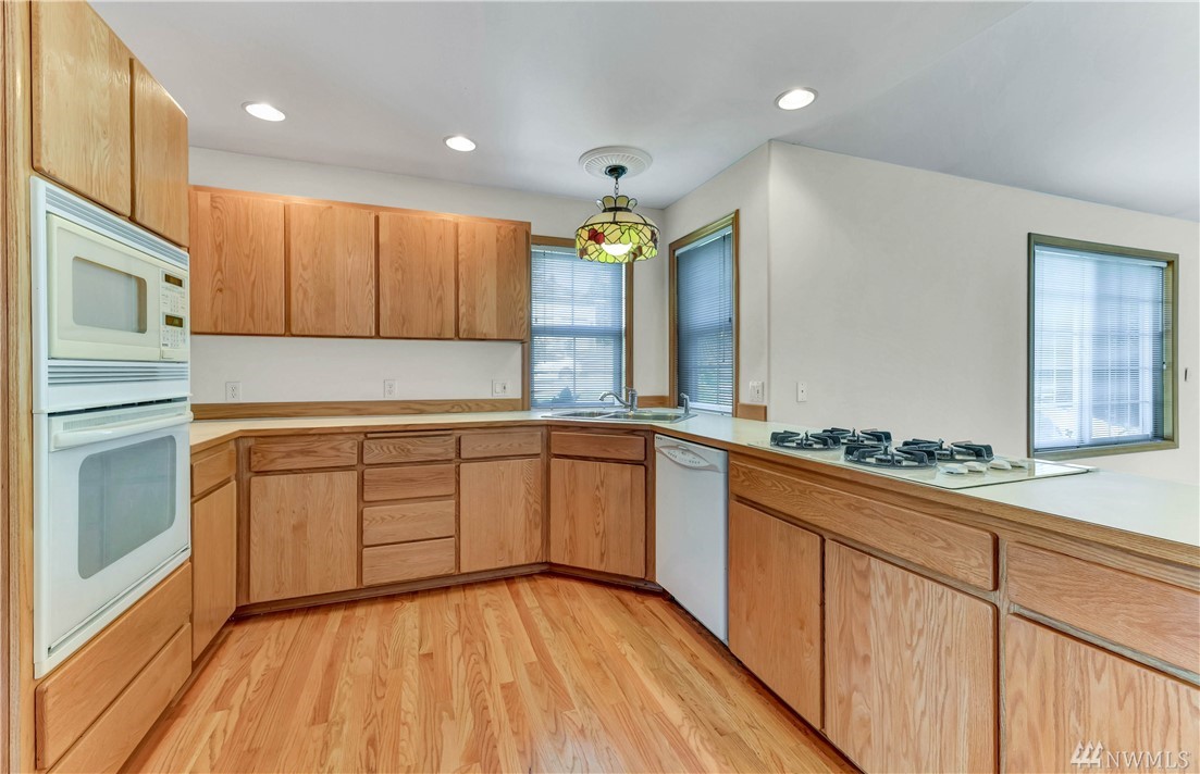 Just 3 blocks from Gleneagle Golf Course club house & restaurant you will find this spacious corner lot cul-de-sac gleaming rambler. Expansive hardwoods throughout entry, hallway, kitchen and master bedroom. New carpeting in other bedrooms, living and family rooms. Updated Architectural Comp roof, expansive patio off family room, low maintenance yard, gas heat, gas fireplace, jetted tub in 5 piece master bath. You will love walking or golf carting around this great golf course community!